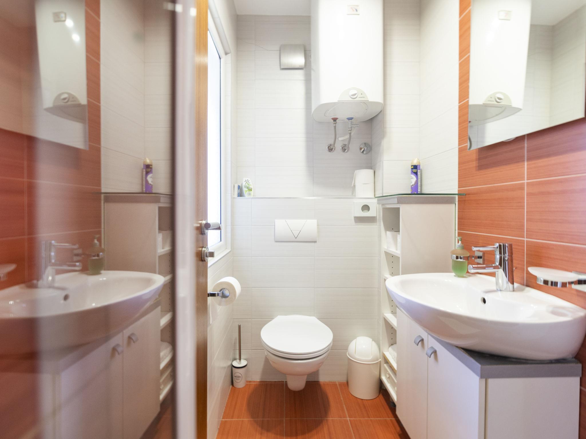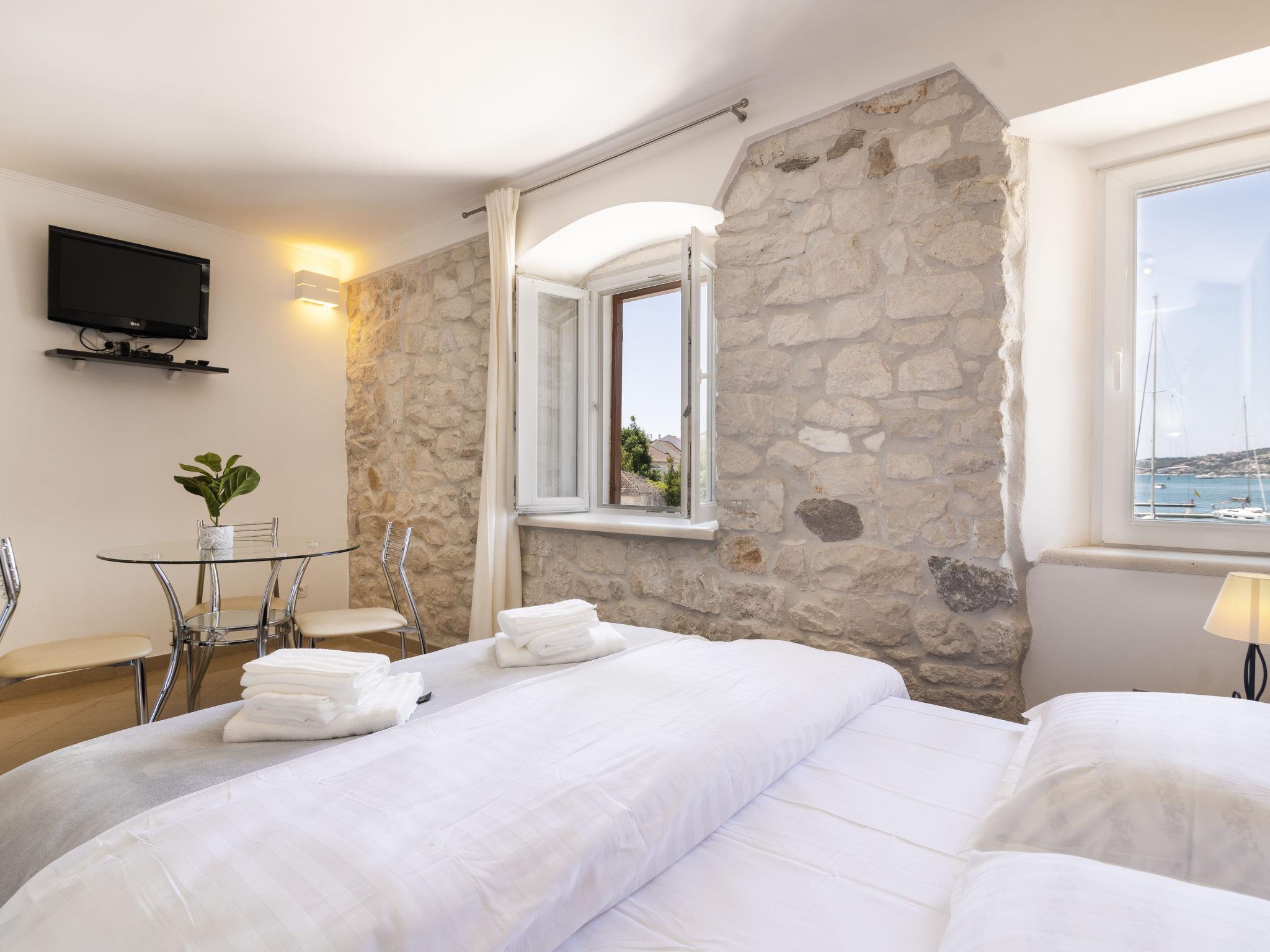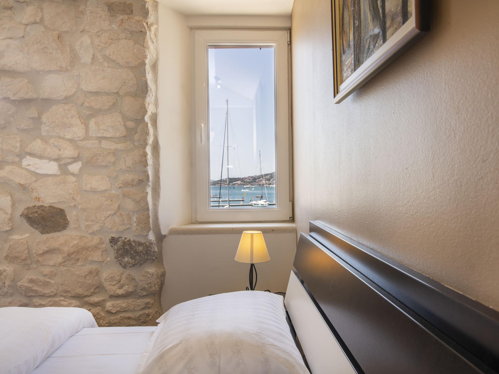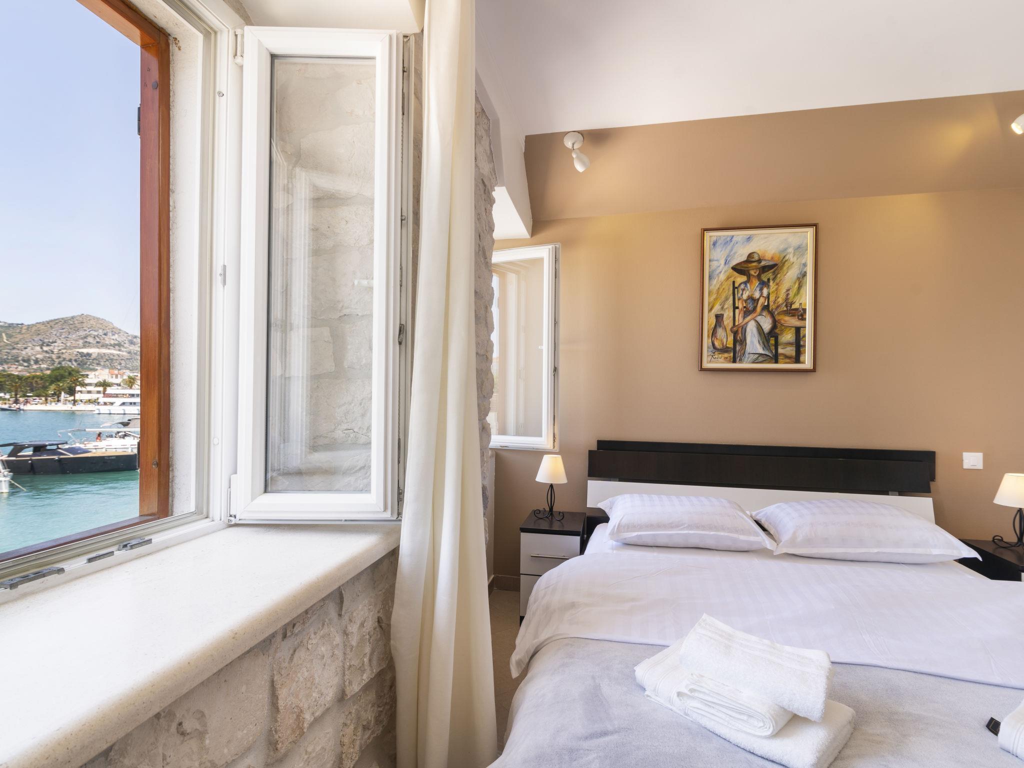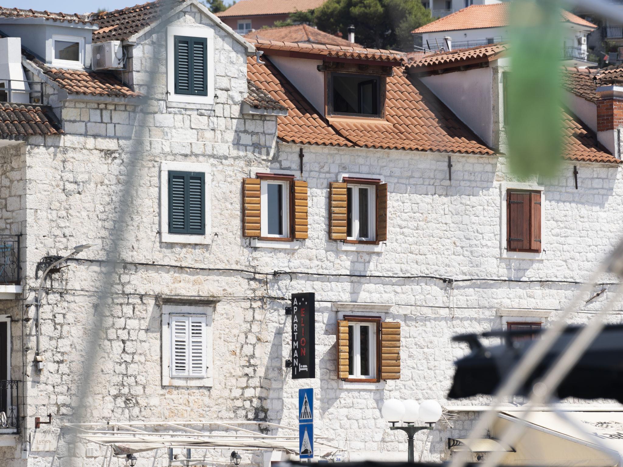 Dreifamilienhaus "Lucica". Im Ortszentrum von Trogir, sonnige Lage, 20 m vom Meer, 350 m vom Strand, an einer Strasse. Im Hause: Internetzugang. Parkplatz in 400 m öffentliche Parkplätze extra. Einkaufsgeschäft 100 m, Supermarkt 500 m, Restaurant 50 m, Bushaltestelle 400 m, Kieselstrand 350 m.