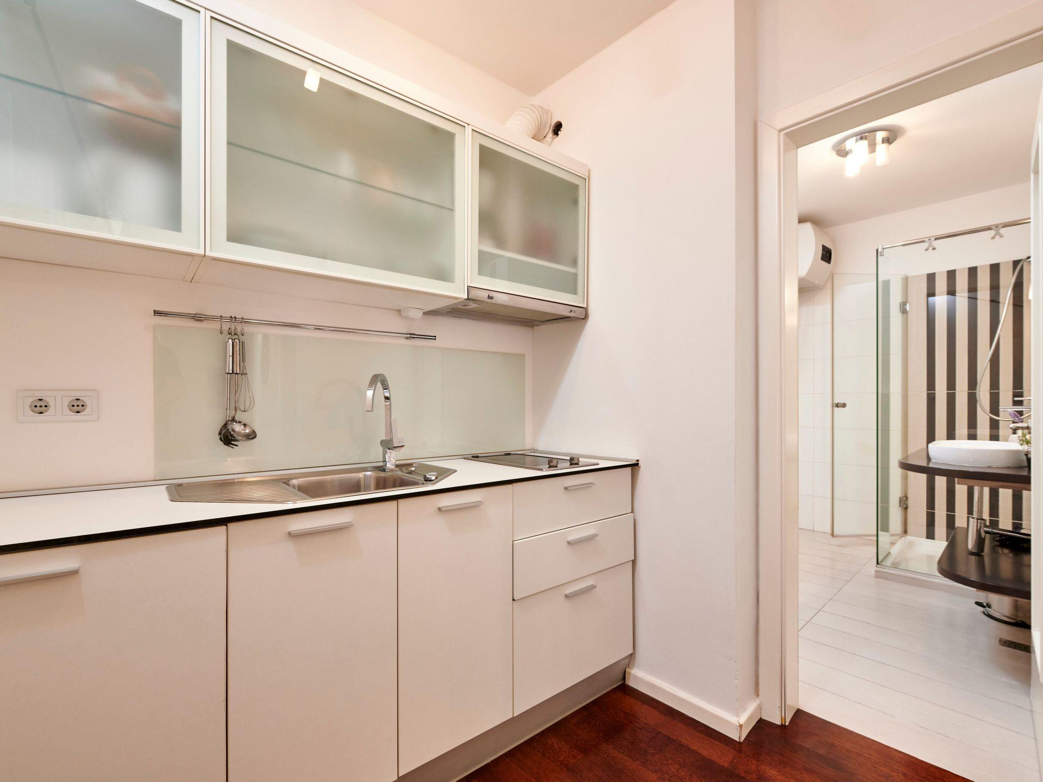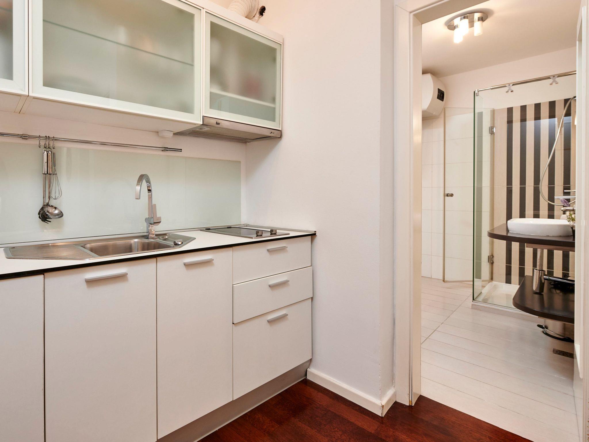 Dies ist eine Einzimmerwohnung mit einem privaten Schlafzimmer. Es ist für 3 Personen geeignet. Es gibt ein Doppelbett im Schlafzimmer (1,60m breit). Das Wohnzimmer und das Esszimmer befinden sich im Komplex. Sofa im Wohnzimmer bietet Bett für dritte Person. Die Küche ist durch einen Flur mit dem Wohnraum verbunden. Das Badezimmer mit Dusche hat eine Fußbodenheizung. Heizung ist überall in dieser 60m Quadrat Wohnung. Kostenloses Wi-Fi, SAT TV, Bettwäsche und Handtücher werden den Gästen zur Verfügung gestellt.