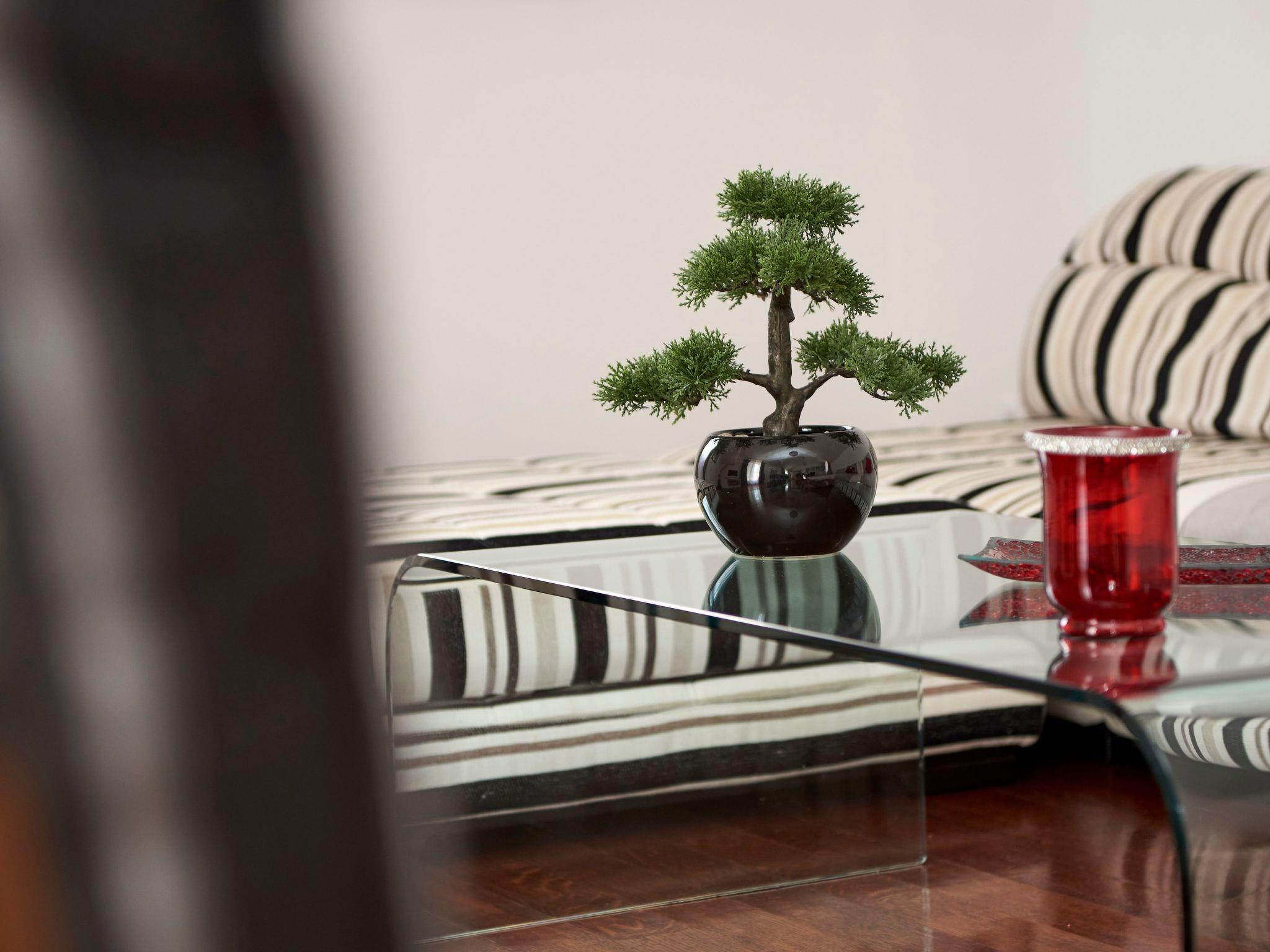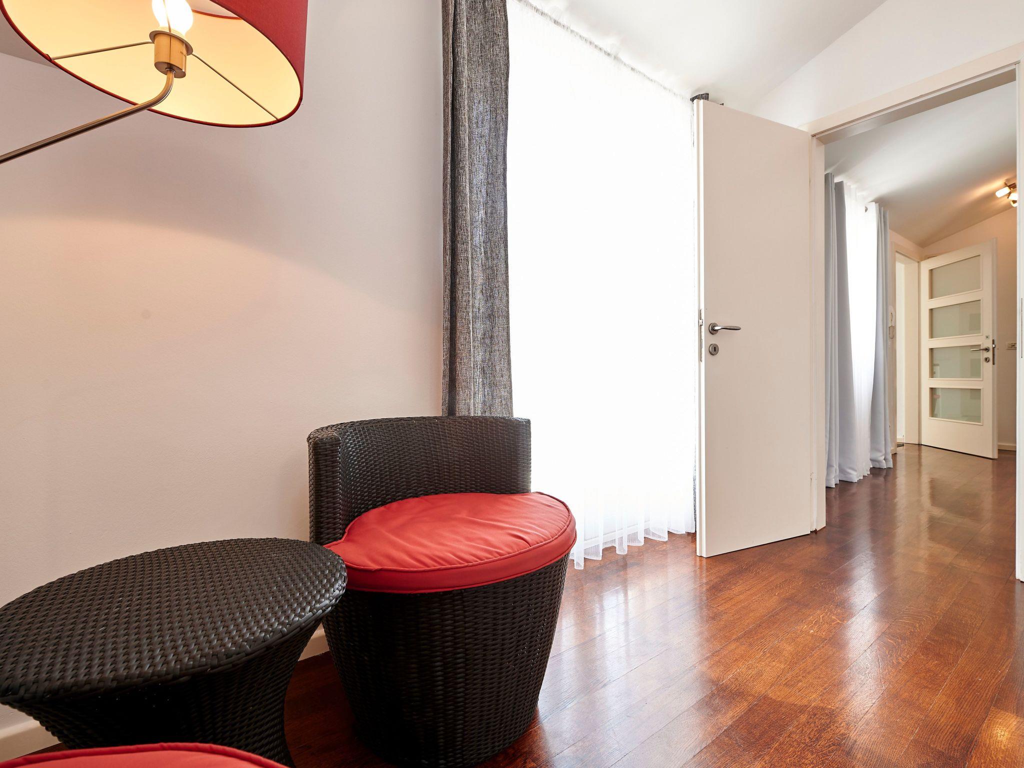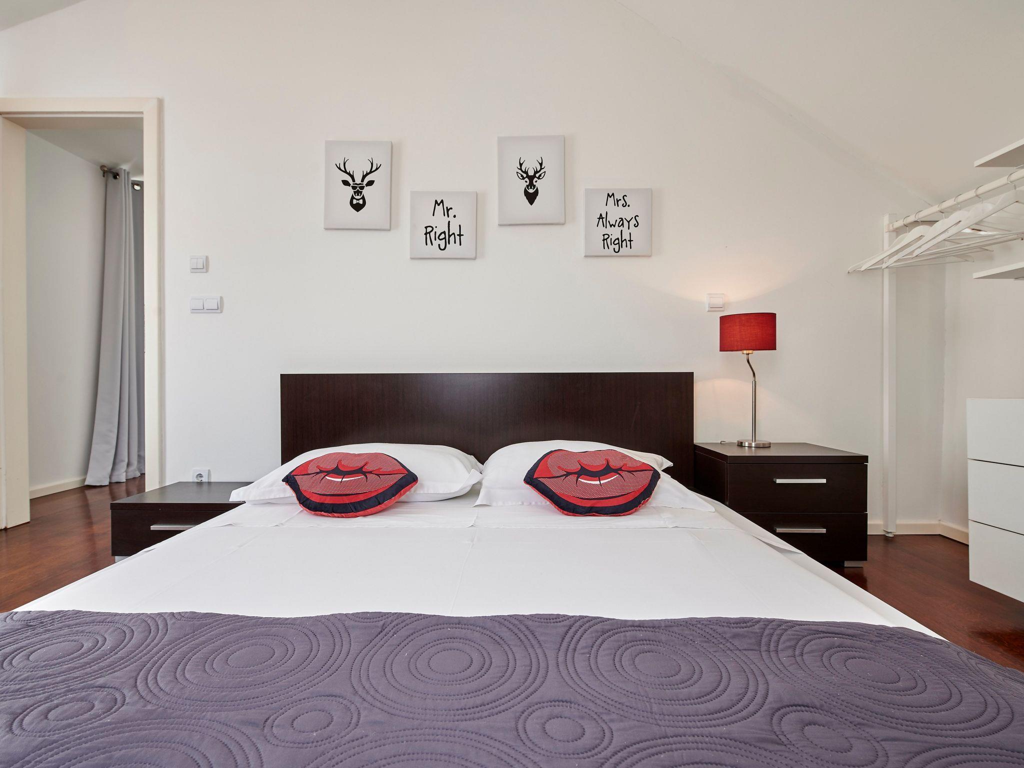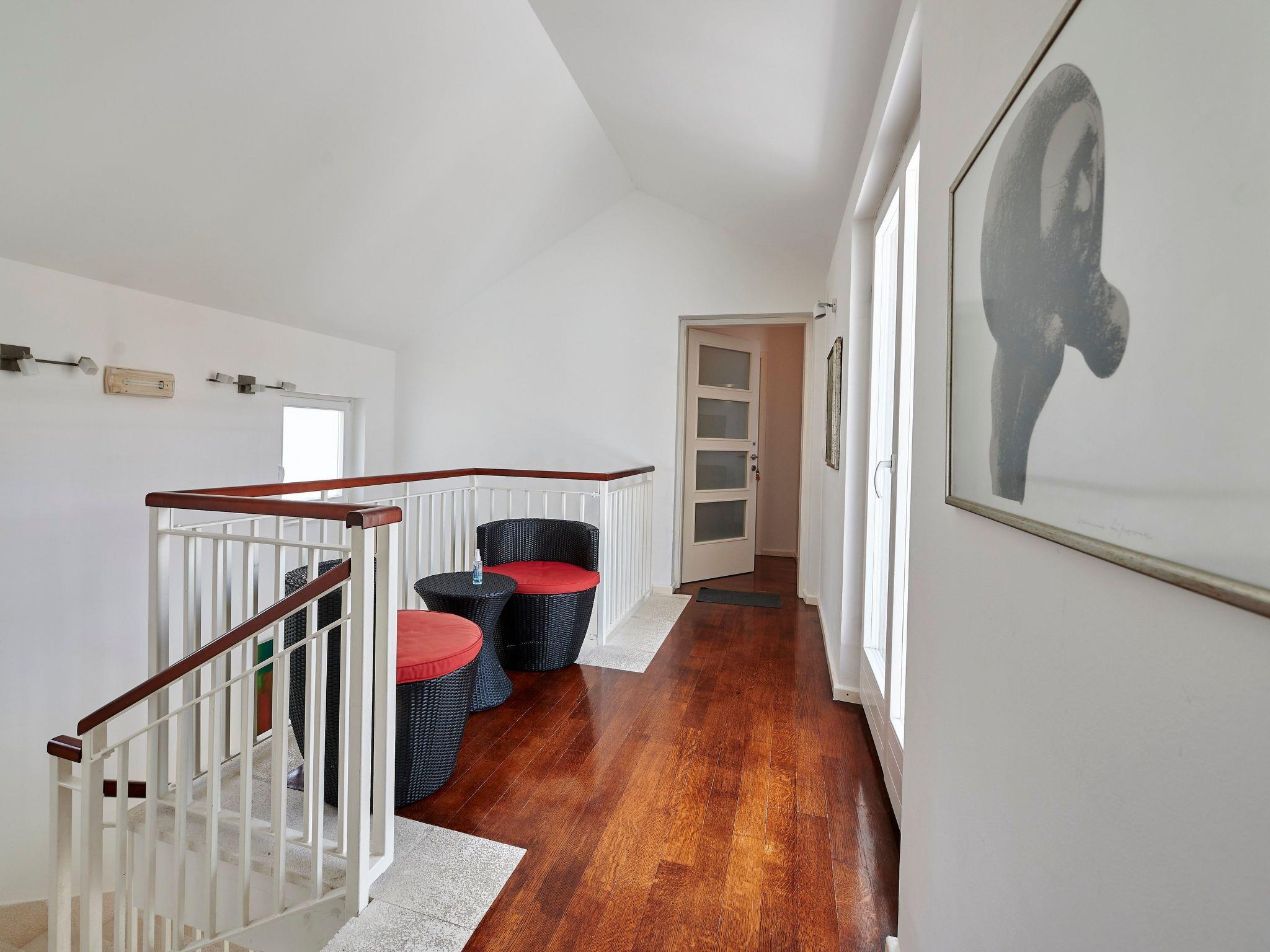 Das Penthouse besteht aus drei Doppelschlafzimmern mit einem Badezimmer. Dieser Schlafbereich ist durch einen privaten Flur mit einer Sitzecke, mit einem geräumigen Wohnzimmer mit gewölbter Decke verbunden. Zusätzlich zu einer gut ausgestatteten Küche gibt es ein zweites luxuriöses Badezimmer und einen Balkon mit Blick auf den Hafen von Trogir und die alten Kirchtürme und Dächer.