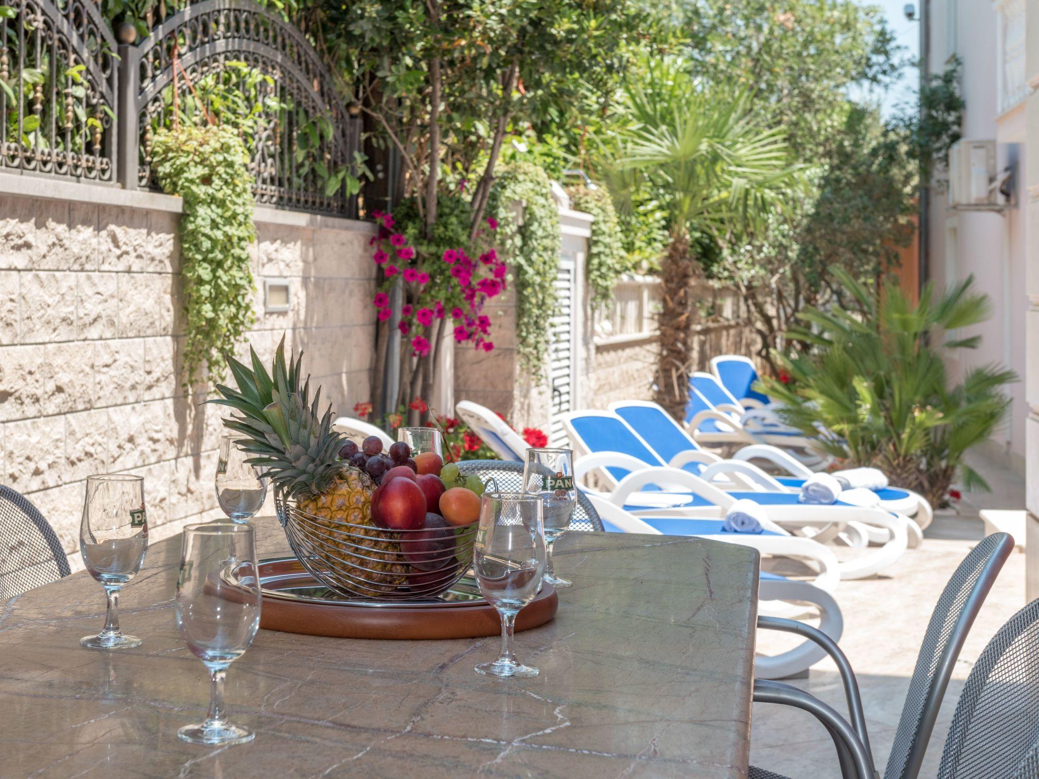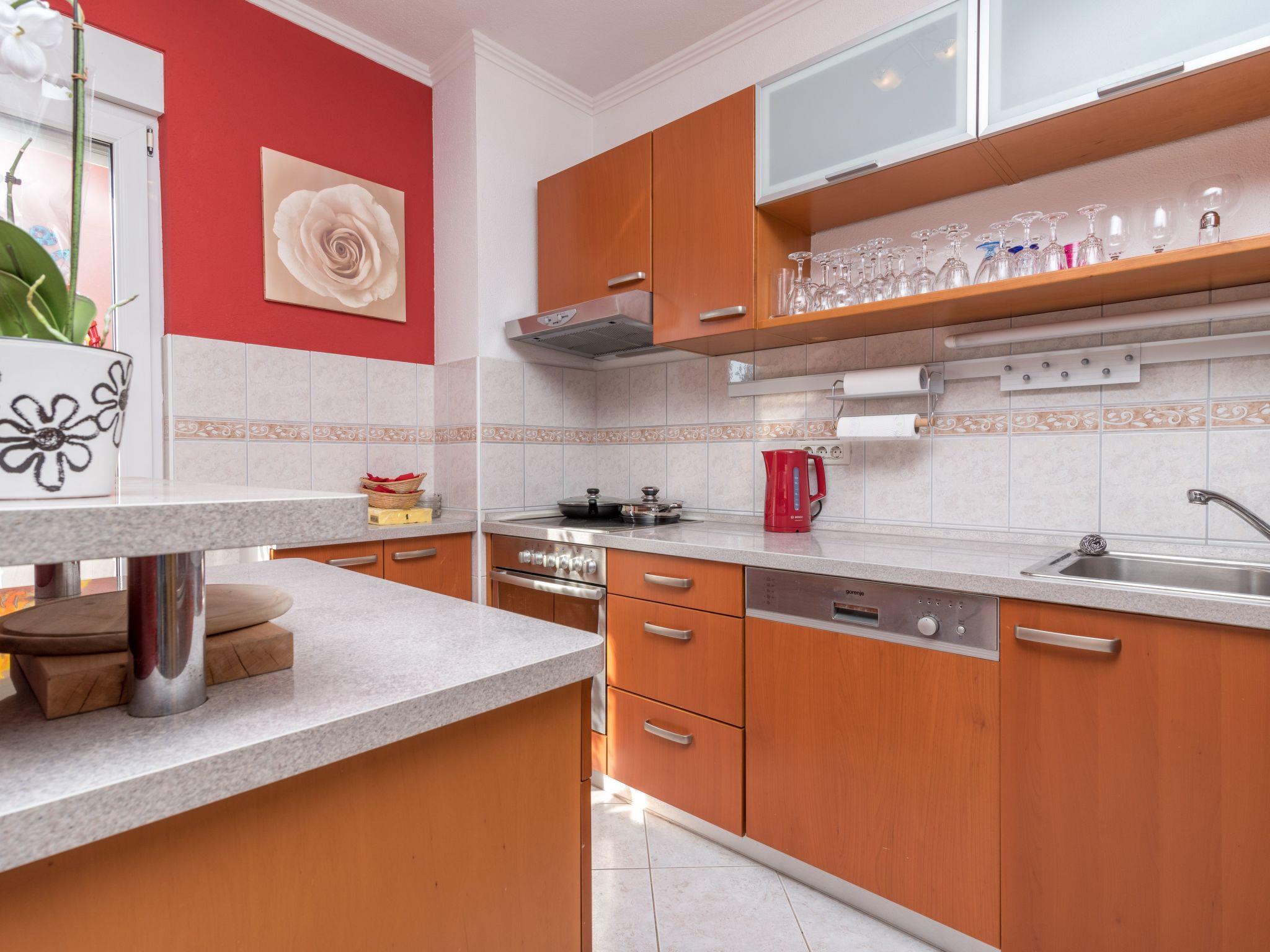 Ausstattung der Küche: Küchenschränke mit eingebauter Spülmaschine, Kühlschrank, Elektroofen und Glaskeramikherd, Esstisch für 8 Personen, Geschirr, Gläser, Kochutensilien, Mikrowelle, Mixer, Toaster, Nespressomaschine - voll funktionsfähig Freizeiteinrichtungen: TV mit Heimkinosystem, kostenloser drahtloser Internetanschluss, Sofa, Klimaanlage in jedem Zimmer und Terrasse mit schöner Aussicht, Tisch für 8 Personen. Badezimmer: Badezimmer mit Dusche, Waschmaschine, Waschbecken mit Spiegel, Badetücher, Bad- und Reinigungsutensilien, Erste-Hilfe-Kasten.