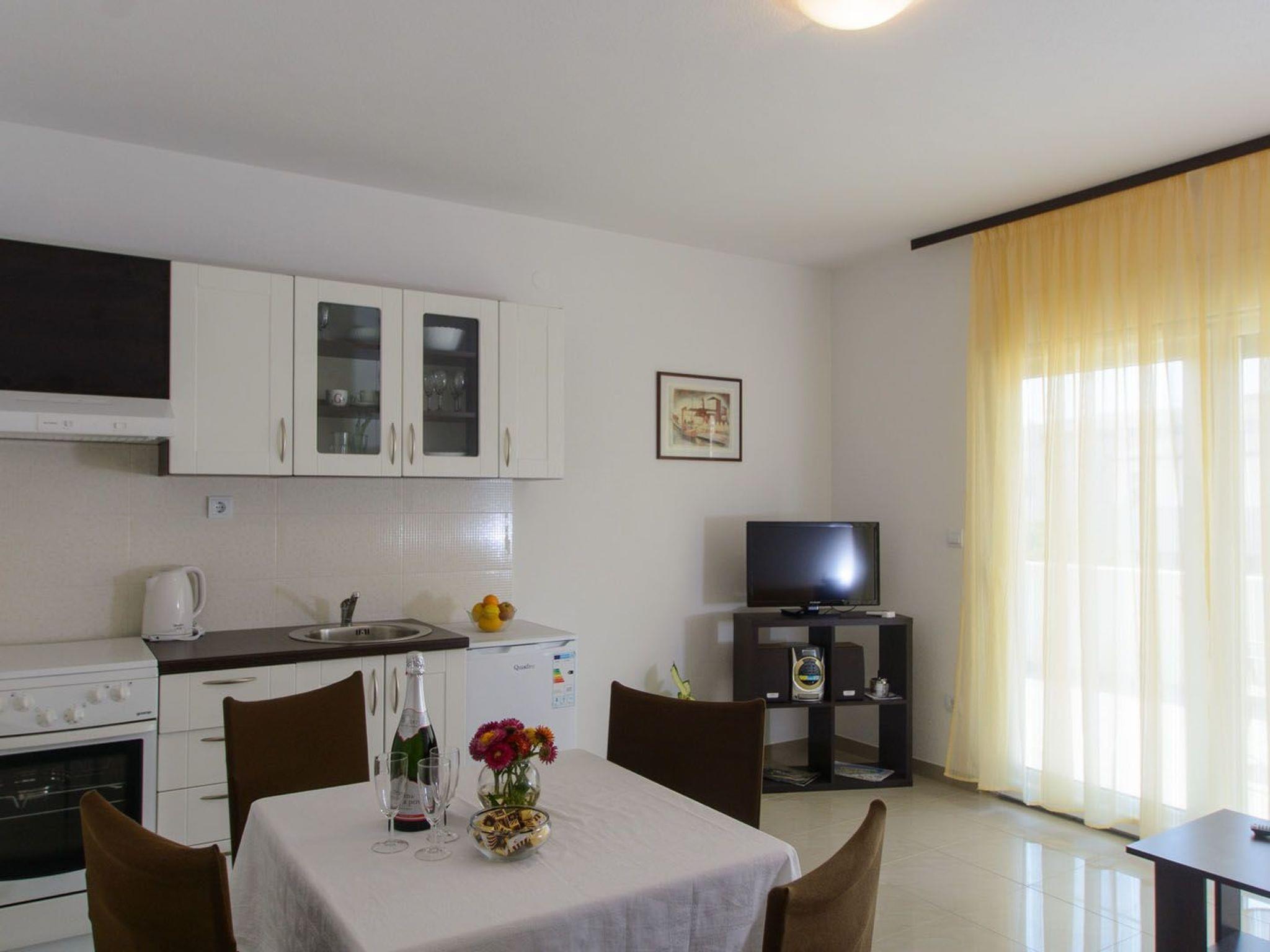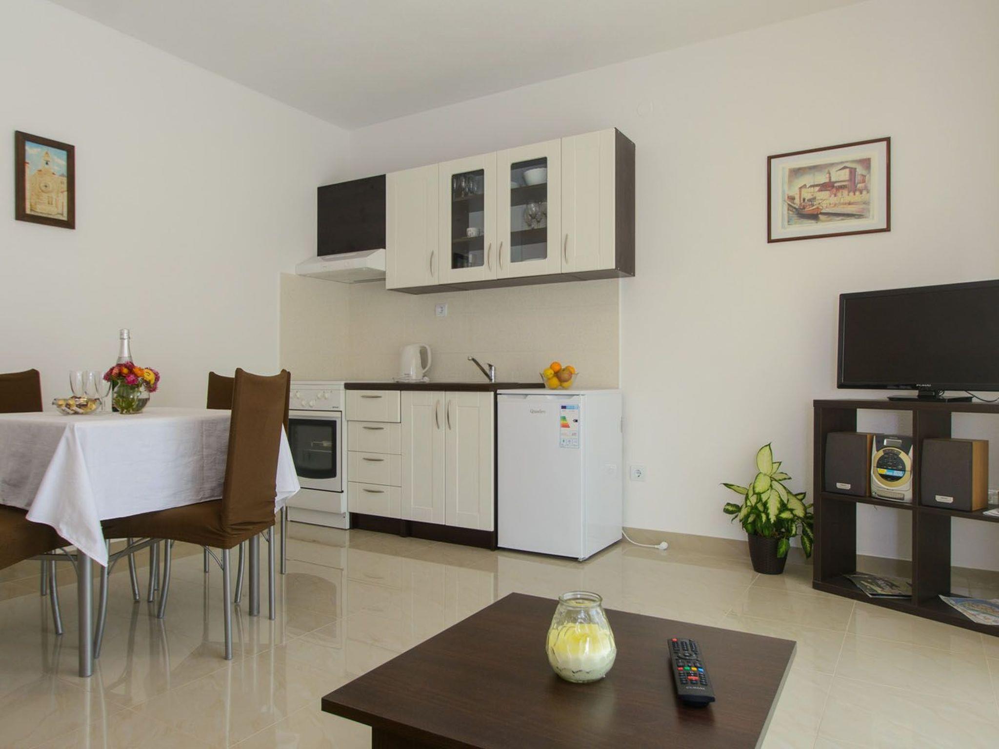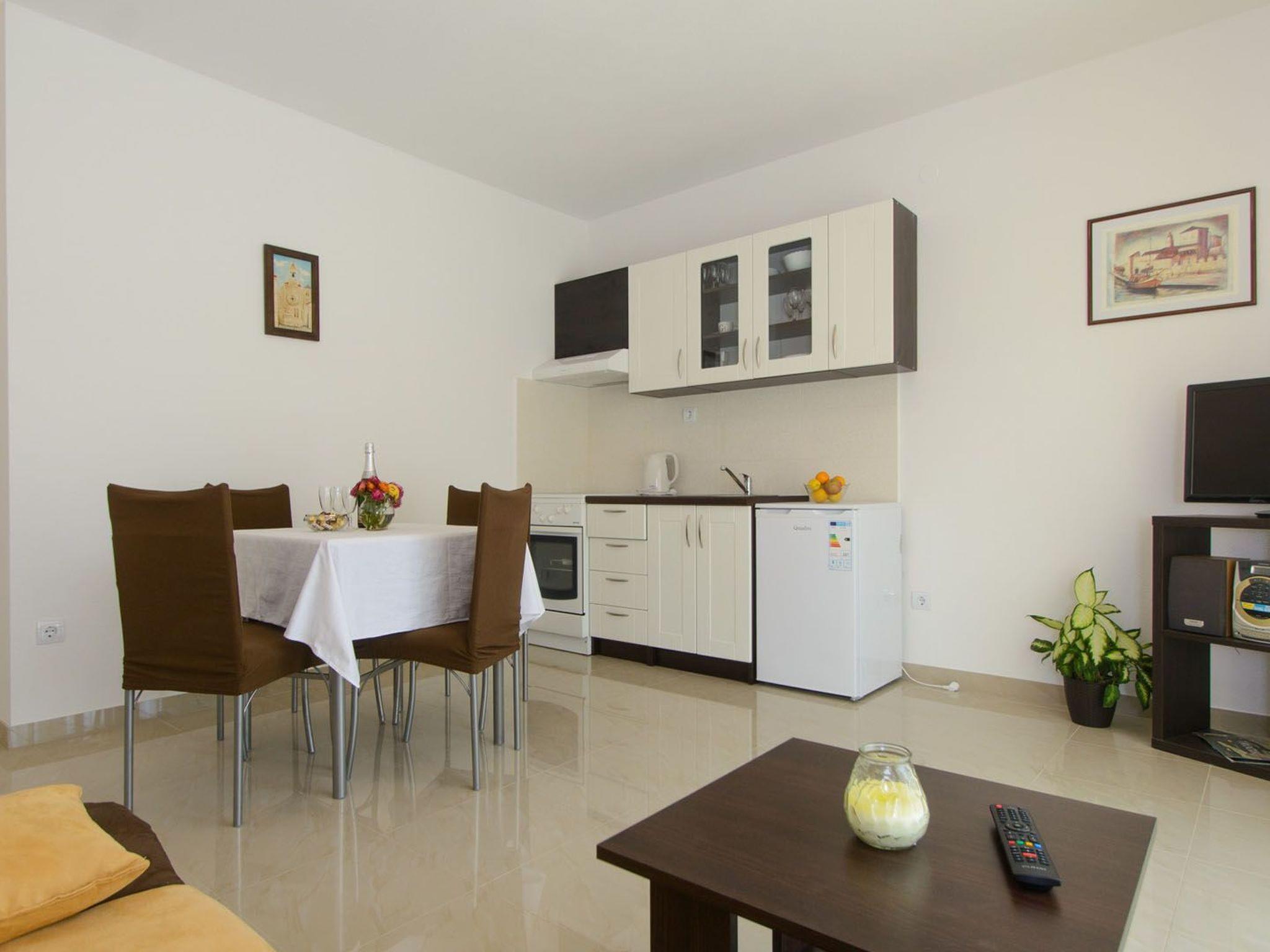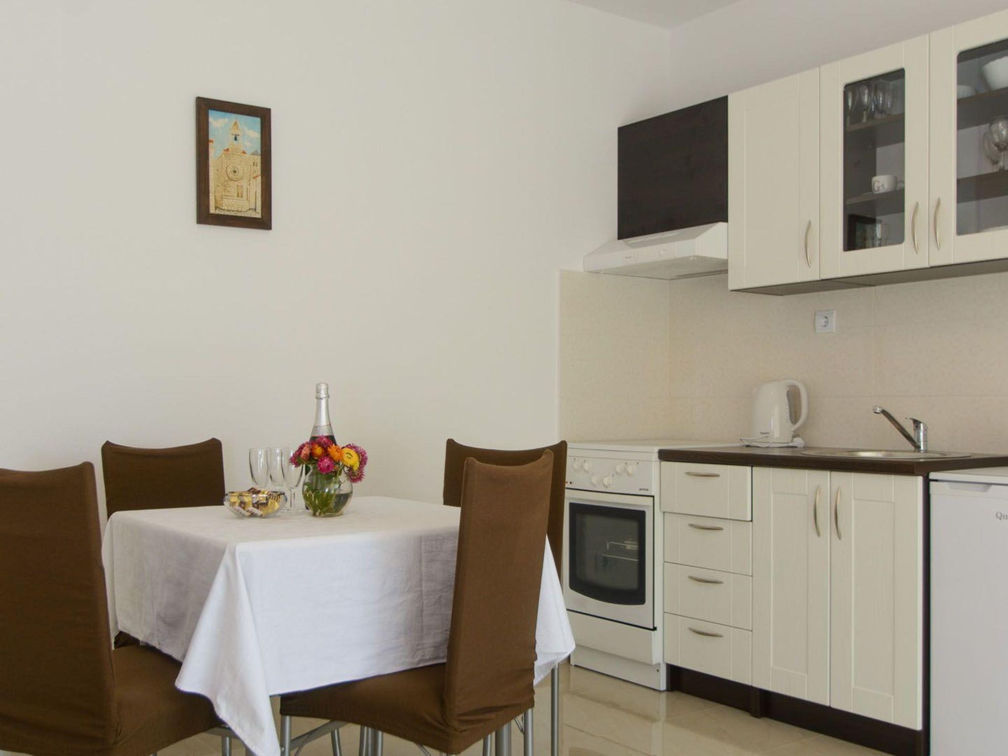 Das Apartment Sunrise ist 40 m2 groß und befindet sich im Erdgeschoss eines Familienhauses. Die Wohnung besteht aus einem Schlafzimmer mit Doppelbett, einem Badezimmer mit Dusche, einem modern eingerichteten Wohnzimmer mit Schlafcouch für 2 Personen, einem Essbereich und einer Küche. Das Wohnzimmer hat Zugang zu einem geräumigen Balkon mit Tisch und Stühlen im Freien. Das Apartment Sunrise kann bis zu 4 Personen (2+2) beherbergen. Das Apartment Sunrise ist mit Klimaanlage, Wi-Fi, SAT-TV, Bügeleisen und Bügelbrett, Herd, Backofen, Dunstabzugshaube, Kühlschrank mit Gefrierfach, Wasserkocher, Kaffeemaschine, Waschmaschine und Haartrockner ausgestattet. Babybett und Hochstuhl sind auf Anfrage erhältlich. Auf dem Grundstück befindet sich 1 kostenloser Parkplatz.
