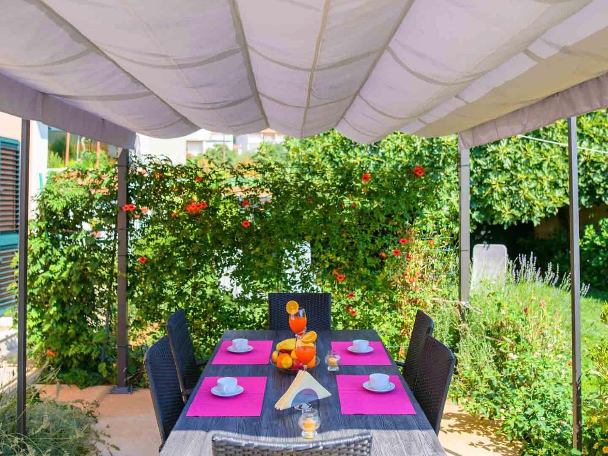 Ein üppiger mediterraner Garten mit Gartenmöbeln bietet den Gästen die nötige Privatsphäre und Ruhe für einen ruhigen und erholsamen Urlaub mit der Familie oder Freunden. Diejenigen, die gerne im Freien kochen, können den Außengrill mit überdachtem Tisch und Stühlen nutzen, der perfekt ist, um im Freien zu essen und heiße Sommerabende zu genießen.