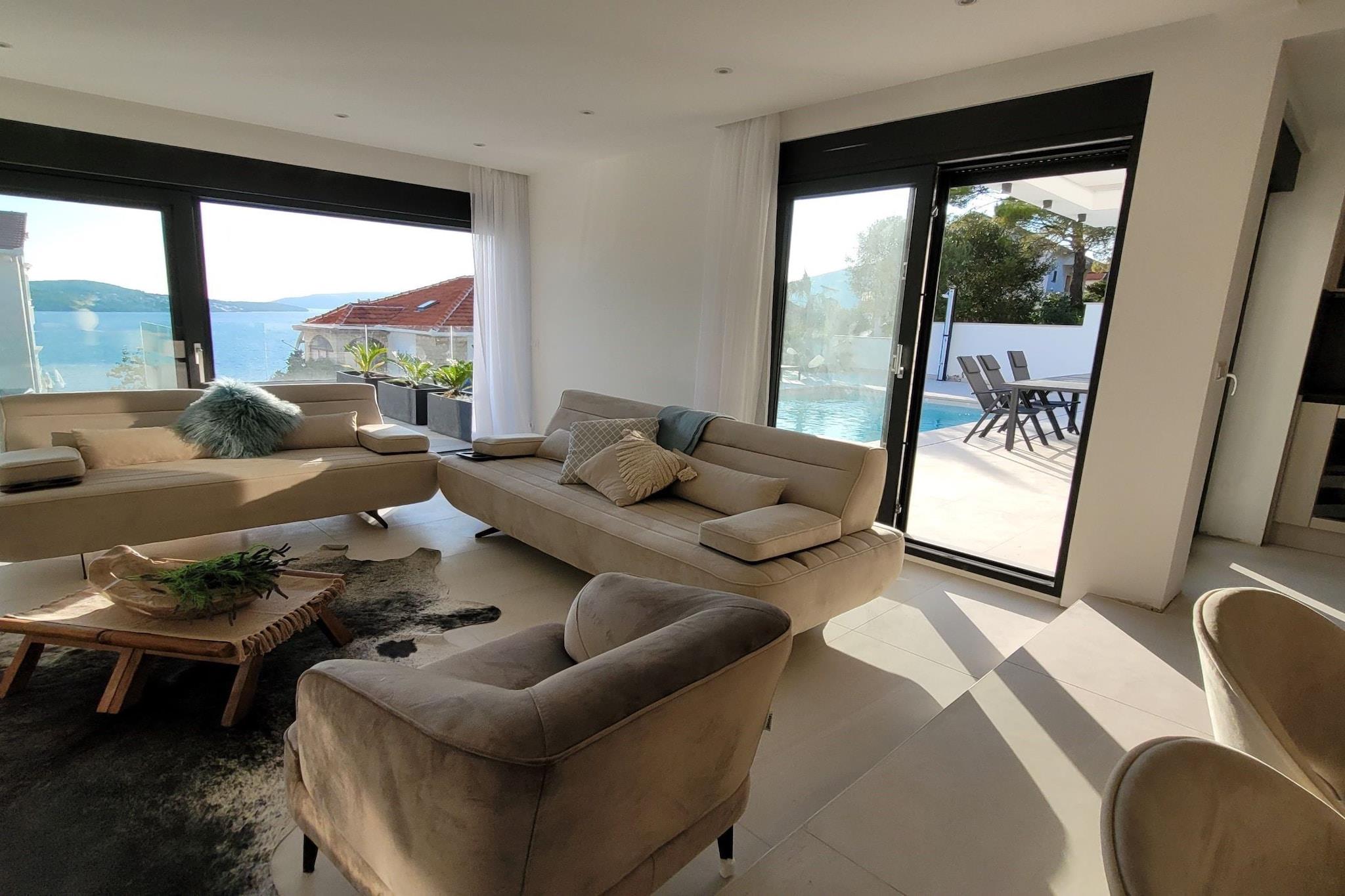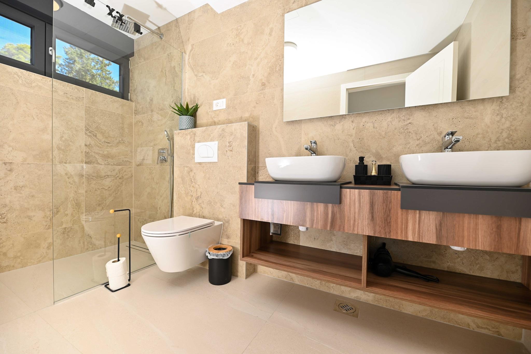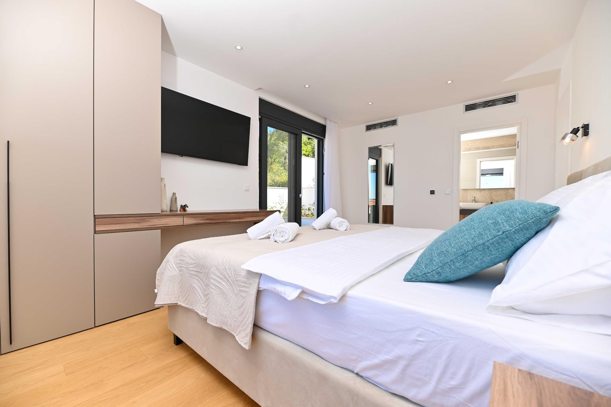 Villa Oasis in Trogir, Split-Dalmatia County, Croatia, is a luxurious villa offering modern amenities such as free Wi-Fi, air conditioning, a fully equipped kitchen, and a private pool. It features stylish interiors, spacious living areas, and outdoor terraces with beautiful views. Located near the historic town of Trogir, the villa is ideal for families, couples, and groups seeking a serene and comfortable retreat while exploring the Adriatic coast and its cultural landmarks. Note: Private parking is available, reservation is not required. Wi-Fi is available throughout the property. Pets are not allowed. This five-bedroom villa can accommodate up to ten guests. It features an internet-enabled/flat-screen TV and is combined with a living room seating area, sofa, and kitchen. The private bathroom is equipped with a shower and toilet. Thanks to its excellent location, everything you'll need for your vacation is just a short walk away from the property. Grocery stores, cafes, restaurants—everything is within a 200 m radius. The airport is 5 km away from the property.