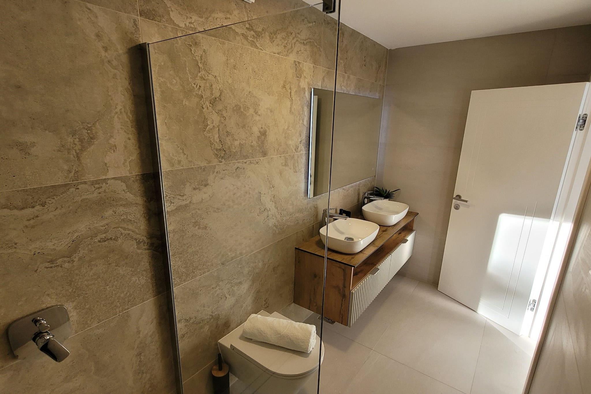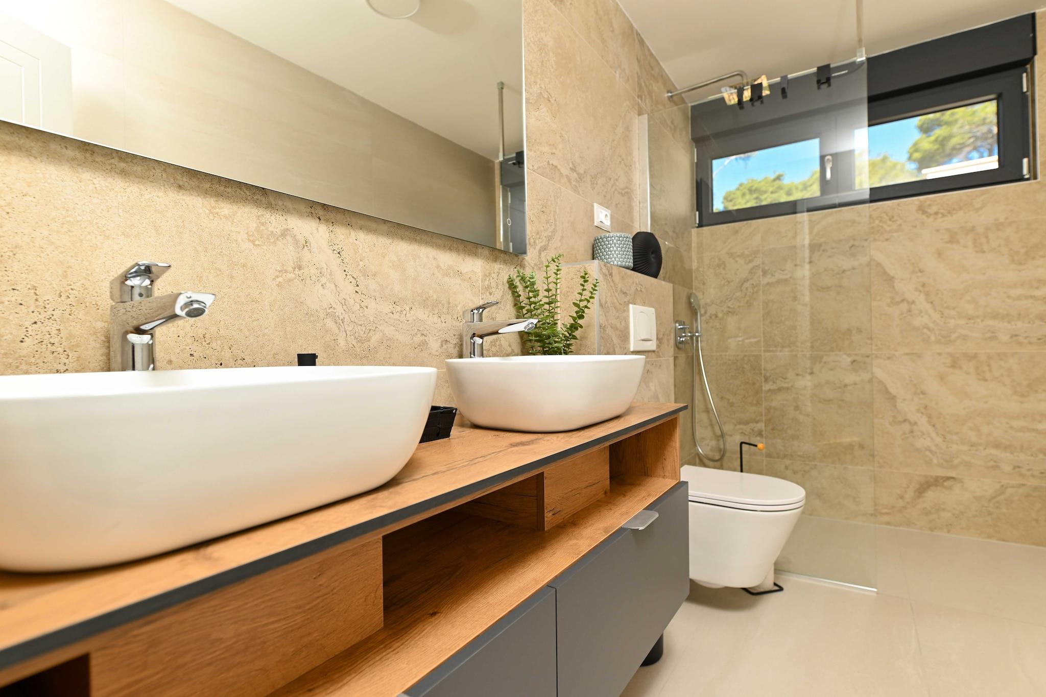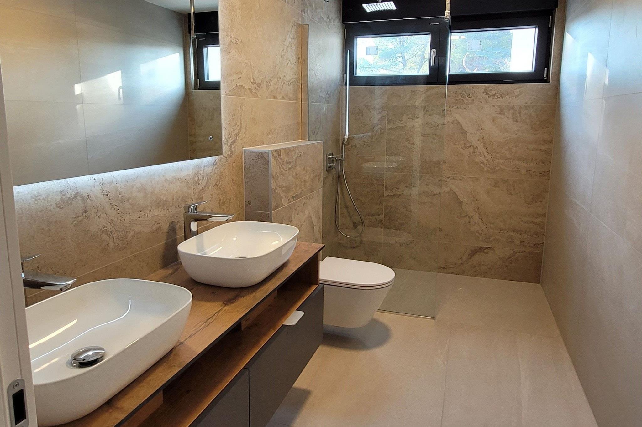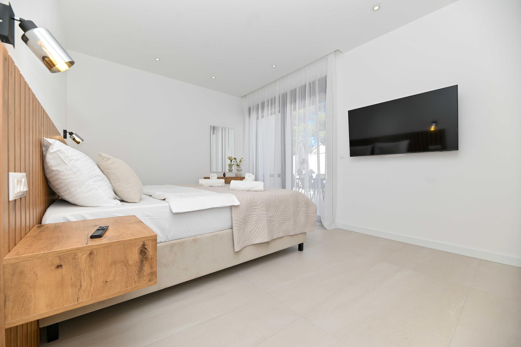 Villa Oasis in Trogir, Split-Dalmatia County, Croatia, is a luxurious villa offering modern amenities such as free Wi-Fi, air conditioning, a fully equipped kitchen, and a private pool. It features stylish interiors, spacious living areas, and outdoor terraces with beautiful views. Located near the historic town of Trogir, the villa is ideal for families, couples, and groups seeking a serene and comfortable retreat while exploring the Adriatic coast and its cultural landmarks. Note: Private parking is available, reservation is not required. Wi-Fi is available throughout the property. Pets are not allowed. This five-bedroom villa can accommodate up to ten guests. It features an internet-enabled/flat-screen TV and is combined with a living room seating area, sofa, and kitchen. The private bathroom is equipped with a shower and toilet. Thanks to its excellent location, everything you'll need for your vacation is just a short walk away from the property. Grocery stores, cafes, restaurants—everything is within a 200 m radius. The airport is 5 km away from the property.