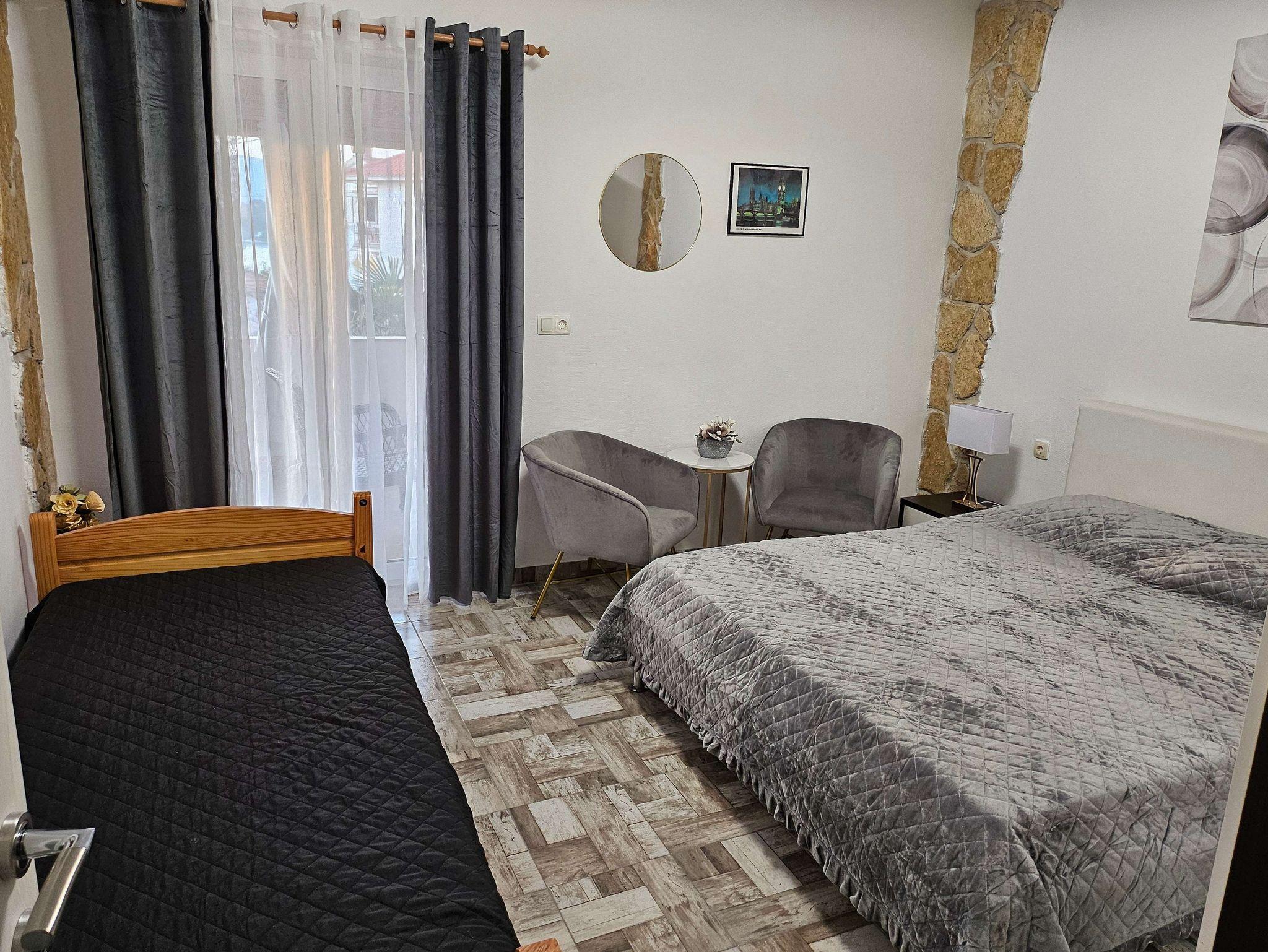 Ferienwohnung bietet Platz für 3 Gäste. Die Betten sind in Schlafzimmern, die es 1 gibt, und in Wohnzimmer, innerhalb einer Gesamtfläche von 39m2, angeordnet. Die Gäste haben eine eigene Terrasse zur Verfügung, auf der sie in warmen Sommernächten genießen können. Das Apartment bietet Meerblick. Es ist erlaubt, Speisen auf dem Gemeinschafts-Grill vorzubereiten. In der Unterkunftseinheit besteht die Möglichkeit des Mitbringens von Haustieren, und die Dienstleistung ist im Preis der Unterkunft enthalten. IM PREIS INBEGRIFFEN: Kurtaxe, Endreinigung, Klimatisierung, Parkplatz, Internet, Haustiere, Bügeleisen, Bügelbrett, Föhn. UNVERBINDLICHE ZUSÄTZLICHE KOSTEN: Fahrrad (10,00 € täglich (pro Stück)). Die Verfügbarkeit zusätzlicher Dienstleistungen in Ihrem reservierten Termin und die Preise derselben (falls nicht aufgeführt) müssen im Voraus überprüft werden. Zusätzliche Dienstleistungen die in der Zahlungsaufforderung nicht aufgeführt sind werden direkt beim Vermieter bezahlt, angenommen der Gast nutzt auch diese. Ermäßigung auf den Grundpreis: Gratistag 14=13 (bei einem Aufenthalt von 14 Tagen oder mehr erhalten Sie einen Gratistag für den Aufenthalt bis 31.12.26).