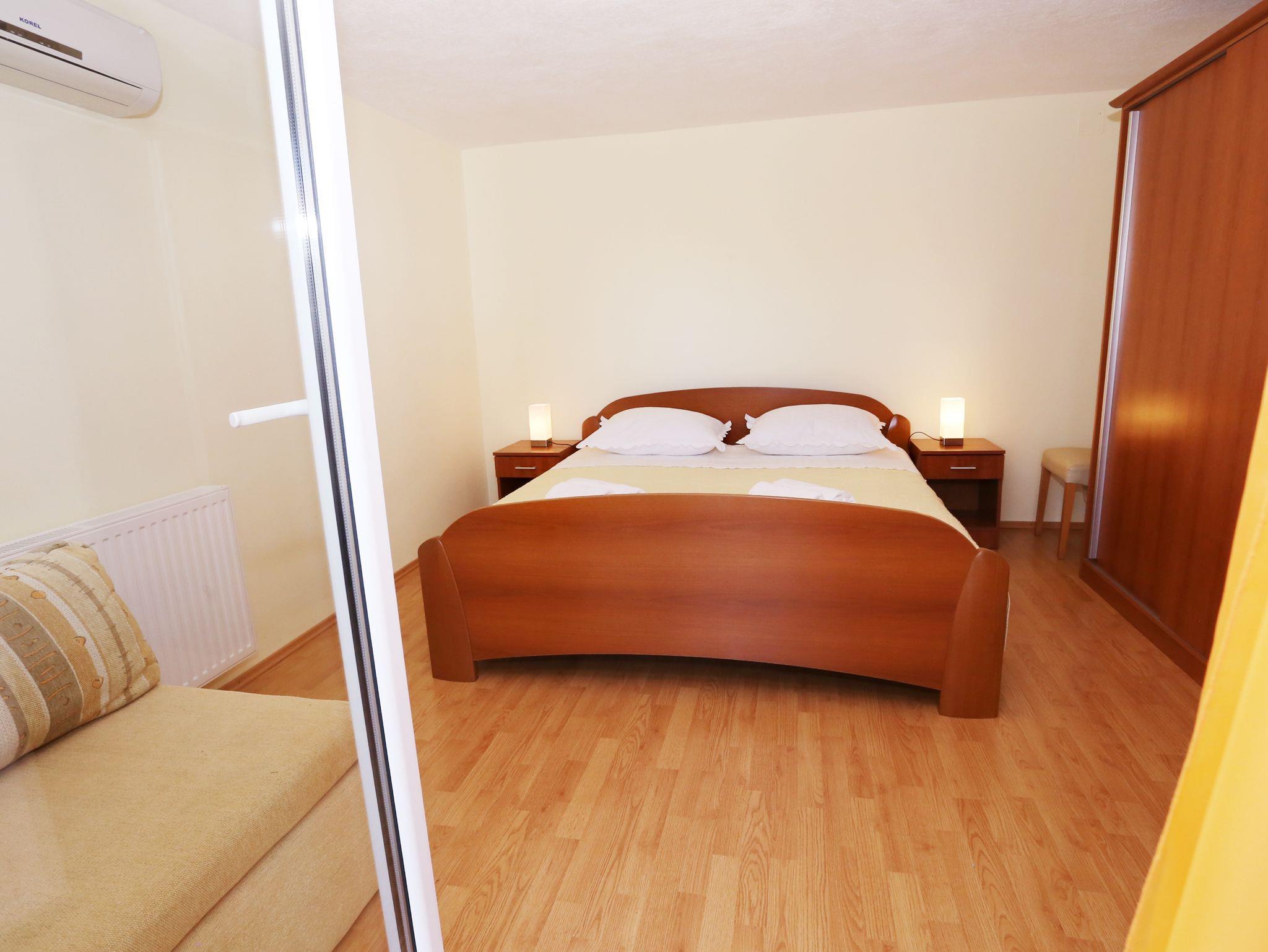 Ferienwohnung bietet Platz für 4 Gäste. Die Betten sind in Schlafzimmern, die es 1 gibt, und in Wohnzimmer, innerhalb einer Gesamtfläche von 41m2, angeordnet. Die Gäste haben eine eigene Terrasse zur Verfügung, auf der sie in warmen Sommernächten genießen können. Das Apartment bietet Meerblick. IM PREIS INBEGRIFFEN: Kurtaxe, Endreinigung, Klimatisierung, Zentralheizung, Parkplatz, Internet, Wäschewaschen, Kinderbett, Bügeleisen, Bügelbrett, Föhn. VERBINDLICHE ZUSÄTZLICHE KOSTEN: Aufzahlung für Kurzaufenthalte (prozentualer Zuschlag pro Nächtigungsanzahl: 30% - 1, 20% - 2, 10% - 3). UNVERBINDLICHE ZUSÄTZLICHE KOSTEN: Zusatzbett (10,00 € pro Nacht). Die Verfügbarkeit zusätzlicher Dienstleistungen in Ihrem reservierten Termin und die Preise derselben (falls nicht aufgeführt) müssen im Voraus überprüft werden. Zusätzliche Dienstleistungen die in der Zahlungsaufforderung nicht aufgeführt sind werden direkt beim Vermieter bezahlt, angenommen der Gast nutzt auch diese.