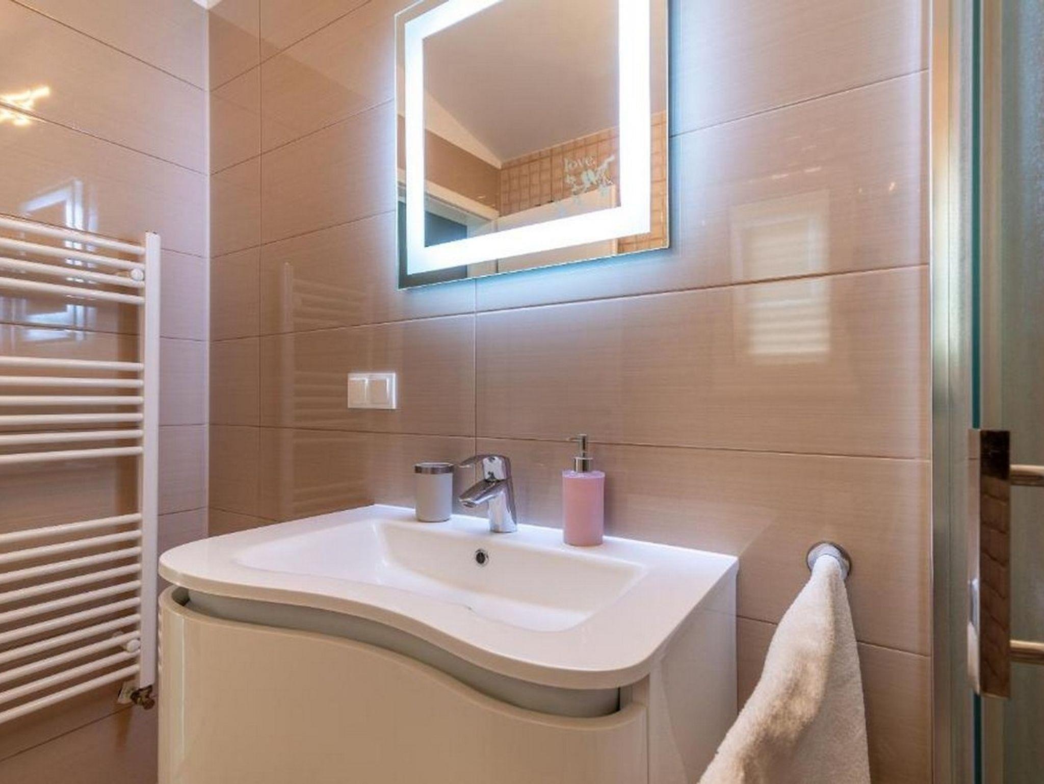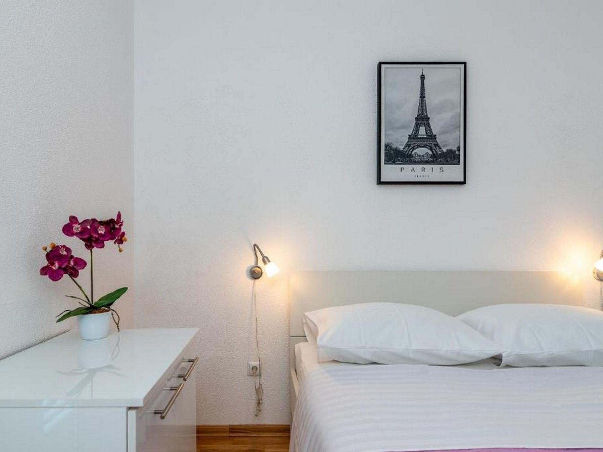 Ferienwohnung bietet Platz für 6 Gäste. Die Betten sind in Schlafzimmern, die es 3 gibt, innerhalb einer Gesamtfläche von 93m2, angeordnet. Die Gäste haben eine eigene Terrasse zur Verfügung, auf der sie in warmen Sommernächten genießen können. Das Apartment bietet Meerblick. Es ist erlaubt, Speisen auf dem Gemeinschafts-Grill vorzubereiten. Während ihres Aufenthalts können Gäste das gemeinsam zur Nutzung stehende Schwimmbad benutzen. IM PREIS INBEGRIFFEN: Kurtaxe, Endreinigung, Klimatisierung, Pool, Parkplatz, Garage, Internet, Wäschewaschen, Bügeleisen, Bügelbrett, Föhn, Liegestühle. Die Verfügbarkeit zusätzlicher Dienstleistungen in Ihrem reservierten Termin und die Preise derselben (falls nicht aufgeführt) müssen im Voraus überprüft werden. Zusätzliche Dienstleistungen die in der Zahlungsaufforderung nicht aufgeführt sind werden direkt beim Vermieter bezahlt, angenommen der Gast nutzt auch diese.