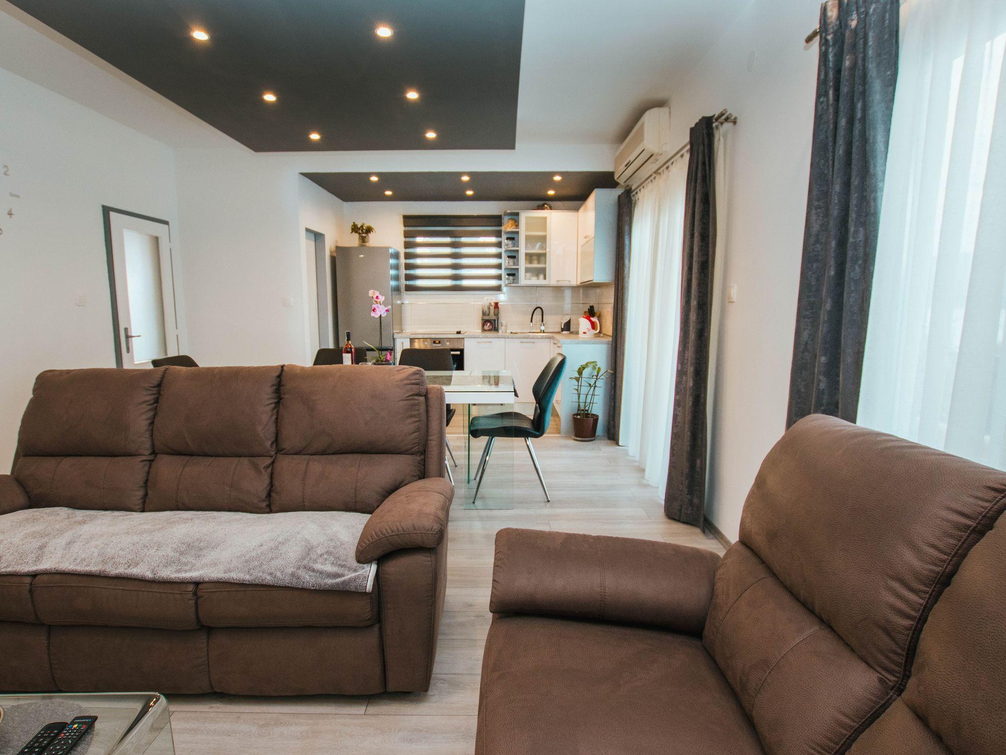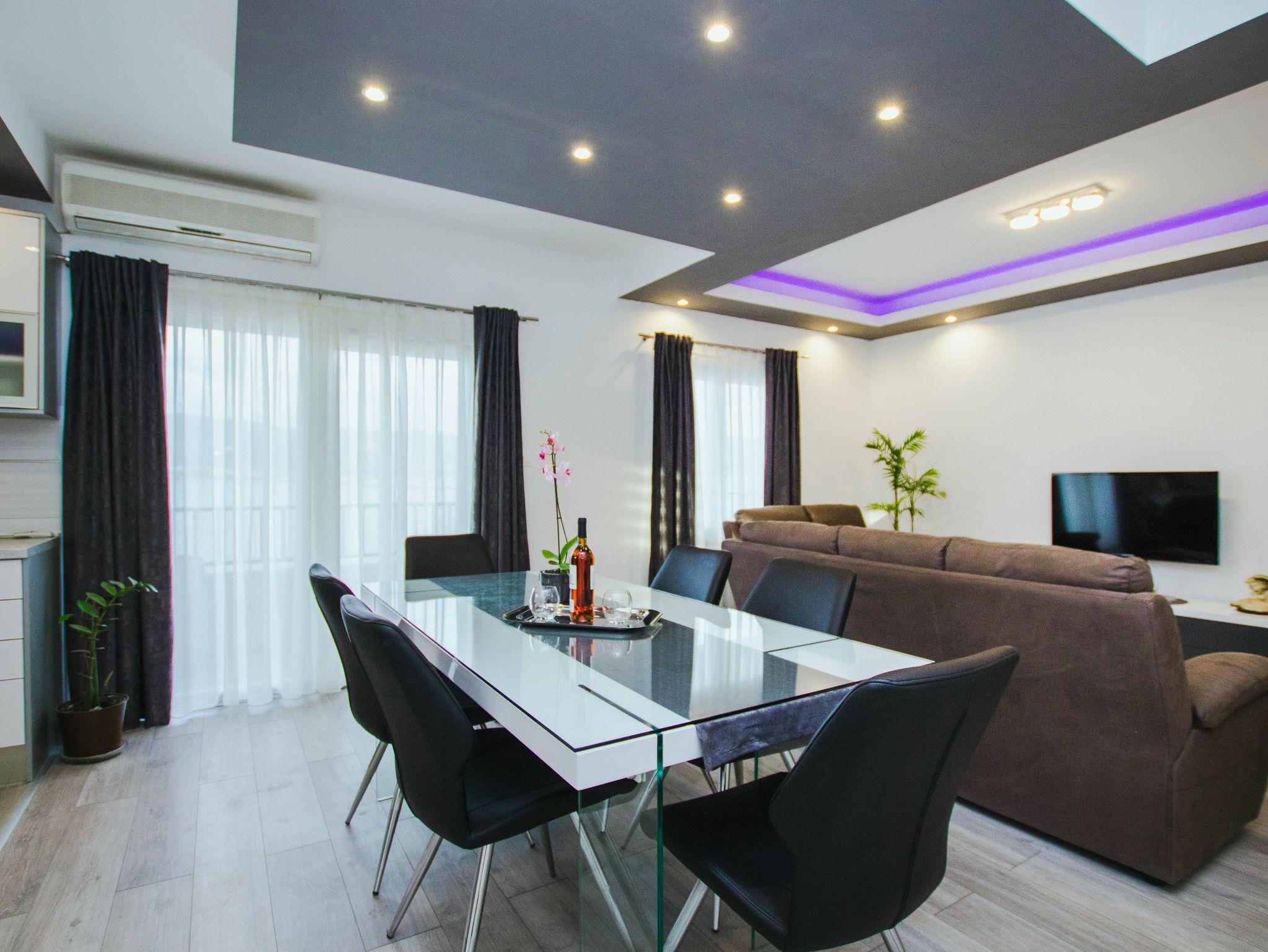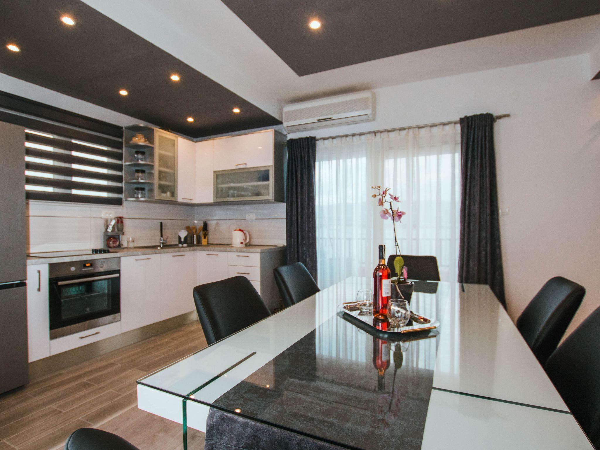 Ferienwohnung bietet Platz für 4 Gäste. Die Betten sind in Schlafzimmern, die es 2 gibt, innerhalb einer Gesamtfläche von 78m2, angeordnet. Die Gäste haben eine eigene Terrasse zur Verfügung, auf der sie in warmen Sommernächten genießen können. Das Apartment bietet Meerblick. Es ist erlaubt, Speisen auf dem Gemeinschafts-Grill vorzubereiten. IM PREIS INBEGRIFFEN: Kurtaxe, Endreinigung, Klimatisierung, Parkplatz, Garage, Internet, Bügeleisen, Bügelbrett. VERBINDLICHE ZUSÄTZLICHE KOSTEN: Aufzahlung für Kurzaufenthalte (prozentualer Zuschlag pro Nächtigungsanzahl: 30% - 1, 20% - 2, 10% - 3). Die Verfügbarkeit zusätzlicher Dienstleistungen in Ihrem reservierten Termin und die Preise derselben (falls nicht aufgeführt) müssen im Voraus überprüft werden. Zusätzliche Dienstleistungen die in der Zahlungsaufforderung nicht aufgeführt sind werden direkt beim Vermieter bezahlt, angenommen der Gast nutzt auch diese.