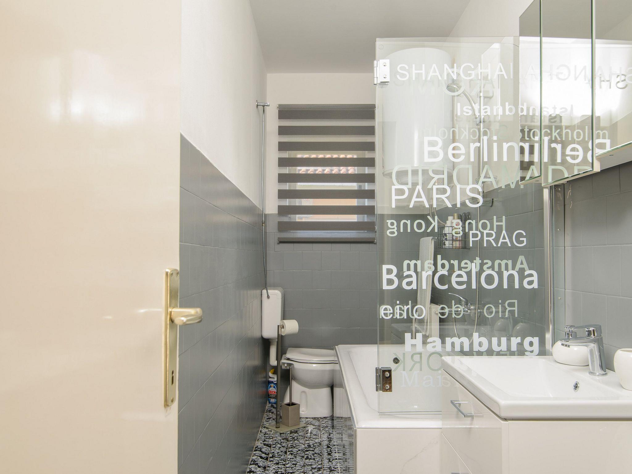 Ferienwohnung bietet Platz für 4 Gäste. Die Betten sind in Schlafzimmern, die es 2 gibt, und in Wohnzimmer, innerhalb einer Gesamtfläche von 60m2, angeordnet. Die Gäste haben eine eigene Terrasse zur Verfügung, auf der sie in warmen Sommernächten genießen können. Das Apartment bietet Meerblick. IM PREIS INBEGRIFFEN: Kurtaxe, Endreinigung, Klimatisierung, Parkplatz, Internet, Bügeleisen, Bügelbrett, Föhn. Die Verfügbarkeit zusätzlicher Dienstleistungen in Ihrem reservierten Termin und die Preise derselben (falls nicht aufgeführt) müssen im Voraus überprüft werden. Zusätzliche Dienstleistungen die in der Zahlungsaufforderung nicht aufgeführt sind werden direkt beim Vermieter bezahlt, angenommen der Gast nutzt auch diese.