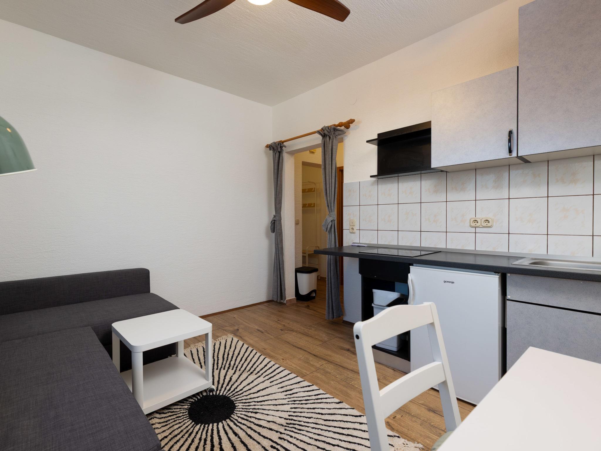 "Dalero 2", 2-Zimmer-Wohnung 40 m2, im Erdgeschoss, Nordlage. Wohn-/Esszimmer mit 1 Diwanbett (140 cm, Länge 200 cm), Sat-TV (Flachbildschirm). Eingang mit Klimaanlage. 1 Zimmer mit 1 franz. Bett (160 cm, Länge 200 cm), Dusche/WC und Klimaanlage. Offene Küche (2 Glaskeramikplatten, Wasserkocher, elektrische Kaffeemaschine, Dampfgarer). Bitte beachten: Nichtraucher-Haus. Rauchmelder.