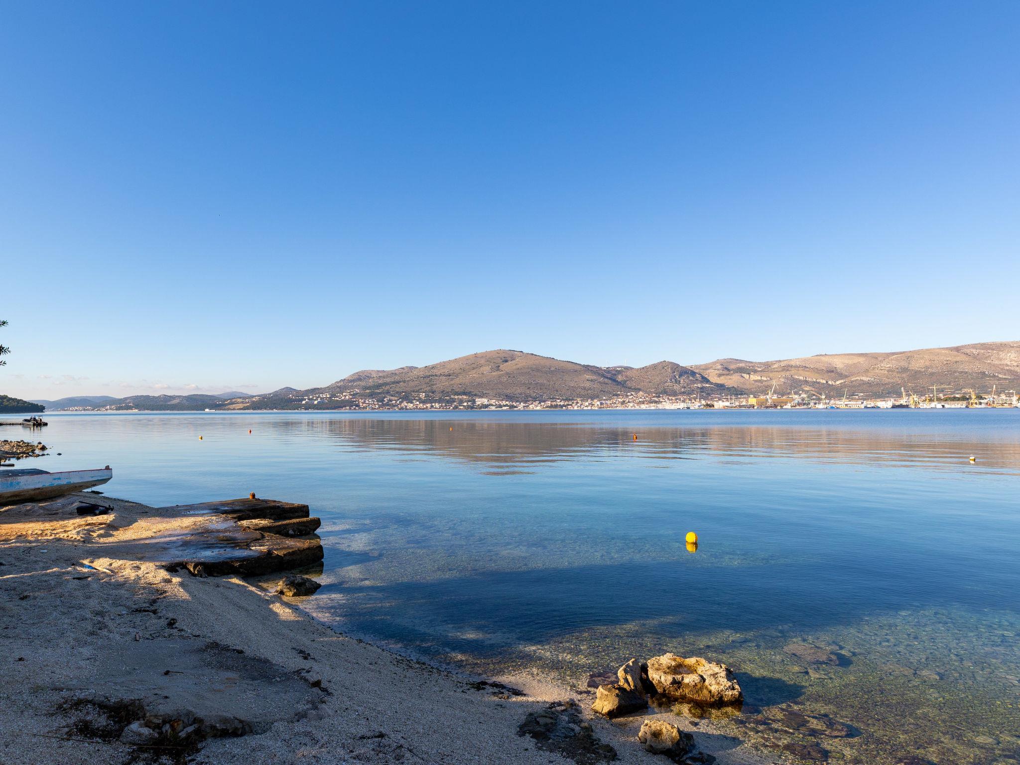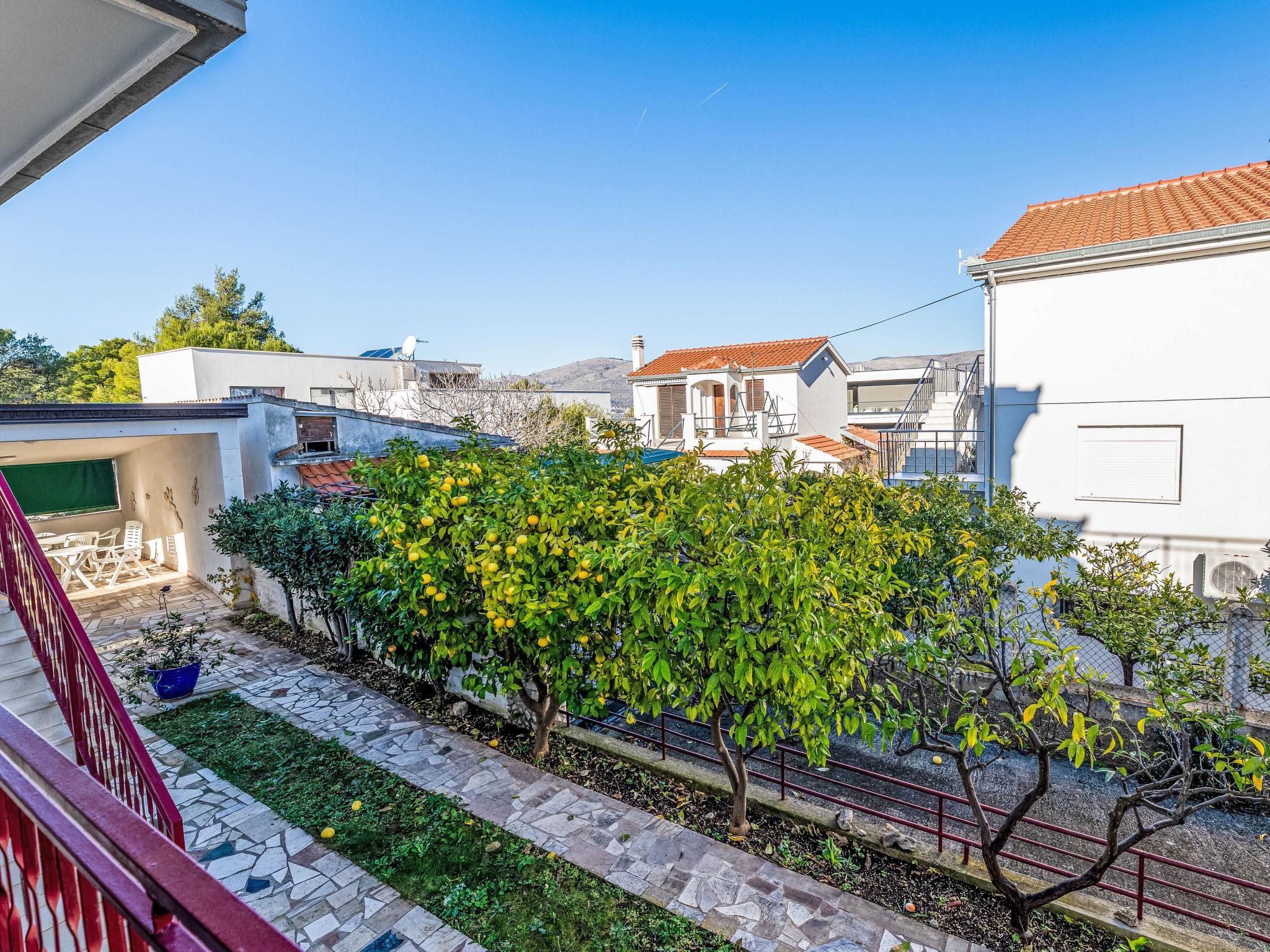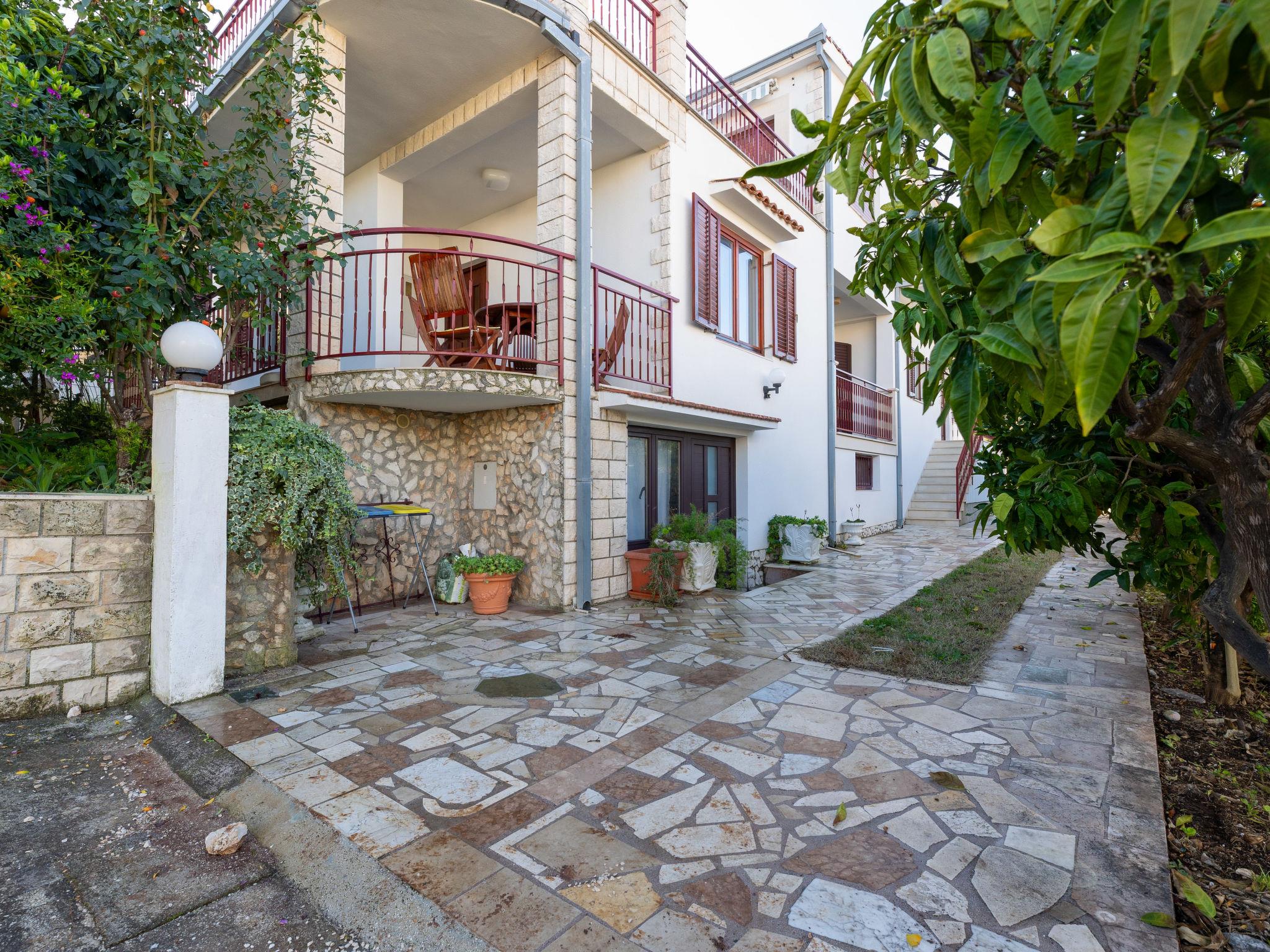 Okrug Gornji (Ciovo) 6 km von Trogir: Mehrfamilienhaus auf 3 Stockwerken. 1.5 km vom Zentrum von Okrug Gornji, ruhige, sonnige Lage, 80 m vom Meer, 80 m vom Strand. Zur Mitbenutzung: Grundstück 450 m2. Terrasse (20 m2), Grill. Im Hause: Internetzugang. Parkplatz (für 5 Autos) beim Haus auf dem Grundstück. Einkaufsgeschäft 1.5 km, Restaurant 1.5 km, Bushaltestelle 1 km.