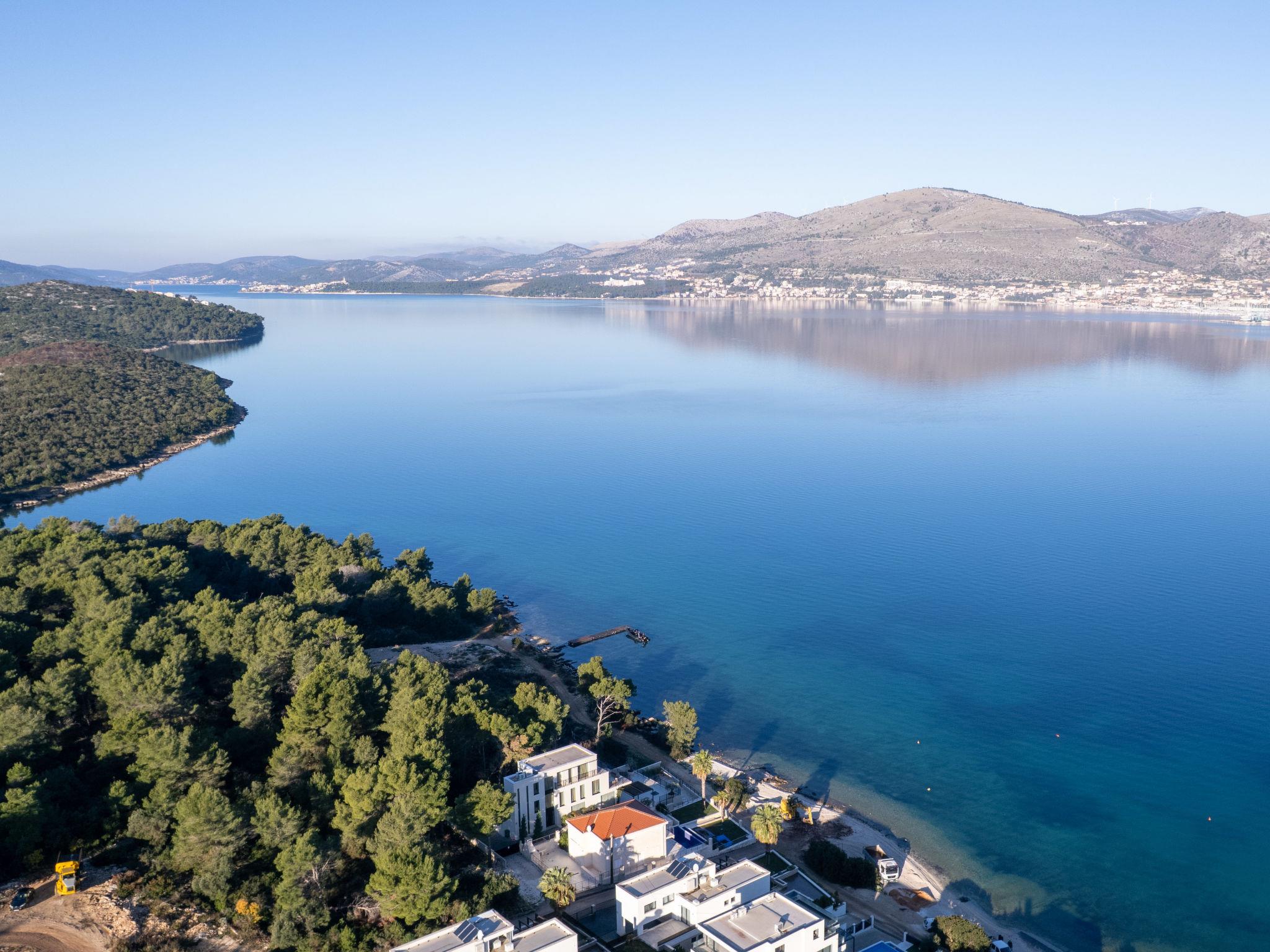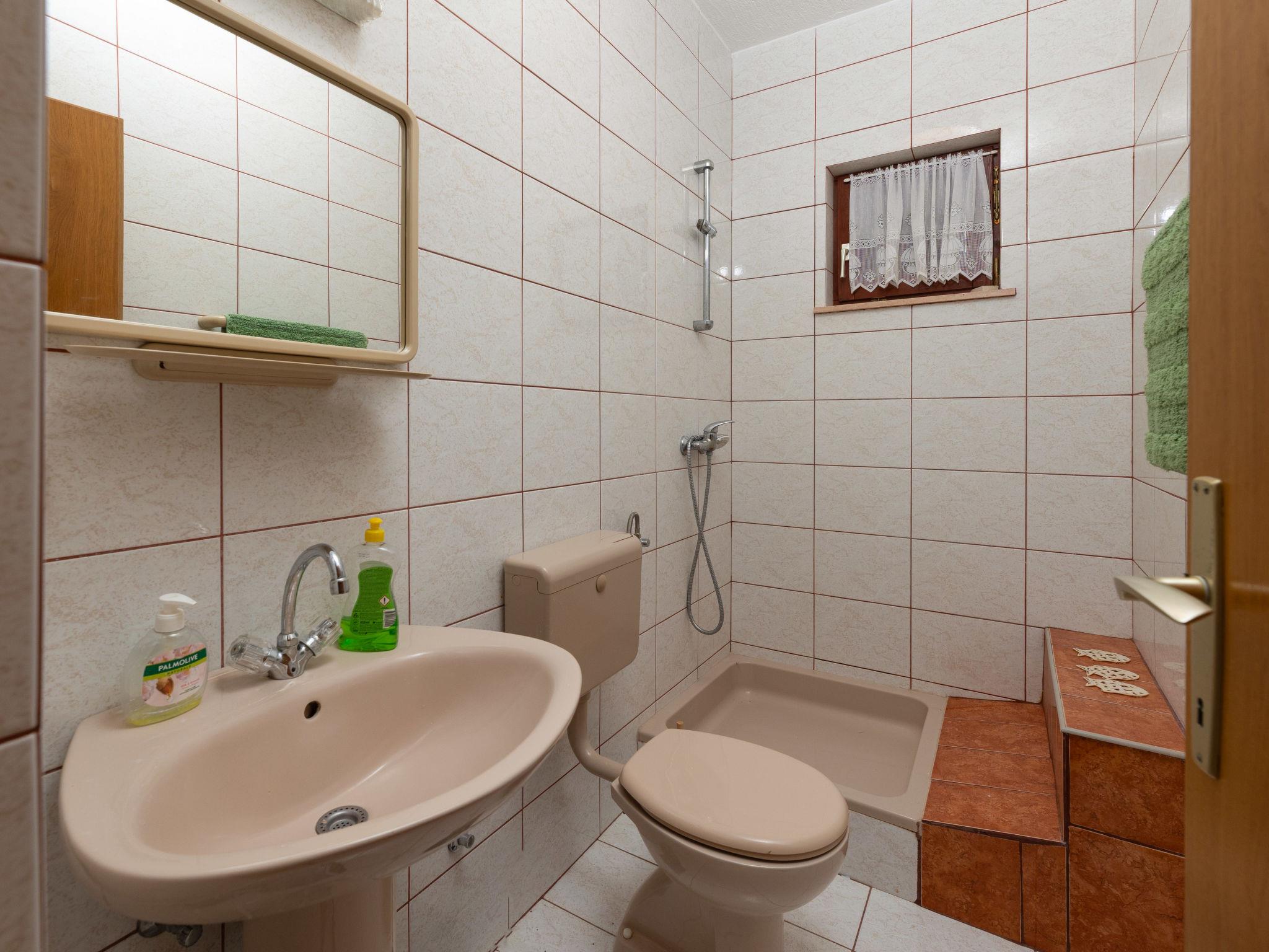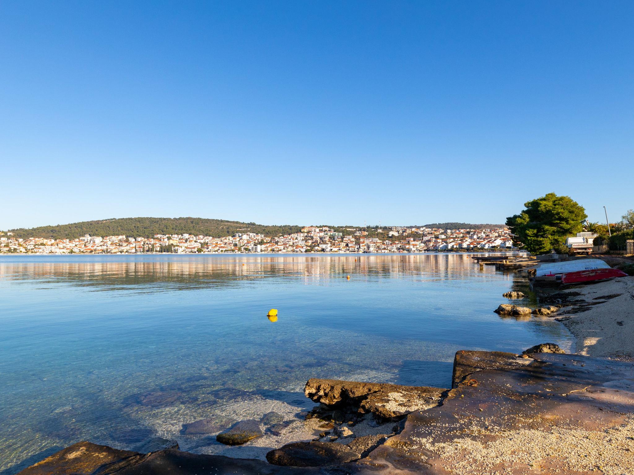 Okrug Gornji (Ciovo) 6 km von Trogir: Mehrfamilienhaus auf 3 Stockwerken. 1.5 km vom Zentrum von Okrug Gornji, ruhige, sonnige Lage, 80 m vom Meer, 80 m vom Strand. Zur Mitbenutzung: Grundstück 450 m2. Terrasse (20 m2), Grill. Im Hause: Internetzugang. Parkplatz (für 5 Autos) beim Haus auf dem Grundstück. Einkaufsgeschäft 1.5 km, Restaurant 1.5 km, Bushaltestelle 1 km.