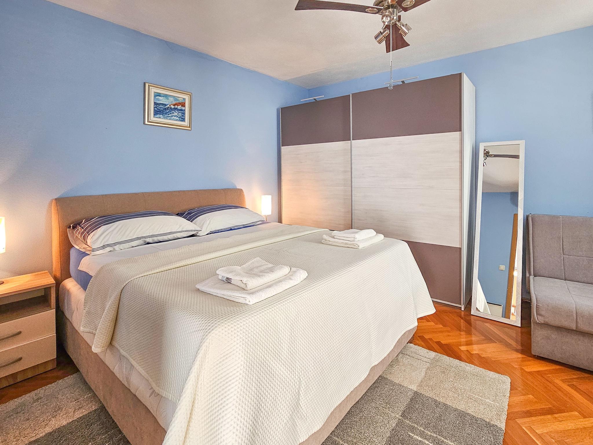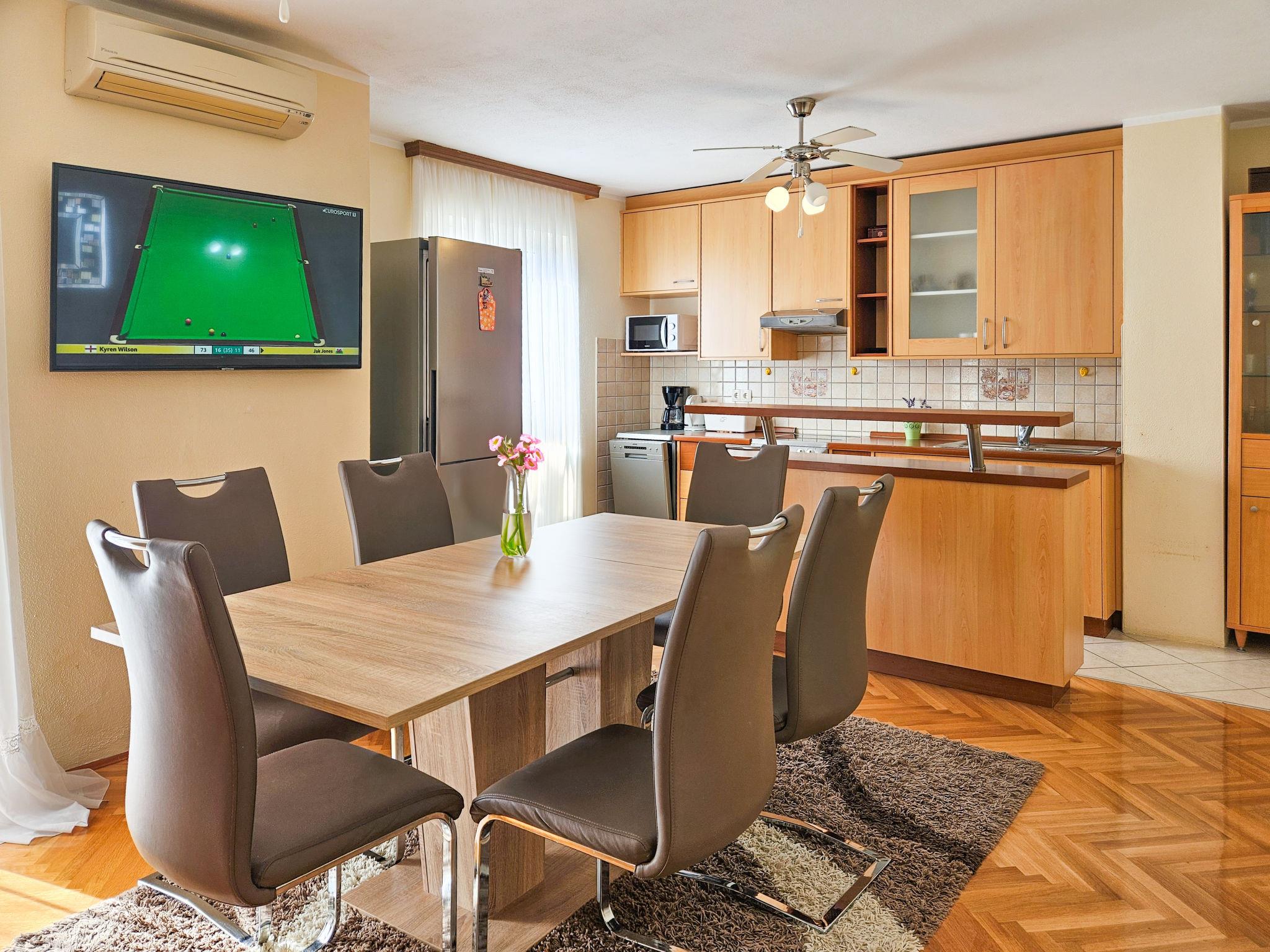 Okrug gornji 5 km von Trogir: Schönes, komfortables Zweifamilienhaus "Lille", auf 2 Stockwerken. 1 km vom Zentrum von Okrug gornji, ruhige, sonnige Lage, 50 m vom Meer, 50 m vom Strand, in einer Sackgasse, Richtung Süden. Zur Mitbenutzung: Grundstück 330 m2. Terrasse (40 m2), Gartenmöbel, Grill. Im Hause: Internetzugang. Parkplatz (für 2 Autos). Einkaufsgeschäft 1 km, Restaurant 500 m, Bushaltestelle 1.8 km, Kieselstrand 1.5 km, Felsstrand 50 m. Bitte beachten: geeignet für Familien.