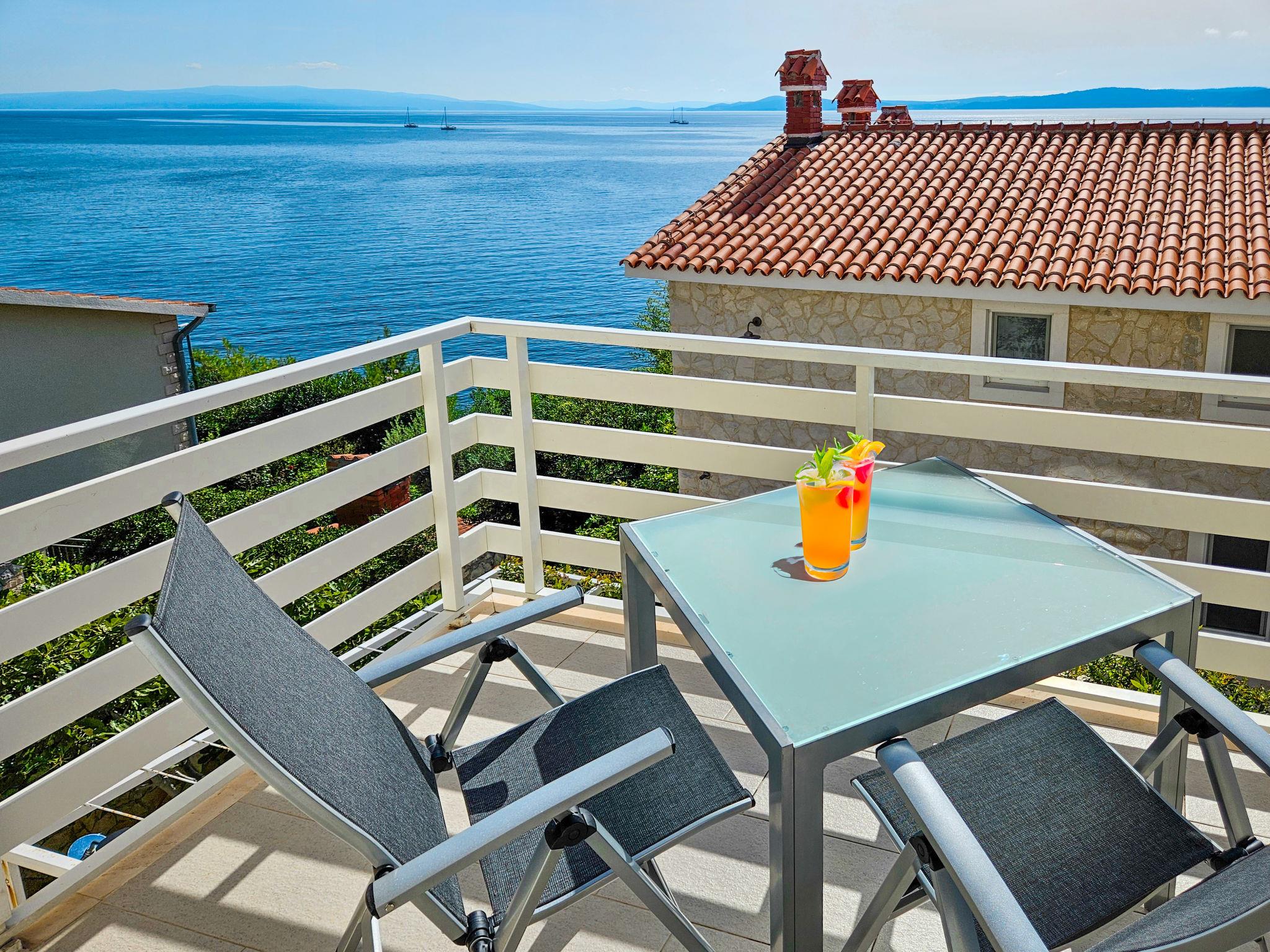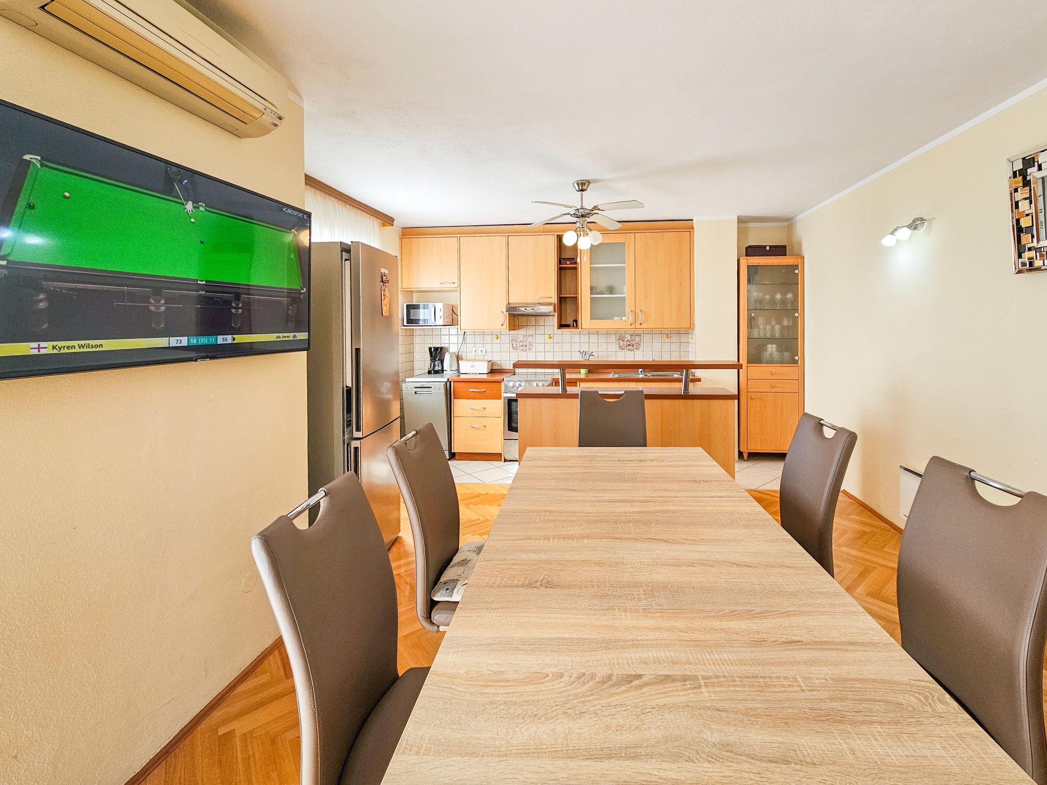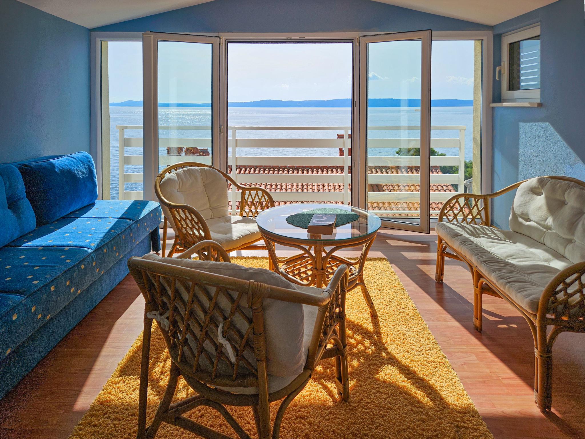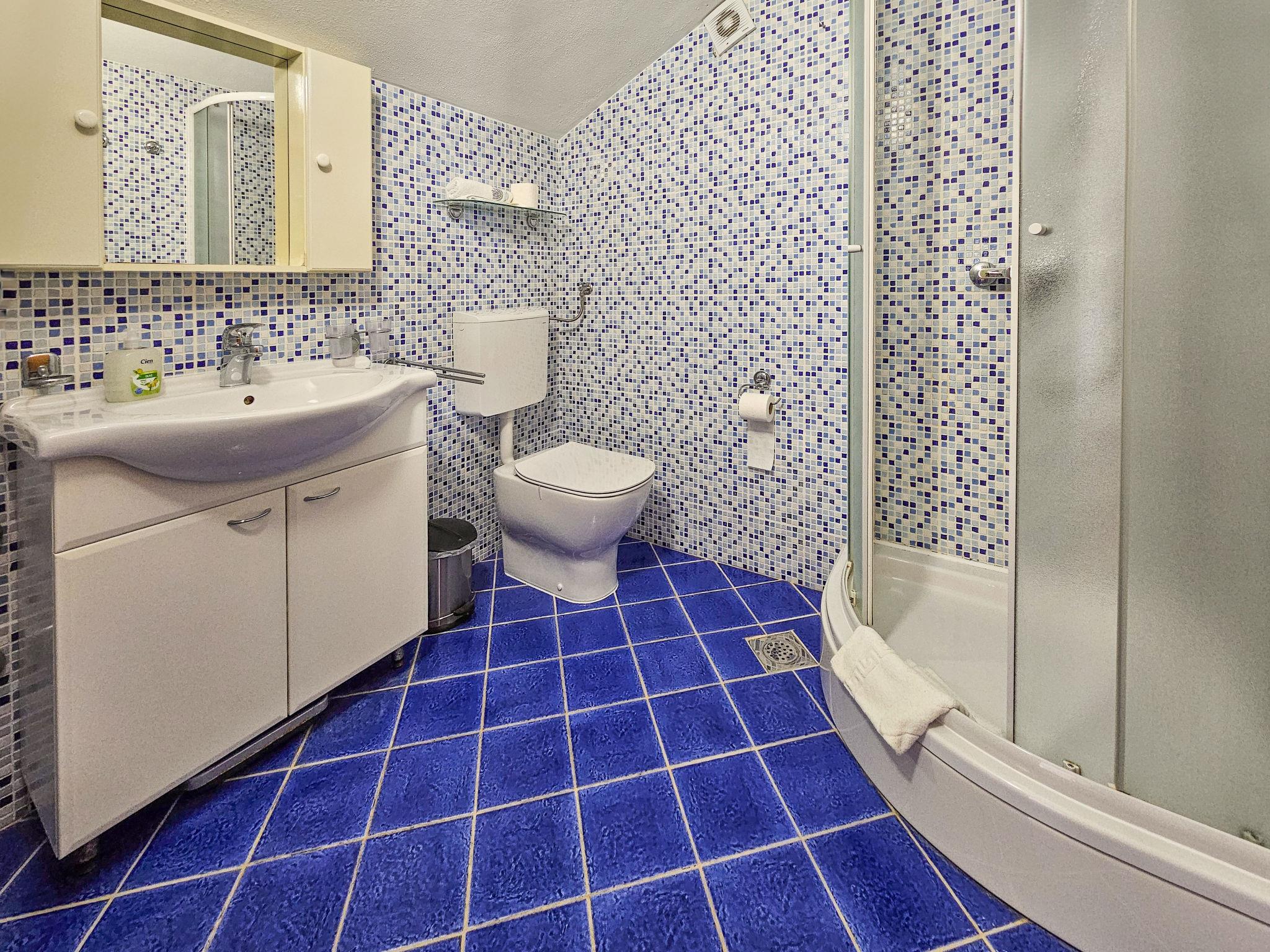 5-Zimmer-Wohnung 160 m2 auf 2 Stockwerken, Südlage. 3 Zimmer, jedes Zimmer mit 1 franz. Bett (160 cm, Länge 200 cm), Klimaanlage und Ventilator. Küche (4 Kochplatten, Backofen, Geschirrspüler, Wasserkocher, Mikrowelle, Tiefkühler, elektrische Kaffeemaschine) mit Esstisch, Sat-TV (Flachbildschirm), Klimaanlage und Ventilator. Ausgang zur Terrasse. Dusche/WC. Obergeschoss: Wohnzimmer, Deckenhöhe 80 - 230 cm mit Sat-TV (Flachbildschirm). Ausgang zur Loggia. 1 Zimmer mit 1 franz. Bett (160 cm, Länge 200 cm), Klimaanlage. Dusche/WC. Terrasse 12 m2. Terrassenmöbel, Liegestühle (2). Schöne Sicht auf das Meer. Zur Verfügung: Waschmaschine, Kinderhochstuhl, Babybett. Internet (Wireless LAN, gratis). 6721