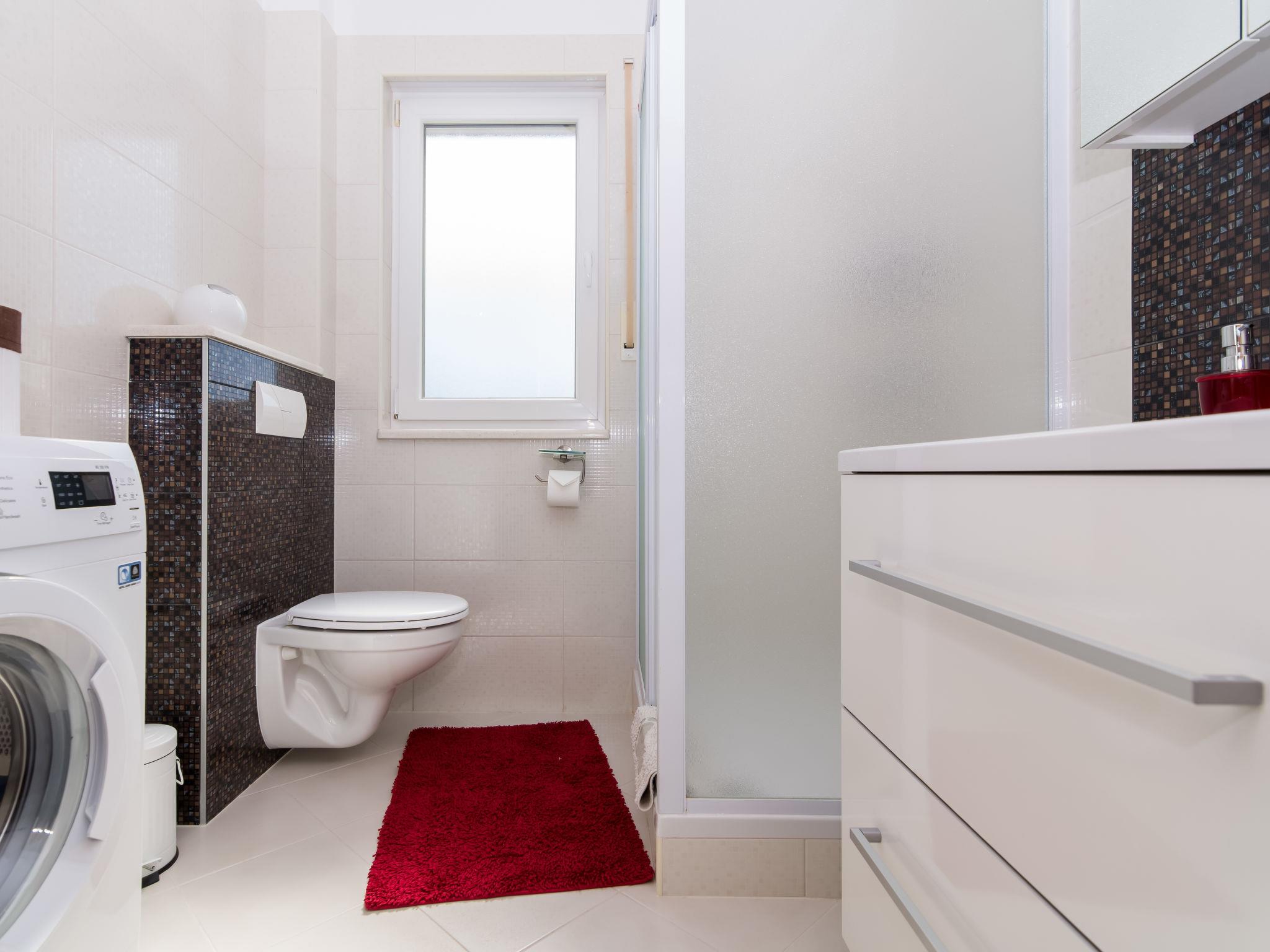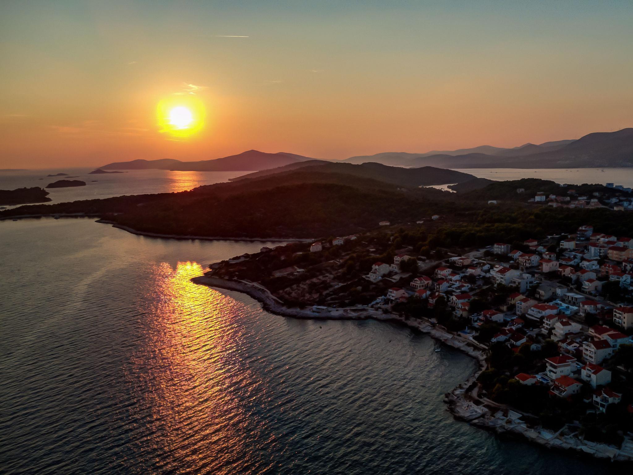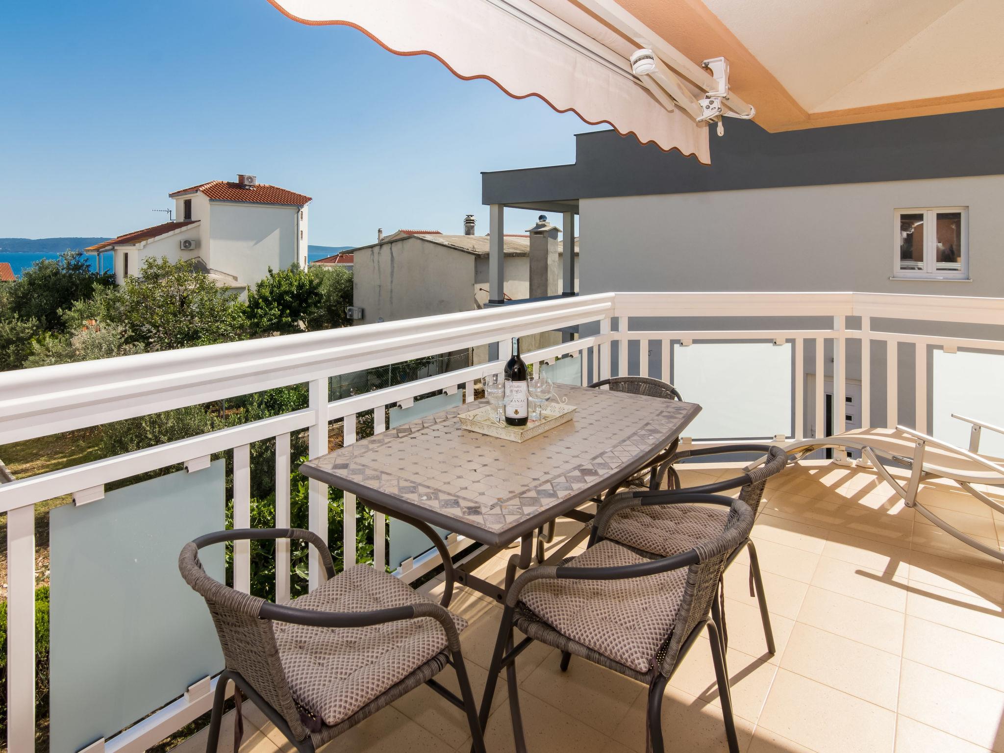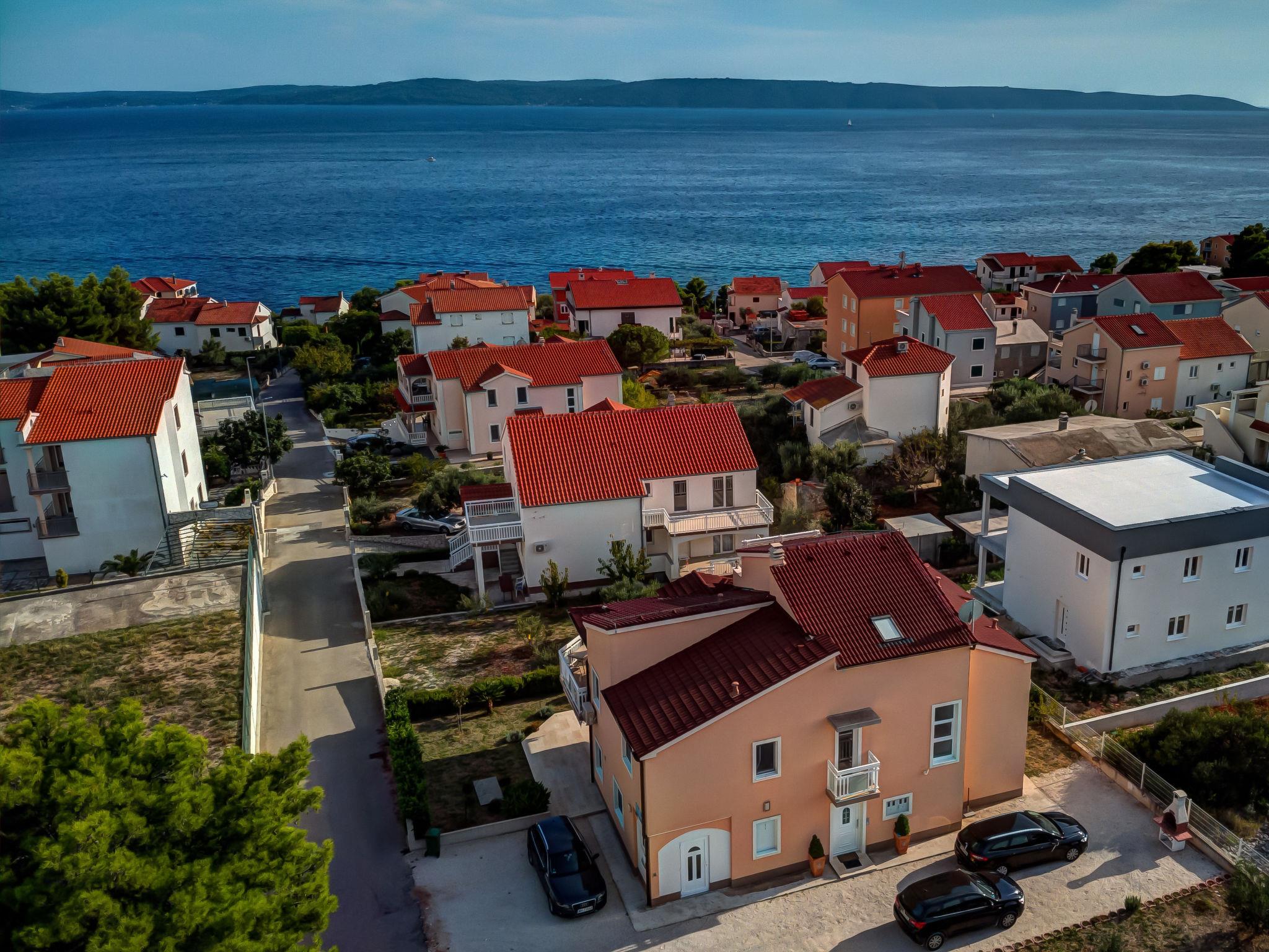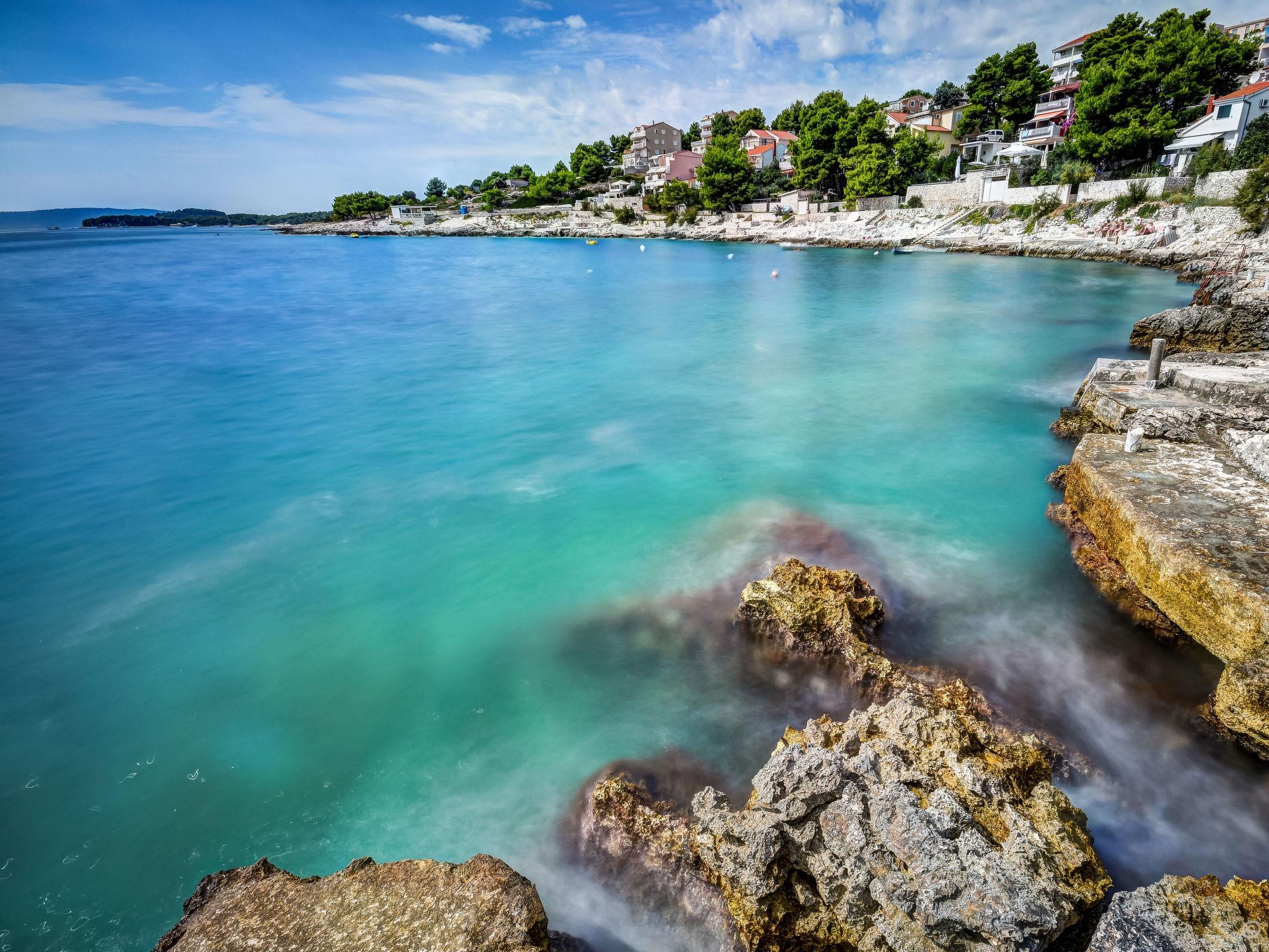 Okrug Gornji (Ciovo) 6 km von Trogir: Schönes Mehrfamilienhaus "Villa Nikaroni". 1.5 km vom Zentrum von Okrug Gornji, ruhige, sonnige Lage, 250 m vom Meer, 250 m vom Strand. Zur Mitbenutzung: Grundstück 1'000 m2, Garten mit Rasen. Grill. Im Hause: Internetzugang. Parkplatz beim Haus auf dem Grundstück. Einkaufsgeschäft, Restaurant 650 m, Bushaltestelle 2 km, Felsstrand 250 m.