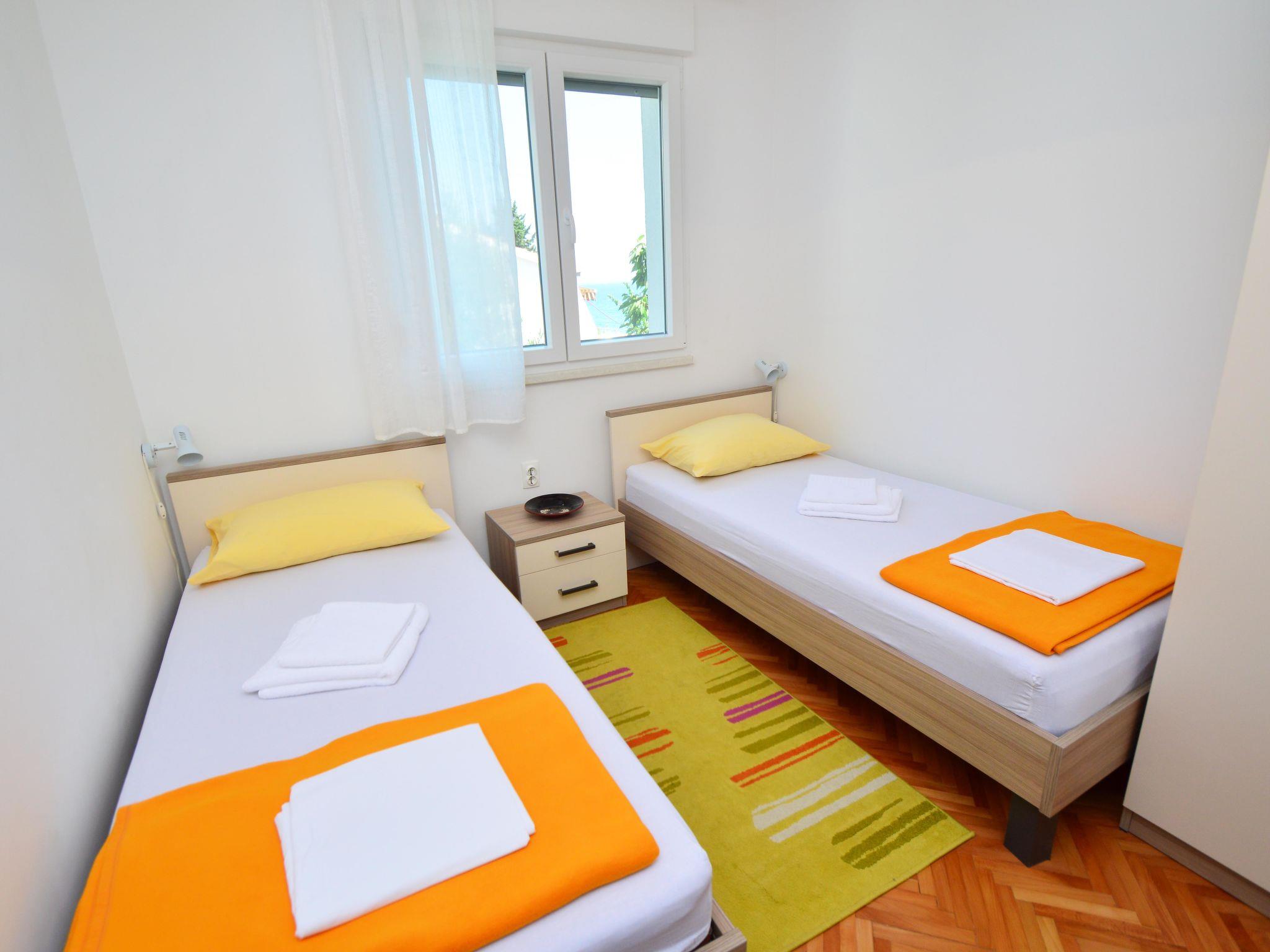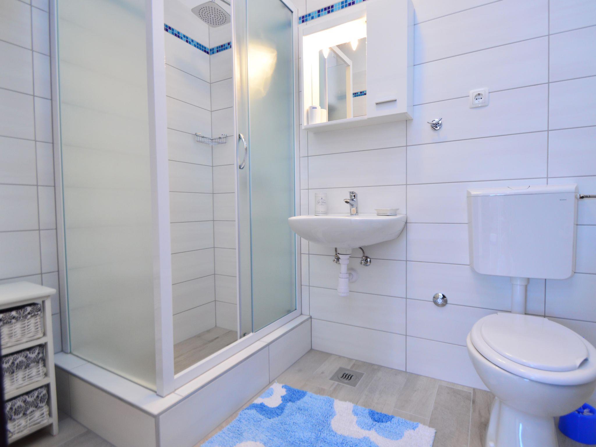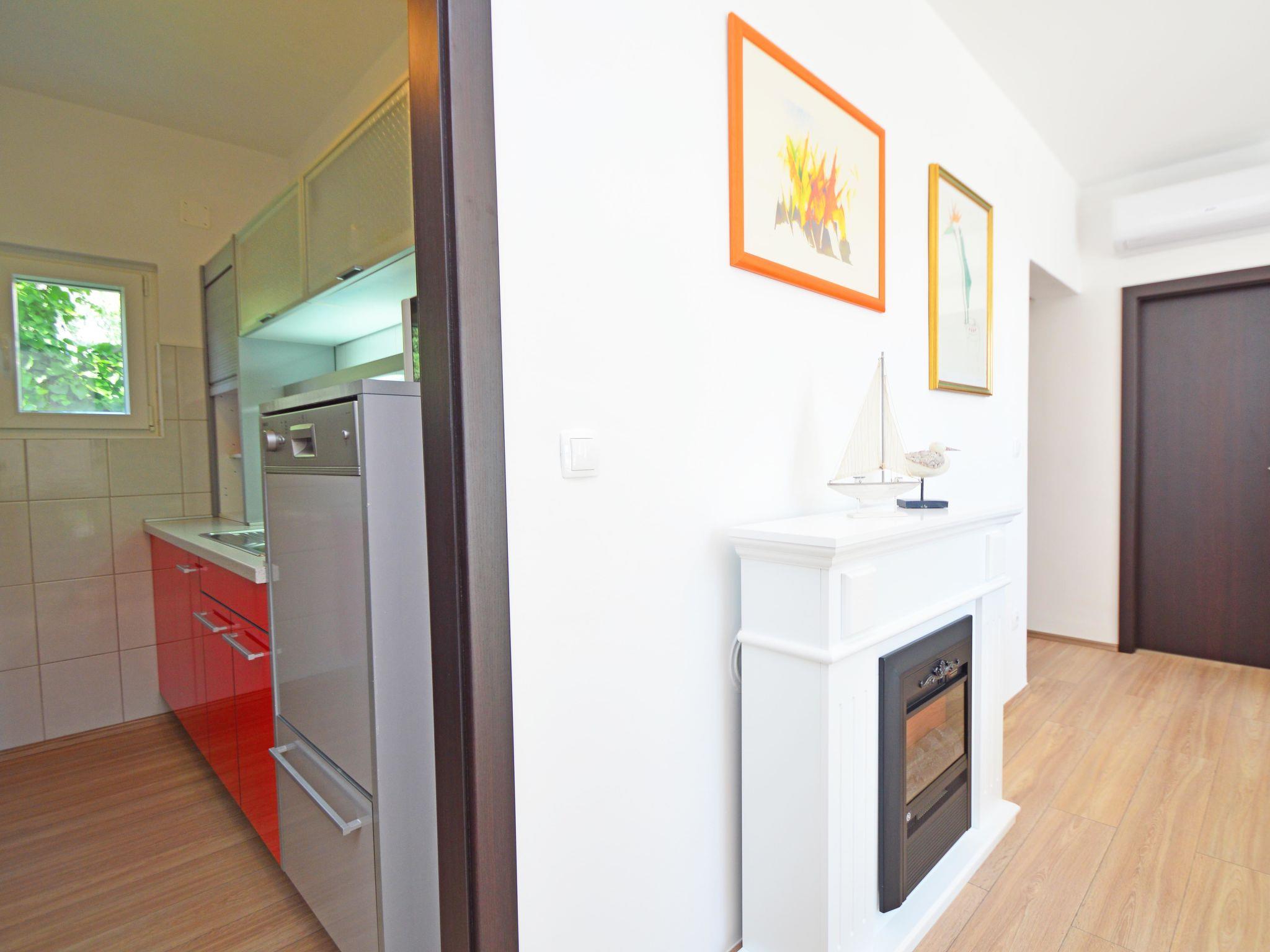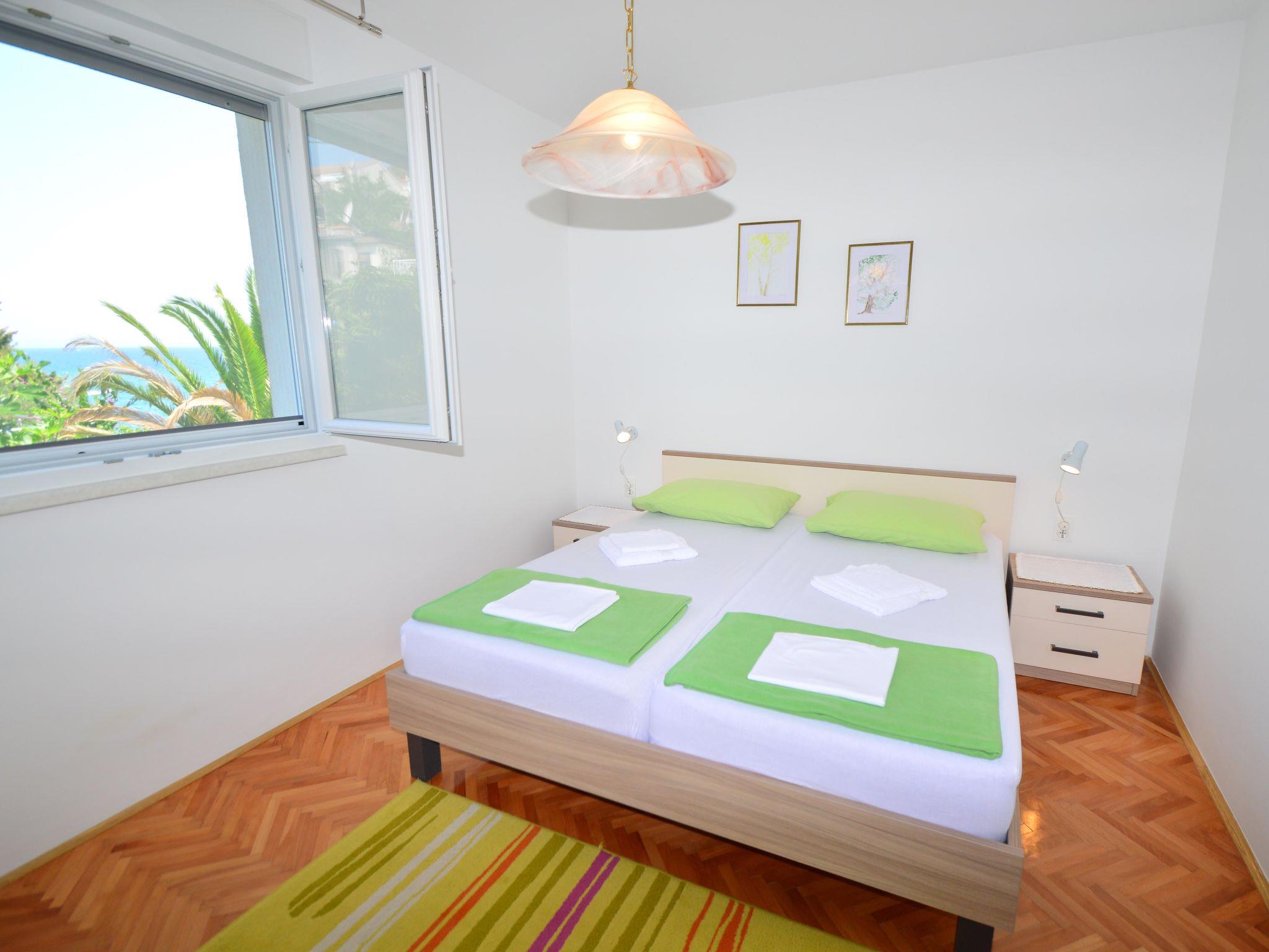 Okrug Gornji (Ciovo) 7 km von Trogir: Zweifamilienhaus "Amiela", umgeben von Bäumen. Im Ortsteil Mavarstica, 1.5 km vom Zentrum von Okrug Gornji, ruhige, sonnige Lage, 15 m vom Meer, 15 m vom Strand, im Grünen. Zur Mitbenutzung: terrassierter Garten (eingezäunt) mit Blumen und Bäumen. Aussendusche, Grill. Im Hause: Internetzugang. Fussweg (20 Stufen) bis zum Haus. Parkplatz (überdacht) in 60 m auf dem Grundstück. Einkaufsgeschäft 1.5 km, Restaurant 1.5 km, Bushaltestelle 1.7 km, Kieselstrand 250 m, Felsstrand 20 m, Tauchzentrum 600 m, betonierter Strand 15 m.