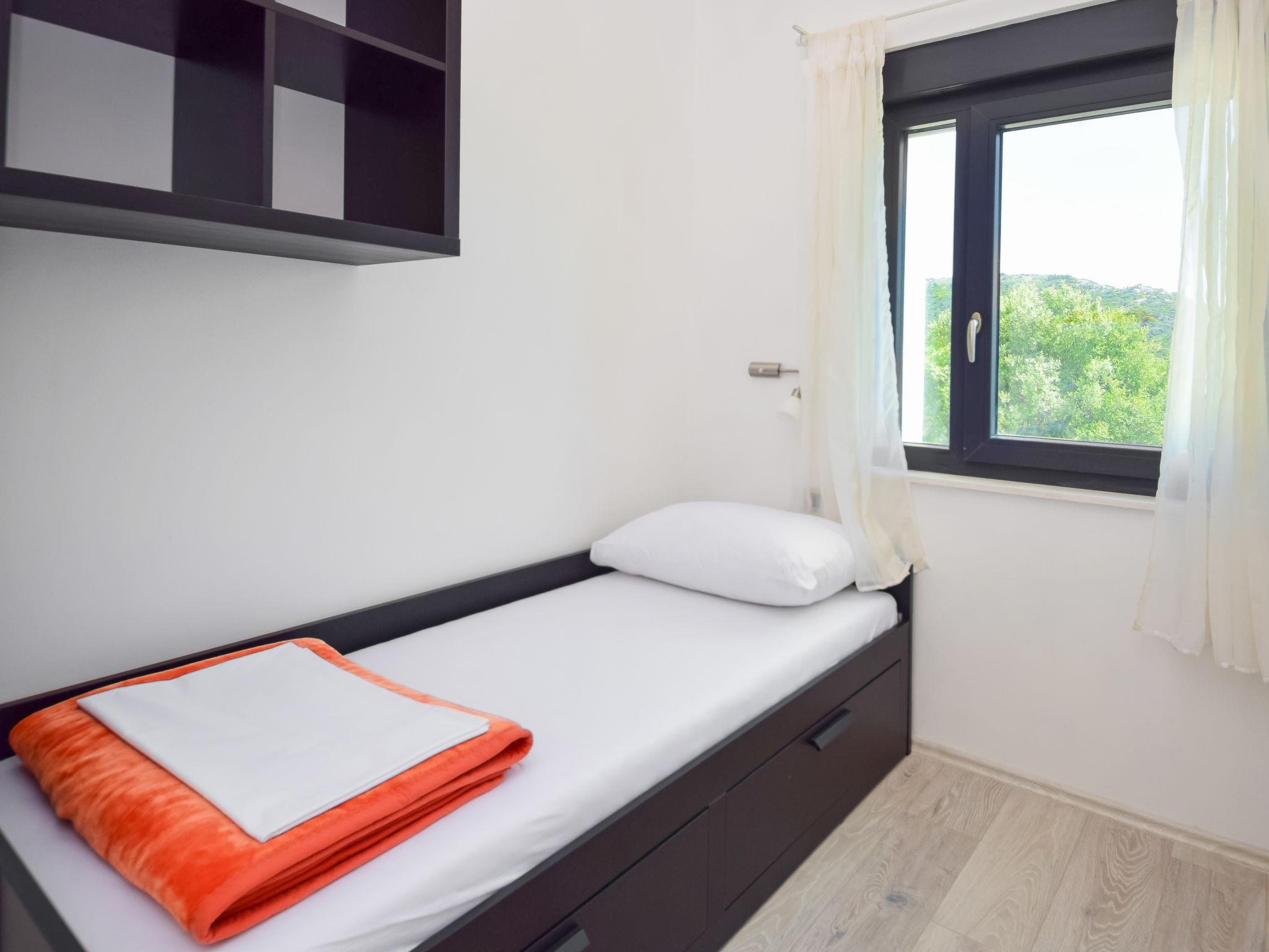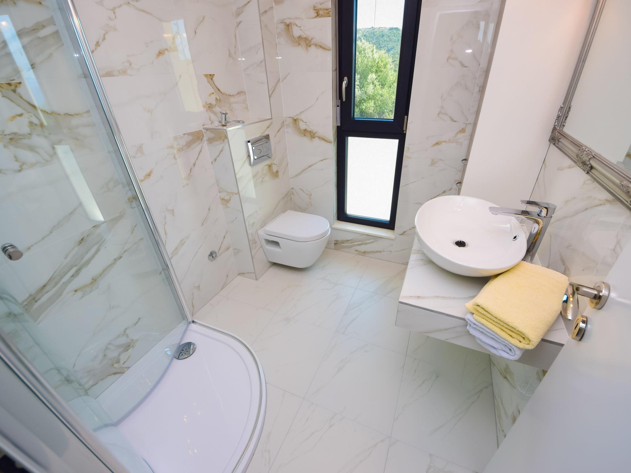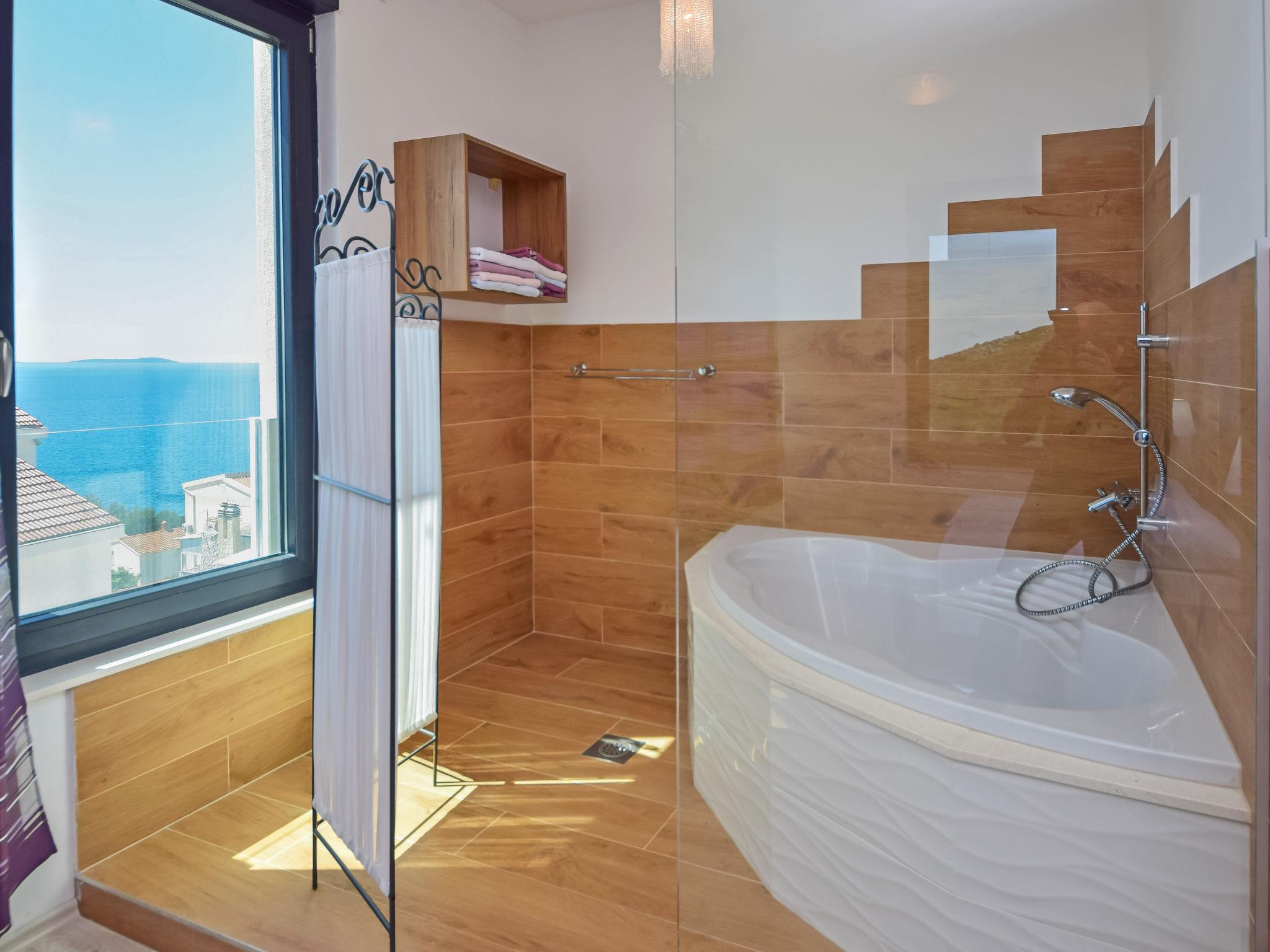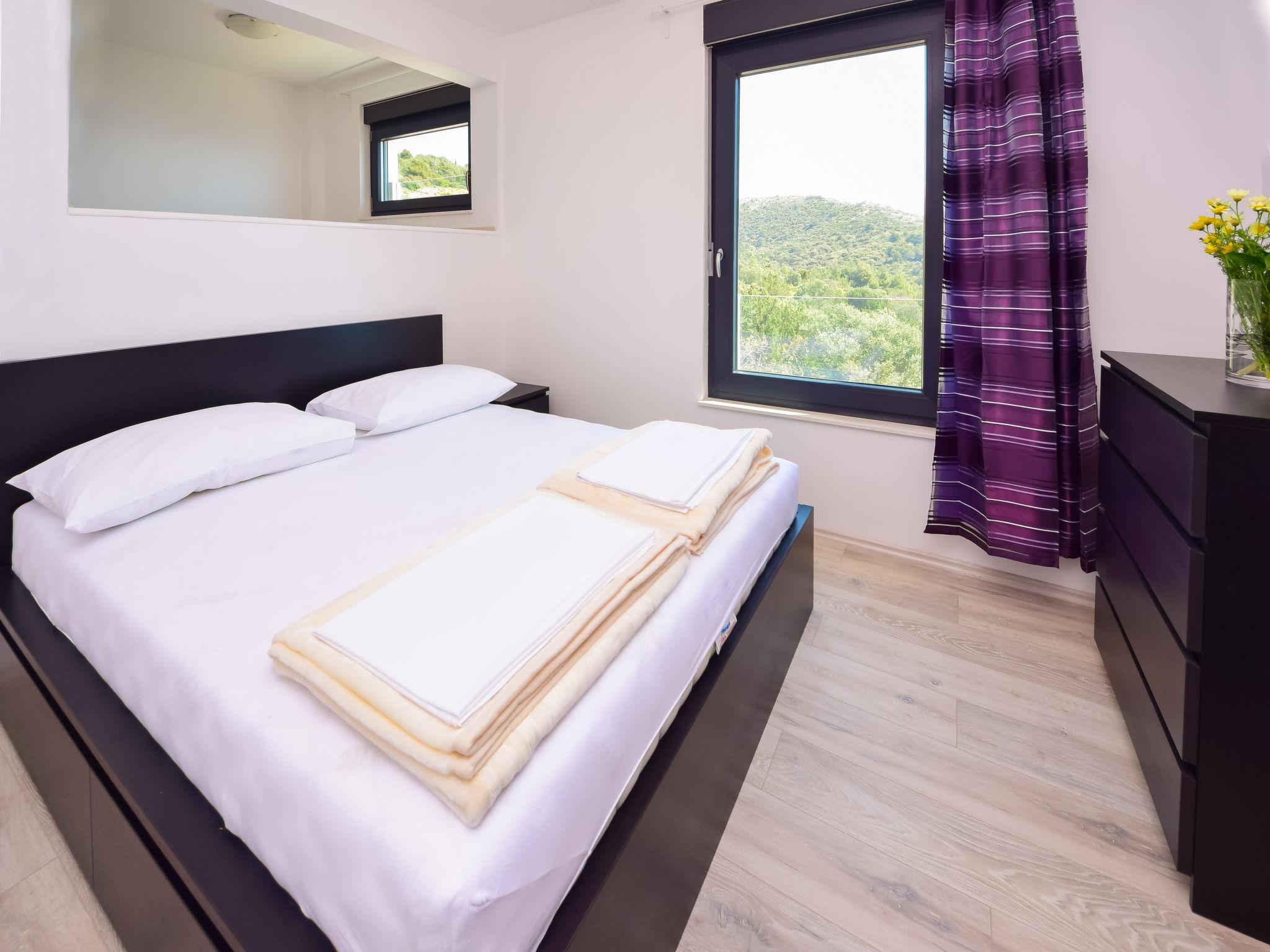 Okrug Gornji (Ciovo) 7 km von Trogir: Schöne Villa "Andrea", auf 2 Stockwerken. Im Ortsteil Mavarštica, 1.8 km vom Zentrum von Okrug Gornji, ruhige, sonnige, erhöhte Lage, 170 m vom Meer, 170 m vom Strand. Zur Alleinbenutzung: Grundstück 400 m2 (eingezäunt), Schwimmbad eckig (7 x 5 m, 150 cm tief, saisonale Verfügbarkeit: 20.Apr. - 16.Nov.) mit Innentreppe. Aussendusche, Terrasse (90 m2), Gartenmöbel, Grill. Im Hause: Internetzugang, Waschmaschine. Parkplatz (für 2 Autos) beim Haus auf dem Grundstück. Einkaufsgeschäft 400 m, Restaurant 900 m, Bushaltestelle 2.3 km, Kieselstrand 280 m, Felsstrand 170 m.