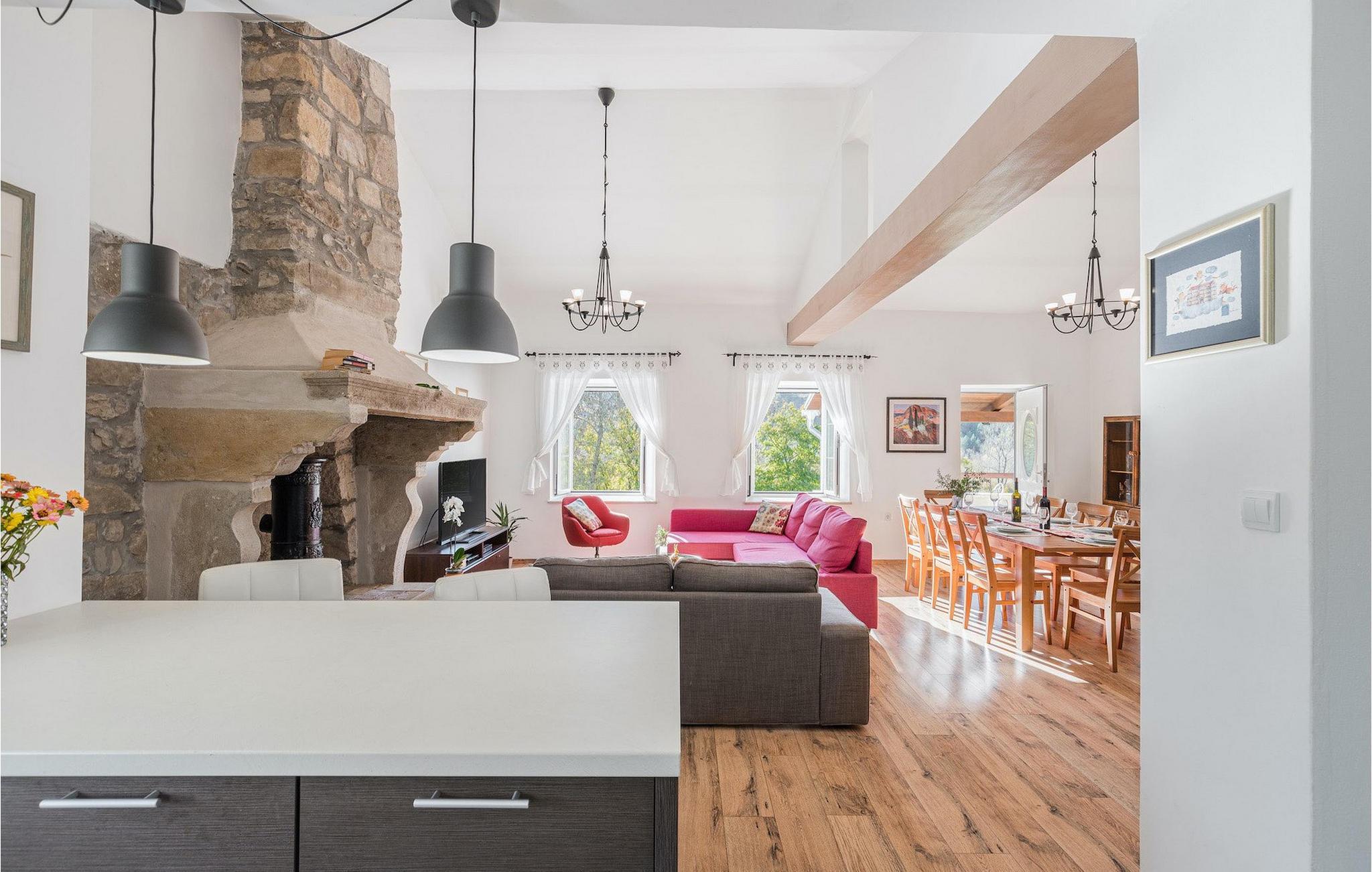 Vergessen Sie also alle alltäglichen Sorgen und lassen Sie sich verwöhnen von der unglaublich entspannenden Atmosphere dieser wunderschönen Landvilla.Villa Supljini liegt inmitten der idylischen Landschaft an den westlichen Hängen des wunderschönen Naturparks Ucka. Falls Sie sich an Radfahren und Wandern erfreuen, warten die herrlichen Berge auf Sie. Die Abenteurer finden hier einige der beliebtesten Freiklettern- und Gleitschirmfliegen-Stellen in Kroatien. Nur ein Paar Fahrminuten von der Villa befindet sich das historische Städtchen Boljun mit der mittelaterlichen Festung, bezauberndem alten Stadtkern und einem traditionellen Restaurant mit köstlichen lokalen Spezialitäten. 200 m von der Villa fließt der kleine Fluss Boljuncica, ideal für ein erfrischendes Bad in der Sommerhitze. Und wenn Sie sich nach kristallklarem Meer sehnen, steht Ihnen eine Vielfalt an Stränden nur cca. 30 Fahrminuten weg zur Verfügung, sowie die Perle der Adria – Opatija, mit lebendigem Sommertrubel und erstklassigen Restaurants.