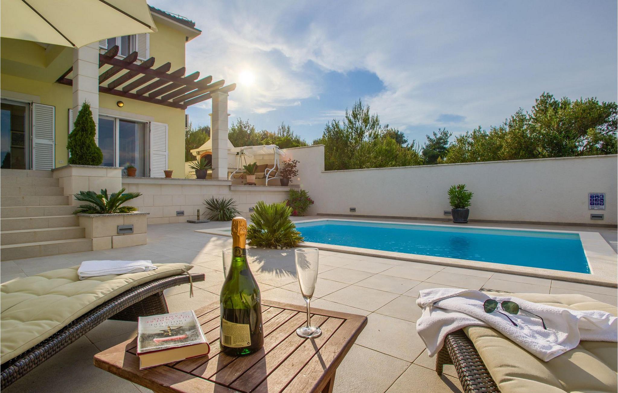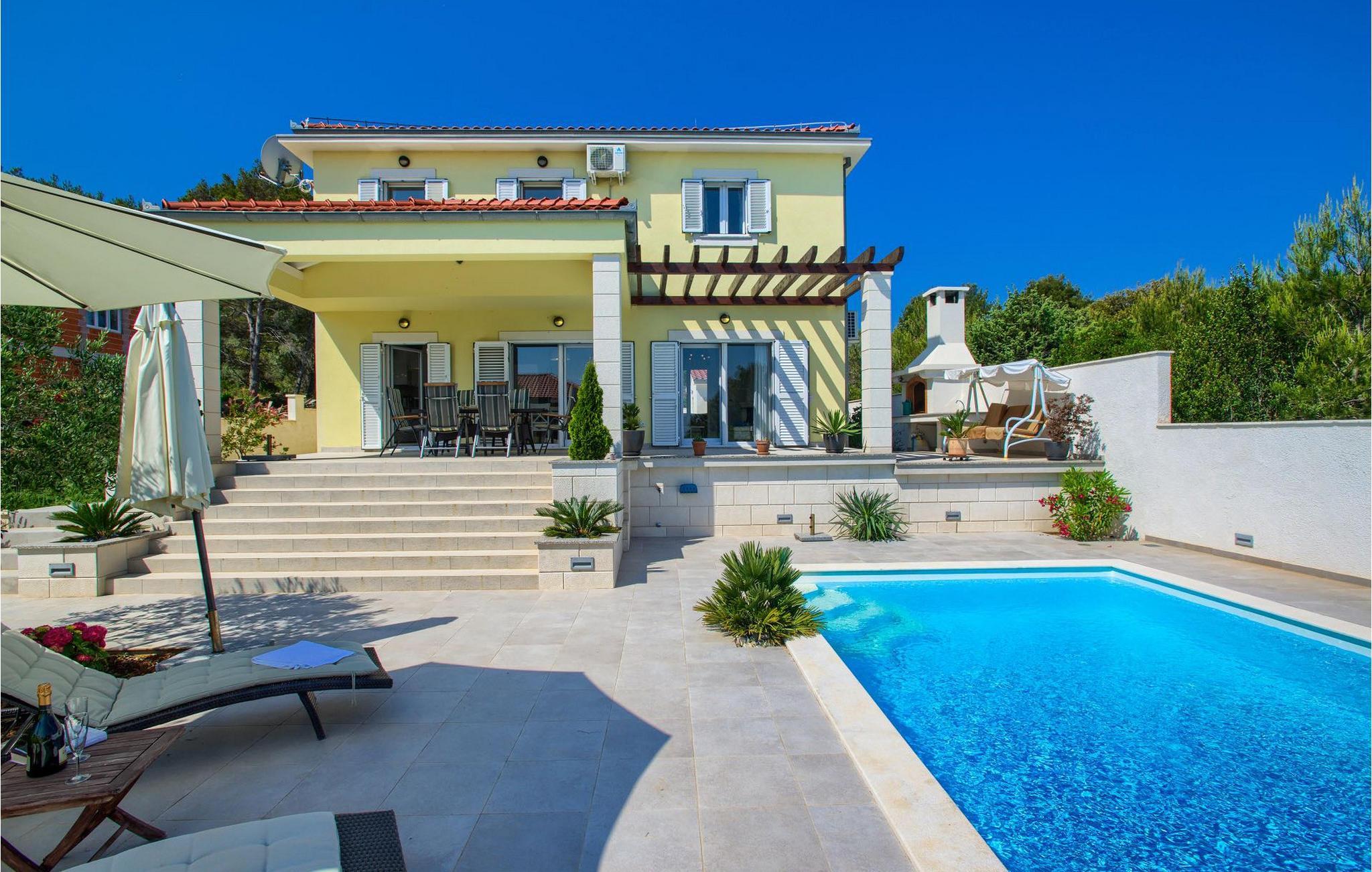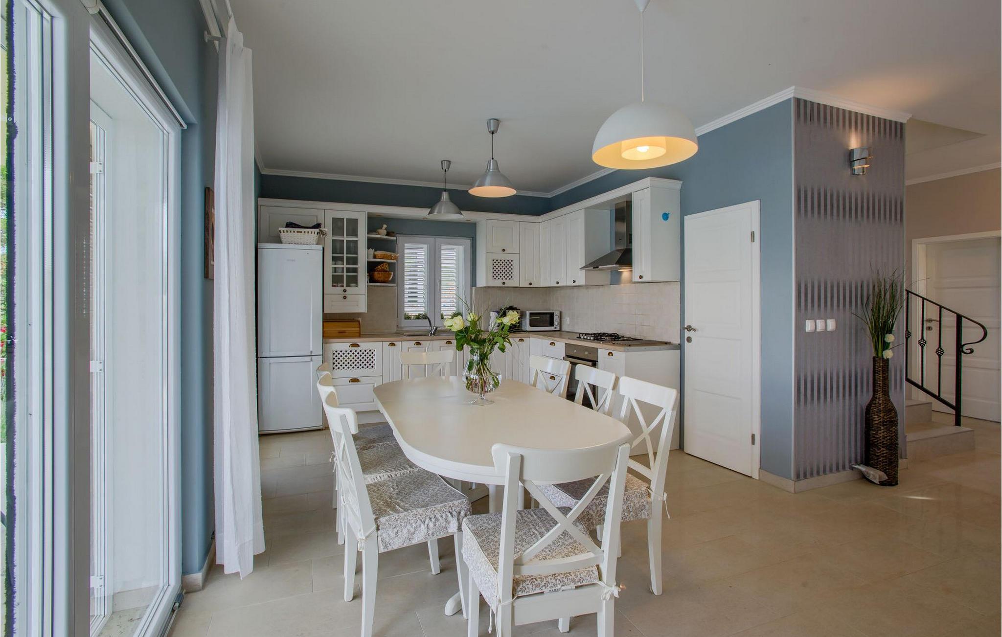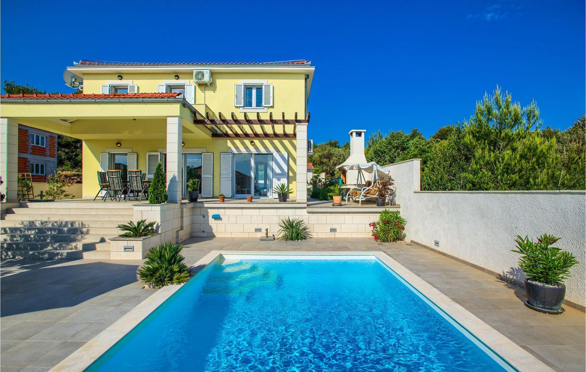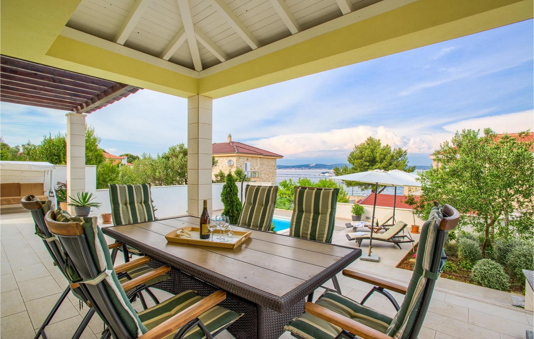 Die wunderschöne Villa Tatijana befindet sich auf der Insel Ugljan, in unmittelbarer Nähe zum Meer. Sie kann bis zu 8 Personen beherbergen und eignet sich ideal für Familien, Gruppen von Freunden oder Pärchen. Der Außenbereich bietet einen gepflegten Garten, der mit mediterranen Pflanzen geschmückt ist, einen privaten Pool mit Liegen und einem traumhaften Blick aufs Meer welchen Sie bestimmt genießen werden! Zur Verfügung steht Ihnen eine überdachte Terrasse und ein Grill - perfekt um leckere Spezialitäten vorzubereiten und den Sommerabend mit Ihren Liebsten zu verbringen. Das offen konzipierte Erdgeschoss besteht aus einer voll ausgestatteten Küche mit Essbereich und einem Wohnzimmer. Sobald Sie den Raum betreten, werden Sie die stilvolle Einrichtung mit schlichten Farben bemerken sowie den Kamin, der dem Raum eine gemütliche Atmosphäre verleiht. Weiters stehen Ihnen noch vier komfortable Schlafzimmer (eins im Erdgeschoss und drei auf der ersten Etage) und zwei Badezimmer zur Verfügung. Tischtennis und Darts sind vorhanden. Die voll klimatisierte Villa verfügt über Internetzugang, einen privaten Parkplatz für vier Autos und das Grundstück ist komplett umzäunt. Die Villa Tatijana ist die perfekte Wahl wenn Sie Ihren erholsamen Urlaub in Meernähe verbringen möchten. Hier werden Sie sich wie zu Hause fühlen!Die Villa befindet sich in Kukljica, einem kleinen Dorf auf der Insel Ugljan. Aus Zadar gibt es tägliche Fähreverbindungen zur Insel Ugljan bzw. zum Hafen im Dorf namens Preko. Zadar ist eine alte sehenswerte Stadt reich an Kulturerbe und historischen Attraktionen. Der berühmte Alfred Hitchcock sagte, in Zadar sei der schönste Sonnenuntergang- verpassen Sie ihn nicht! Die Altstadt bietet die Denkmäler aus der Antike, dem Mittelalter und der Renaissance. Heutzutage ist Zadar bekannt für die Meeresorgel und die Lichtinstallation "Pozdrav suncu" (Gruß an die Sonne).
