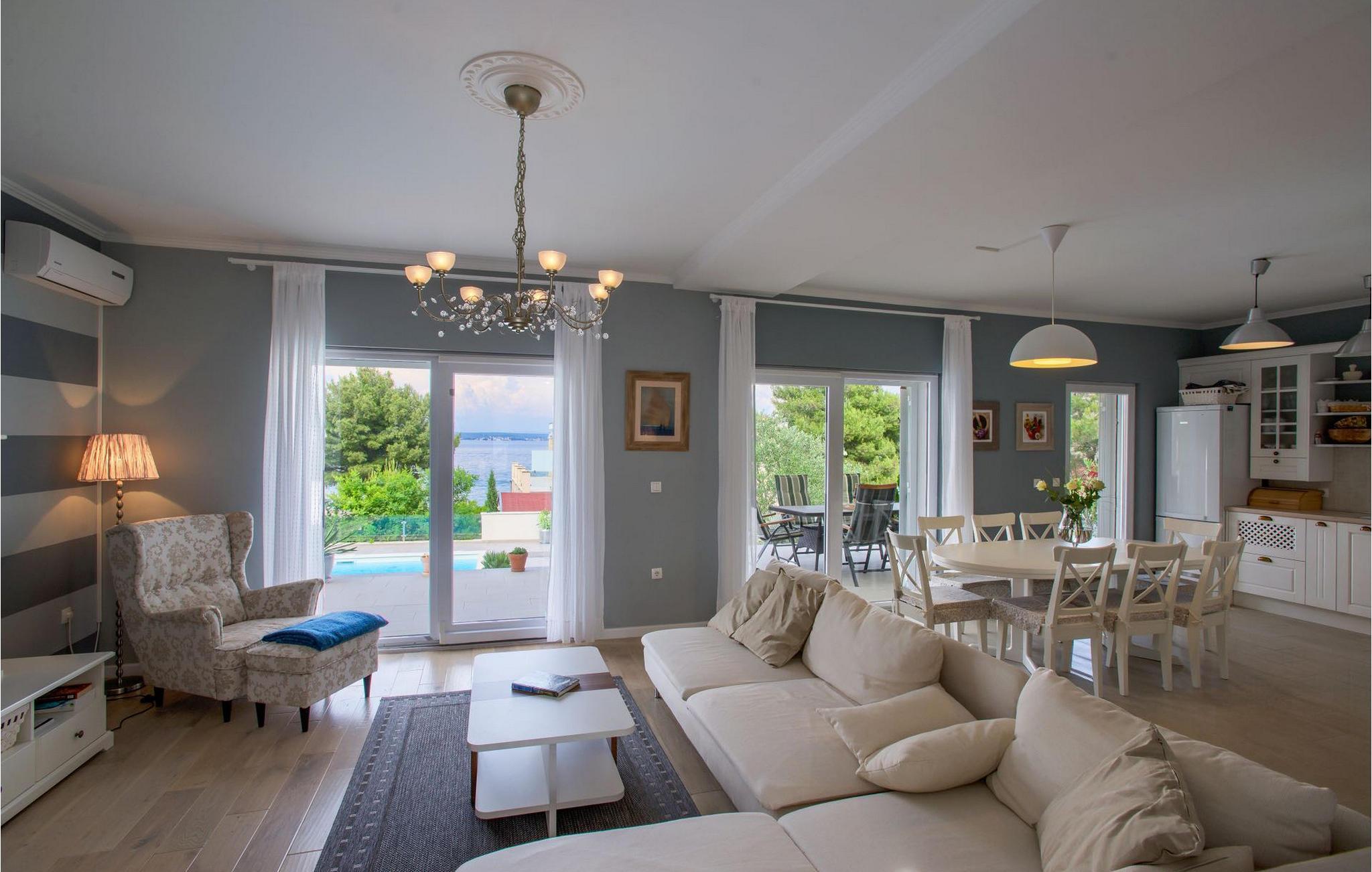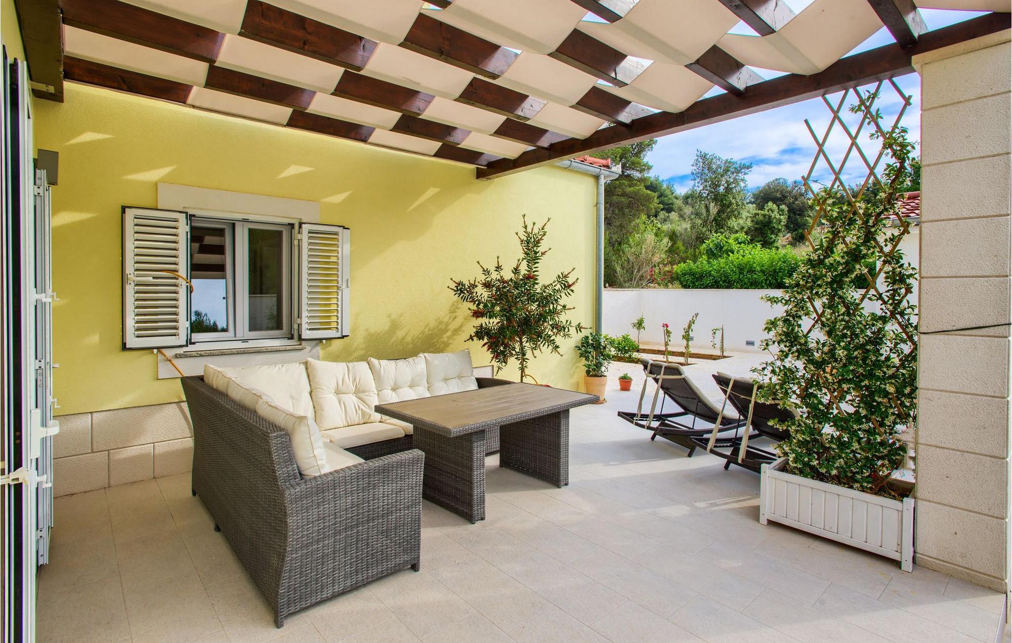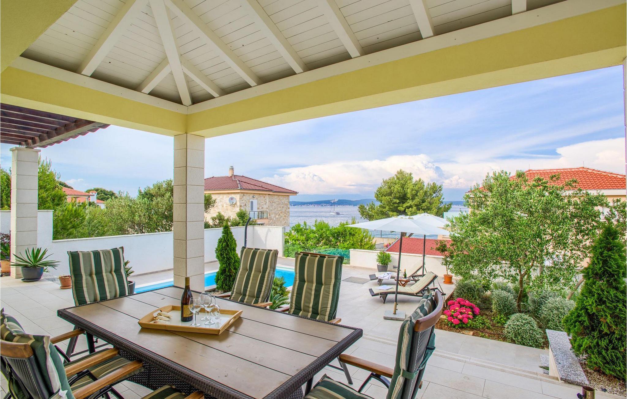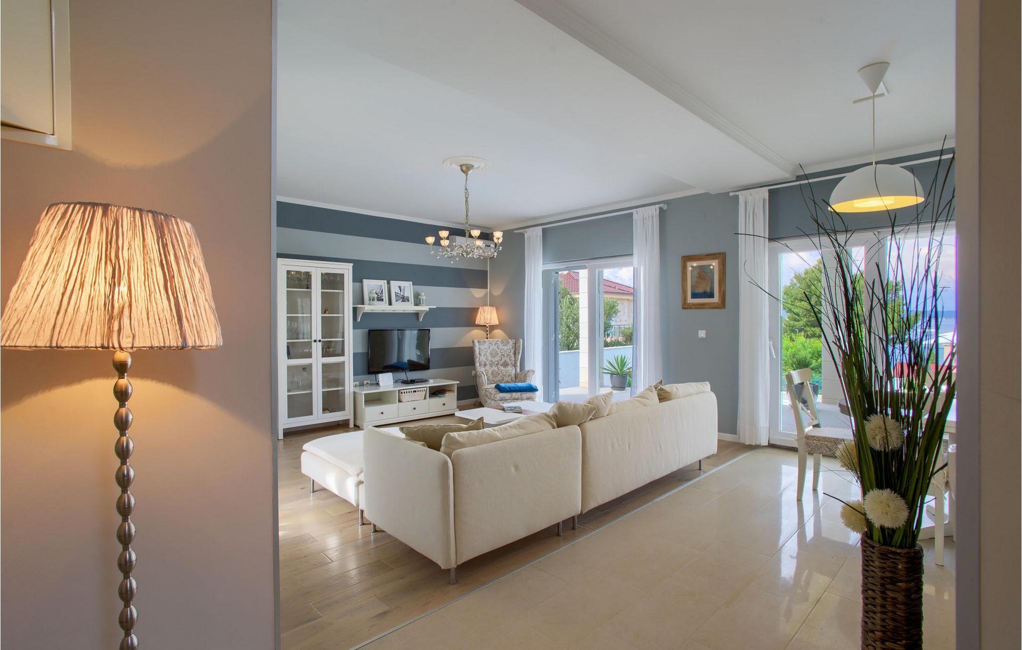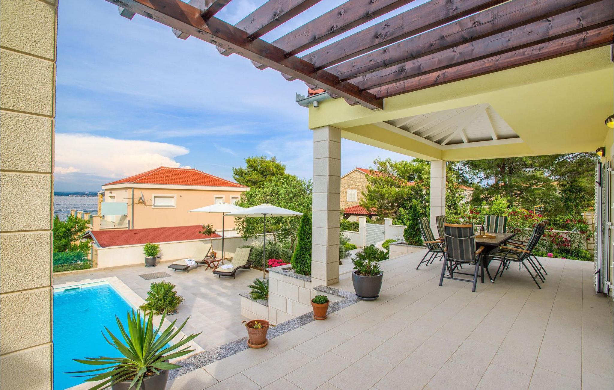 Die wunderschöne Villa Tatijana befindet sich auf der Insel Ugljan, in unmittelbarer Nähe zum Meer. Sie kann bis zu 8 Personen beherbergen und eignet sich ideal für Familien, Gruppen von Freunden oder Pärchen. Der Außenbereich bietet einen gepflegten Garten, der mit mediterranen Pflanzen geschmückt ist, einen privaten Pool mit Liegen und einem traumhaften Blick aufs Meer welchen Sie bestimmt genießen werden! Zur Verfügung steht Ihnen eine überdachte Terrasse und ein Grill - perfekt um leckere Spezialitäten vorzubereiten und den Sommerabend mit Ihren Liebsten zu verbringen. Das offen konzipierte Erdgeschoss besteht aus einer voll ausgestatteten Küche mit Essbereich und einem Wohnzimmer. Sobald Sie den Raum betreten, werden Sie die stilvolle Einrichtung mit schlichten Farben bemerken sowie den Kamin, der dem Raum eine gemütliche Atmosphäre verleiht. Weiters stehen Ihnen noch vier komfortable Schlafzimmer (eins im Erdgeschoss und drei auf der ersten Etage) und zwei Badezimmer zur Verfügung. Tischtennis und Darts sind vorhanden. Die voll klimatisierte Villa verfügt über Internetzugang, einen privaten Parkplatz für vier Autos und das Grundstück ist komplett umzäunt. Die Villa Tatijana ist die perfekte Wahl wenn Sie Ihren erholsamen Urlaub in Meernähe verbringen möchten. Hier werden Sie sich wie zu Hause fühlen!Die Villa befindet sich in Kukljica, einem kleinen Dorf auf der Insel Ugljan. Aus Zadar gibt es tägliche Fähreverbindungen zur Insel Ugljan bzw. zum Hafen im Dorf namens Preko. Zadar ist eine alte sehenswerte Stadt reich an Kulturerbe und historischen Attraktionen. Der berühmte Alfred Hitchcock sagte, in Zadar sei der schönste Sonnenuntergang- verpassen Sie ihn nicht! Die Altstadt bietet die Denkmäler aus der Antike, dem Mittelalter und der Renaissance. Heutzutage ist Zadar bekannt für die Meeresorgel und die Lichtinstallation "Pozdrav suncu" (Gruß an die Sonne).