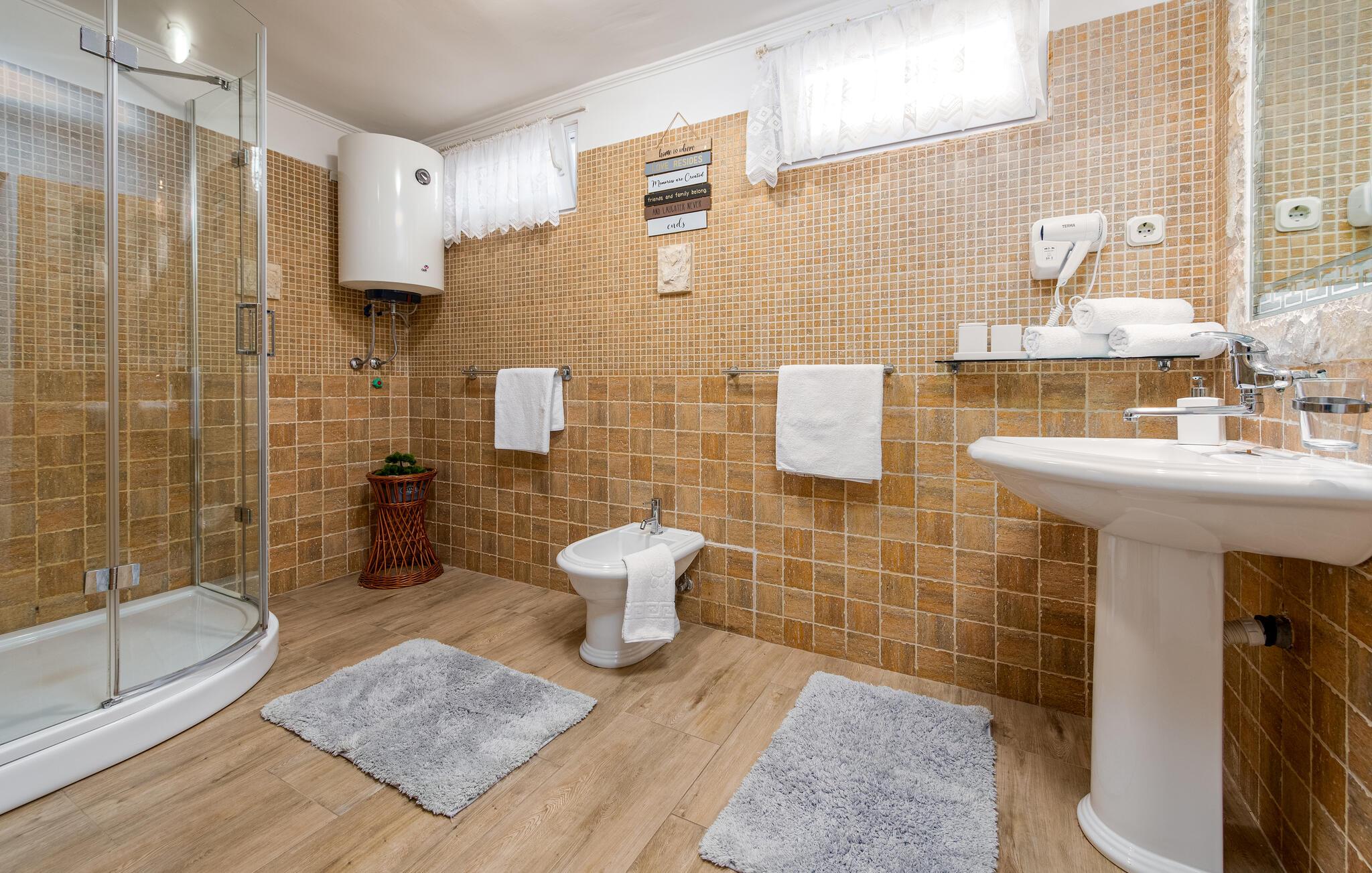 Badezimmer (nr. 1) - WC. Warmes und kaltes Wasser. Dusche