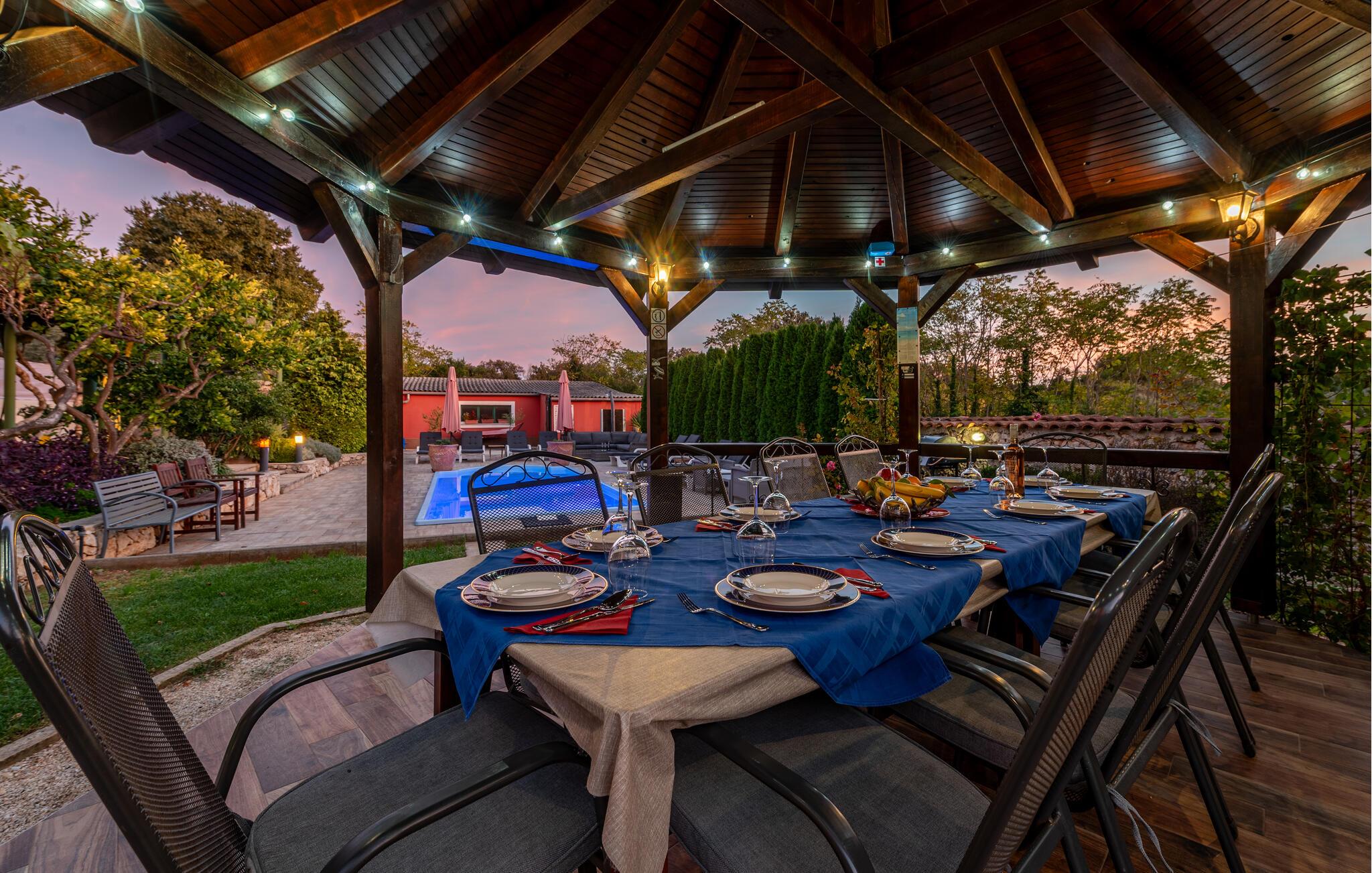 Im überdachten Teil des Hofes können Sie die ruhige Umgebung genießen oder leckere Köstlichkeiten auf dem Grill zubereiten. Erfrischen Sie sich an heißen Sommertagen im Pool und entspannen Sie anschließend auf den Sonnenliegen mit Ihrem Lieblingslesematerial.