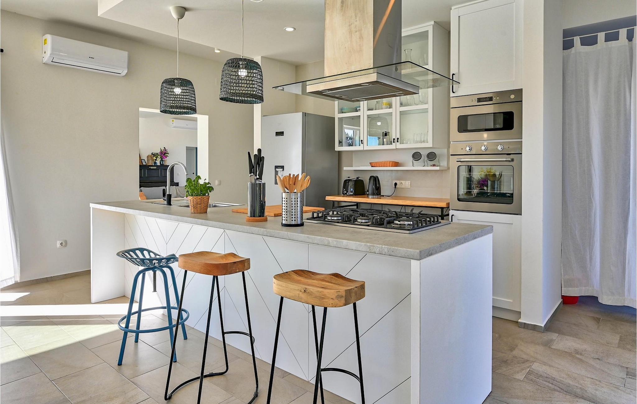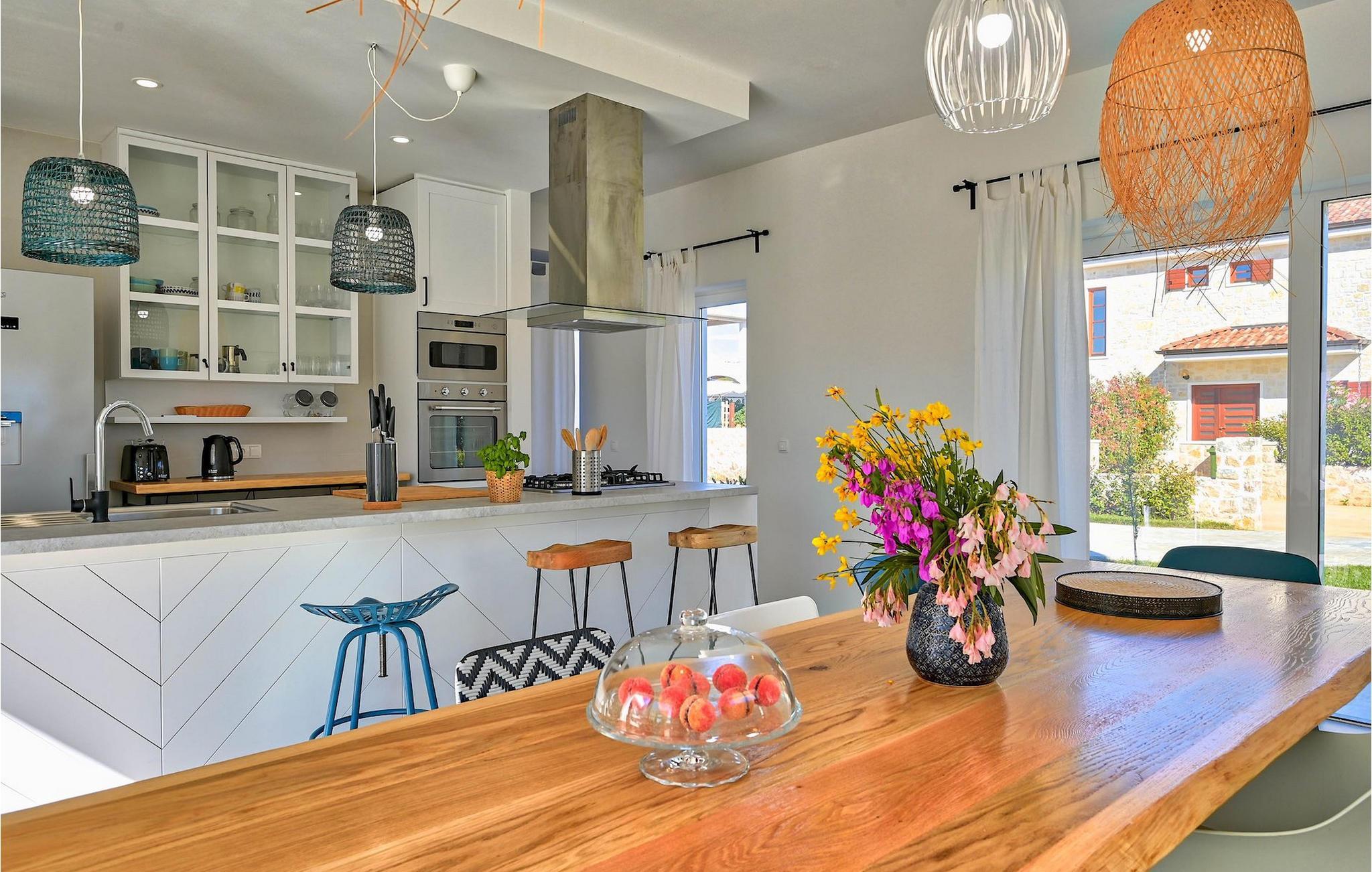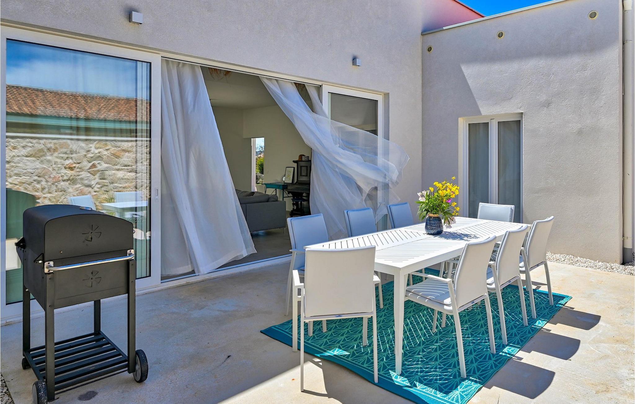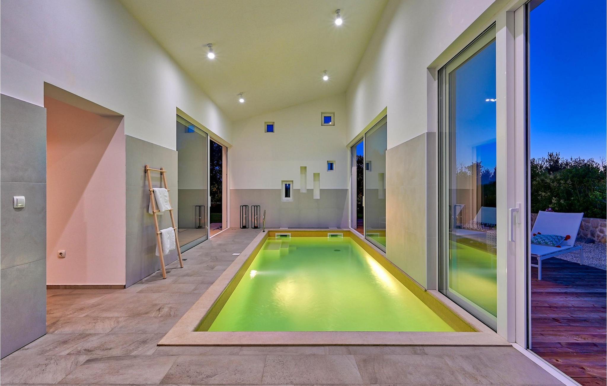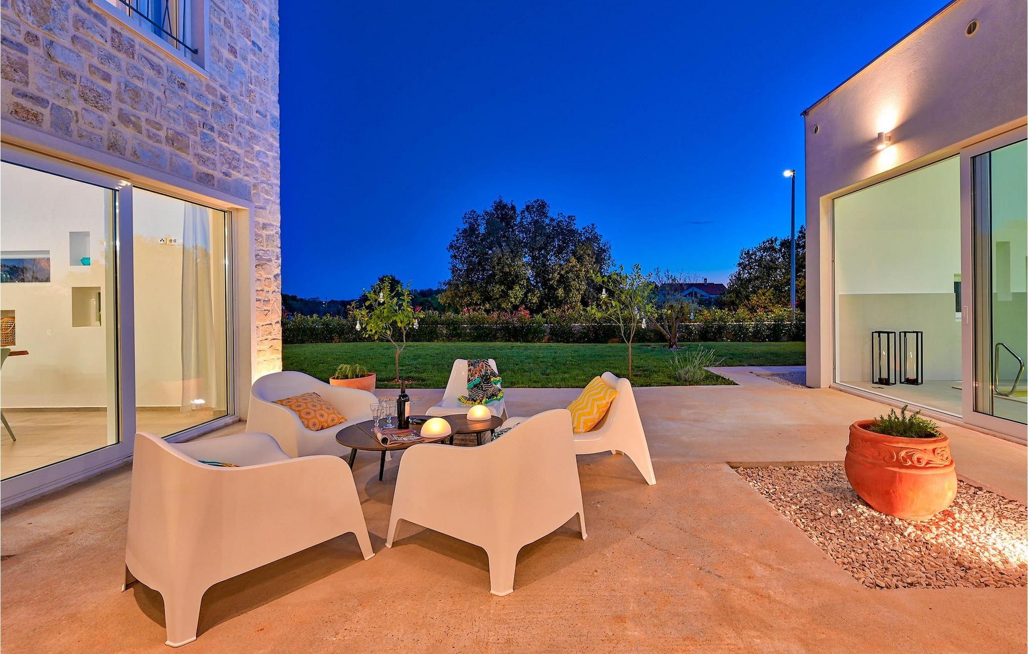 Die Villa Vela Muline ist eine wunderschöne Villa in idyllischer Lage in der Nähe des Meeres. Die Villa Vela Muline hat einen beheizten Innenpool mit großen Glasschiebetüren, sodass Sie auch bei schlechtem Wetter das Schwimmen genießen können. Die Villa ist ideal für einen erholsamen Familienurlaub für bis zu 10 Gäste. Die Villa verfügt über ein offenes Wohnzimmer mit einer voll ausgestatteten Küche und einem Esstisch für 10 Personen im Erdgeschoss. Das große Glasfenster erzeugen eine helle und luftige Atmosphäre. Das modern eingerichtete Wohnzimmer ist ein zentraler Bestandteil der Villa und führt im linken Flügel zum Wellnessbereich mit Innenpool. Zum rechten Flügel hin ist es mit der Küche mit Essbereich verbunden. Zwischen dem Wohnzimmer, der Küche auf der rechten Seite und dem Innenpool auf der linken Seite befindet sich eine schöne Ecke mit einer Lounge im Freien. Auf der linken Seite des Wellnessbereichs befindet sich eine Sonnenterrasse mit Liegestühlen, auf der Sie die Sonne tanken können. Im Erdgeschoss gibt es auch ein Schlafzimmer mit eigenem Bad und ein "Spielzimmer", das als multifunktionaler Raum dient und entweder in ein Kinderspielzimmer, ein Arbeitszimmer oder ein zusätzliches Schlafzimmer mit Schlafsofa umgewandelt werden kann. Im ersten Stock befinden sich 3 weitere Schlafzimmer mit eigenem Bad und eine große Terrasse, die einen schönen Blick auf das Meer und absolute Privatsphäre bietet. Die Villa ist teilweise von gepflegten Rasenflächen umgeben, die ideal für Kinderspiele oder Haustiere sind.Die Villa Vela Muline befindet sich im kleinen Dorf Muline auf der Insel Ugljan. Ugljan ist die nächstgelegene Insel zu Zadar, dem kulturellen und wirtschaftlichen Zentrum des Landkreises. Es ist mit Zadar mit vielen Fährlinien verbunden und kann innerhalb von 25 Minuten erreicht werden.