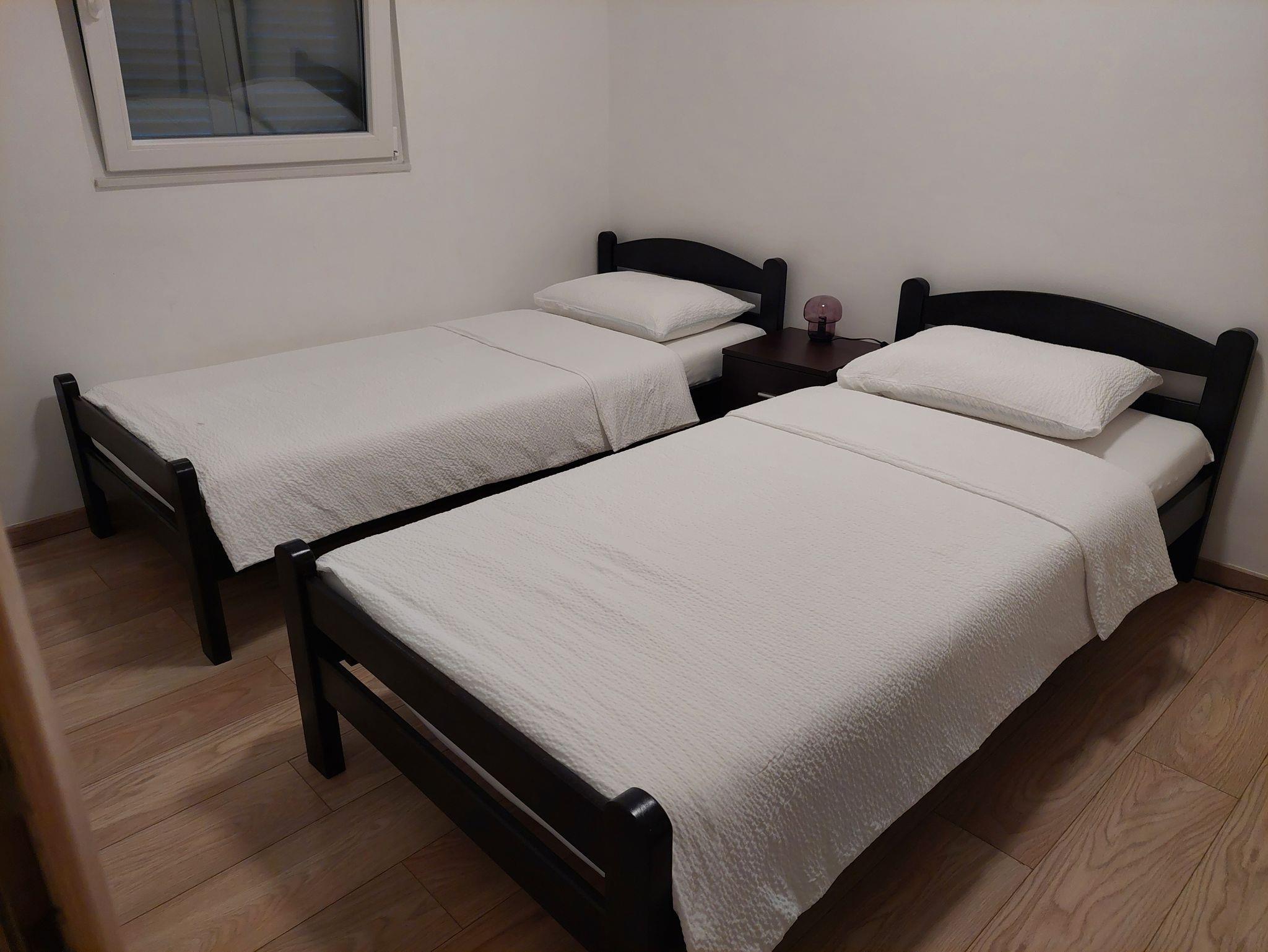 Ferienwohnung bietet Platz für 4 Gäste. Die Betten sind in Schlafzimmern, die es 2 gibt, innerhalb einer Gesamtfläche von 46m2, angeordnet. Die Gäste haben eine eigene Terrasse zur Verfügung, auf der sie in warmen Sommernächten genießen können. Es ist erlaubt, Speisen auf dem Gemeinschafts-Grill vorzubereiten. In der Unterkunftseinheit besteht die Möglichkeit des Mitbringens von Haustieren, und die Dienstleistung ist im Preis der Unterkunft enthalten. IM PREIS INBEGRIFFEN: Kurtaxe, Endreinigung, Klimatisierung, Parkplatz, Internet, Wäschewaschen, Haustiere, Kinderbett, Zusatzbett, Bügeleisen, Bügelbrett, Föhn, tragbarer Grill. VERBINDLICHE ZUSÄTZLICHE KOSTEN: Aufzahlung für Kurzaufenthalte (prozentualer Zuschlag pro Nächtigungsanzahl: 30% - 1, 20% - 2, 10% - 3). Die Verfügbarkeit zusätzlicher Dienstleistungen in Ihrem reservierten Termin und die Preise derselben (falls nicht aufgeführt) müssen im Voraus überprüft werden. Zusätzliche Dienstleistungen die in der Zahlungsaufforderung nicht aufgeführt sind werden direkt beim Vermieter bezahlt, angenommen der Gast nutzt auch diese.