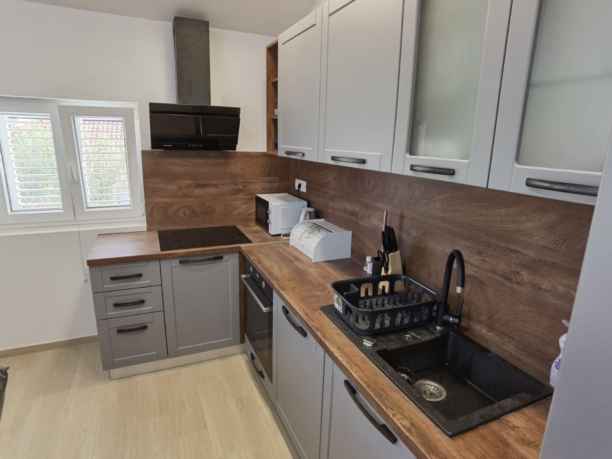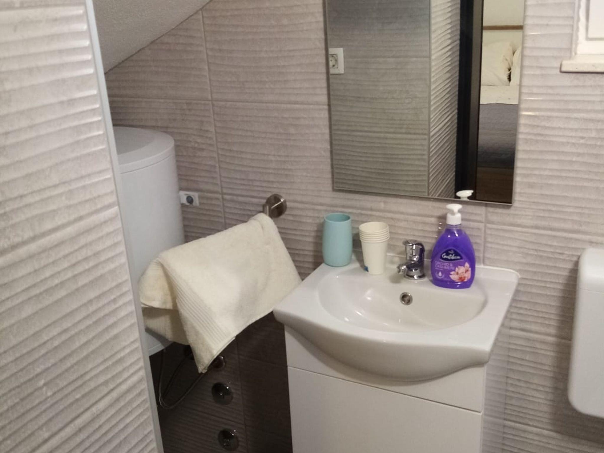 Ferienwohnung bietet Platz für 7 Gäste. Die Betten sind in Schlafzimmern, die es 3 gibt, innerhalb einer Gesamtfläche von 74m2, angeordnet. Die Gäste haben eine eigene Terrasse zur Verfügung, auf der sie in warmen Sommernächten genießen können. Das Apartment bietet Meerblick. Für vollen Genuss und Entspannung gibt es einen privaten Grill für Gäste dieser Unterkunft. Räume der gebuchten Unterkunftseinheit werden nicht in eine Ganze verbunden. IM PREIS INBEGRIFFEN: Kurtaxe, Endreinigung, Klimatisierung, Parkplatz, Internet, Kinderbett, Föhn, Liegestühle. Die Verfügbarkeit zusätzlicher Dienstleistungen in Ihrem reservierten Termin und die Preise derselben (falls nicht aufgeführt) müssen im Voraus überprüft werden. Zusätzliche Dienstleistungen die in der Zahlungsaufforderung nicht aufgeführt sind werden direkt beim Vermieter bezahlt, angenommen der Gast nutzt auch diese.
