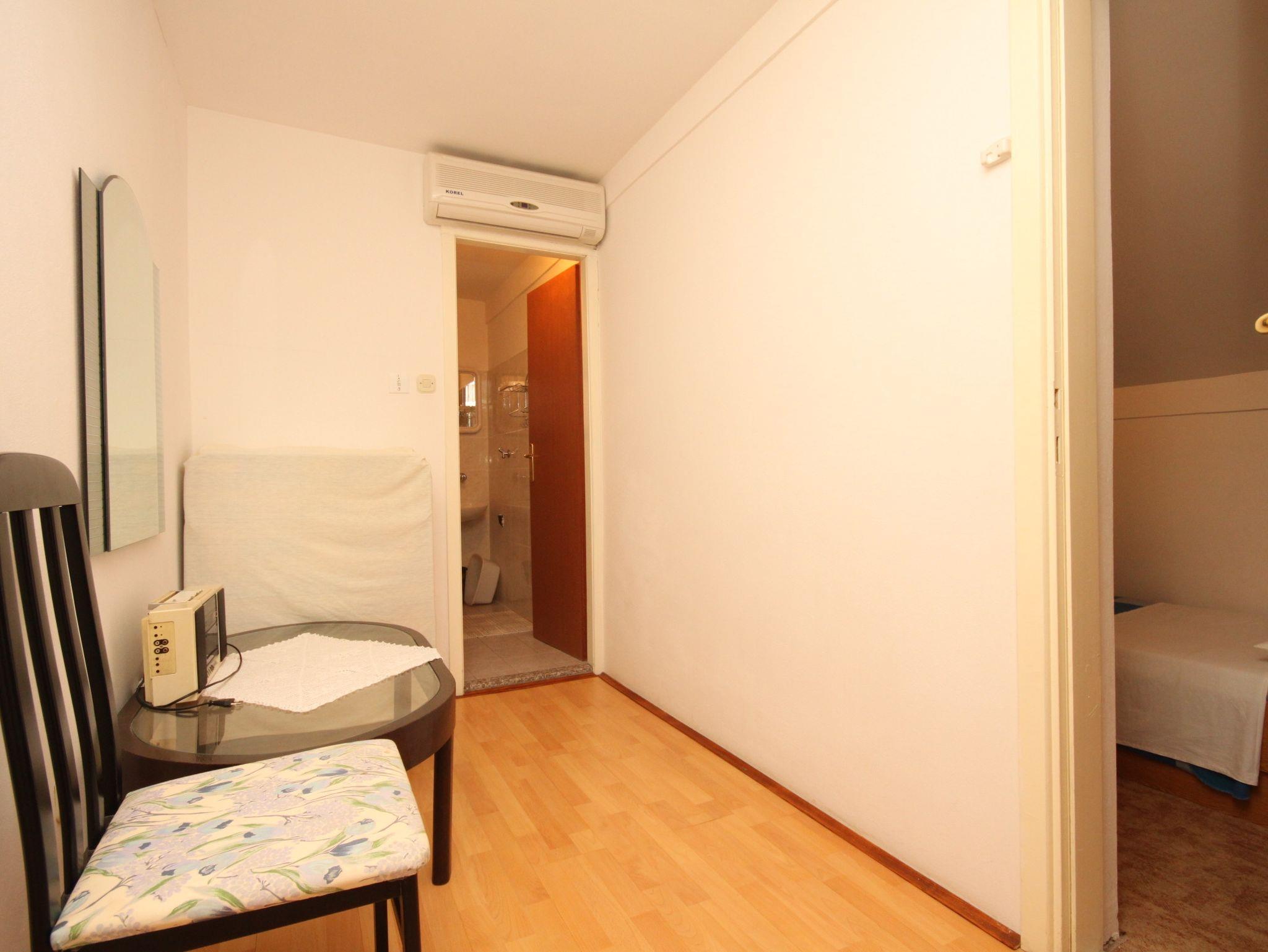 Zimmer bietet Platz für 4 Gäste. Die Betten sind in Schlafzimmern, die es 2 gibt, innerhalb einer Gesamtfläche von 34m2, angeordnet. Die Gäste haben eine eigene Terrasse zur Verfügung, auf der sie in warmen Sommernächten genießen können. Es ist erlaubt, Speisen auf dem Gemeinschafts-Grill vorzubereiten. Räume der gebuchten Unterkunftseinheit werden nicht in eine Ganze verbunden. Unterkunftseinheit hat Räume, die von dem Rest der Einheit abgetrennt werden. IM PREIS INBEGRIFFEN: Kurtaxe, Endreinigung, Parkplatz, Internet, Bügeleisen, Bügelbrett, Föhn. VERBINDLICHE ZUSÄTZLICHE KOSTEN: Aufzahlung für Kurzaufenthalte (prozentualer Zuschlag pro Nächtigungsanzahl: 30% - 1, 20% - 2, 10% - 3). UNVERBINDLICHE ZUSÄTZLICHE KOSTEN: Klimatisierung (6,00 € pro Nacht). Die Verfügbarkeit zusätzlicher Dienstleistungen in Ihrem reservierten Termin und die Preise derselben (falls nicht aufgeführt) müssen im Voraus überprüft werden. Zusätzliche Dienstleistungen die in der Zahlungsaufforderung nicht aufgeführt sind werden direkt beim Vermieter bezahlt, angenommen der Gast nutzt auch diese. Ermäßigung auf den Grundpreis: Gratistag 14=13 (bei einem Aufenthalt von 14 Tagen oder mehr erhalten Sie einen Gratistag für den Aufenthalt bis 31.12.26).