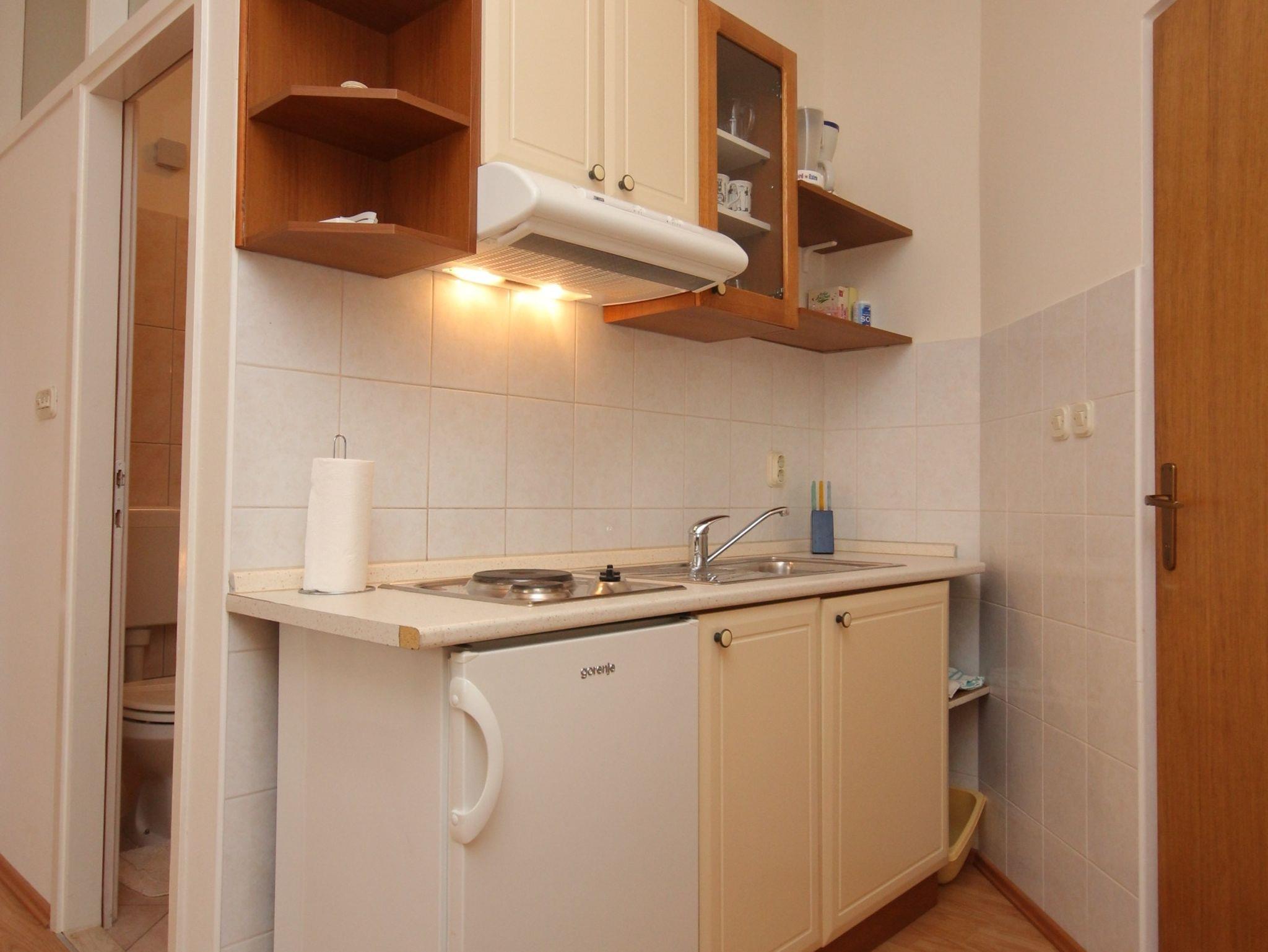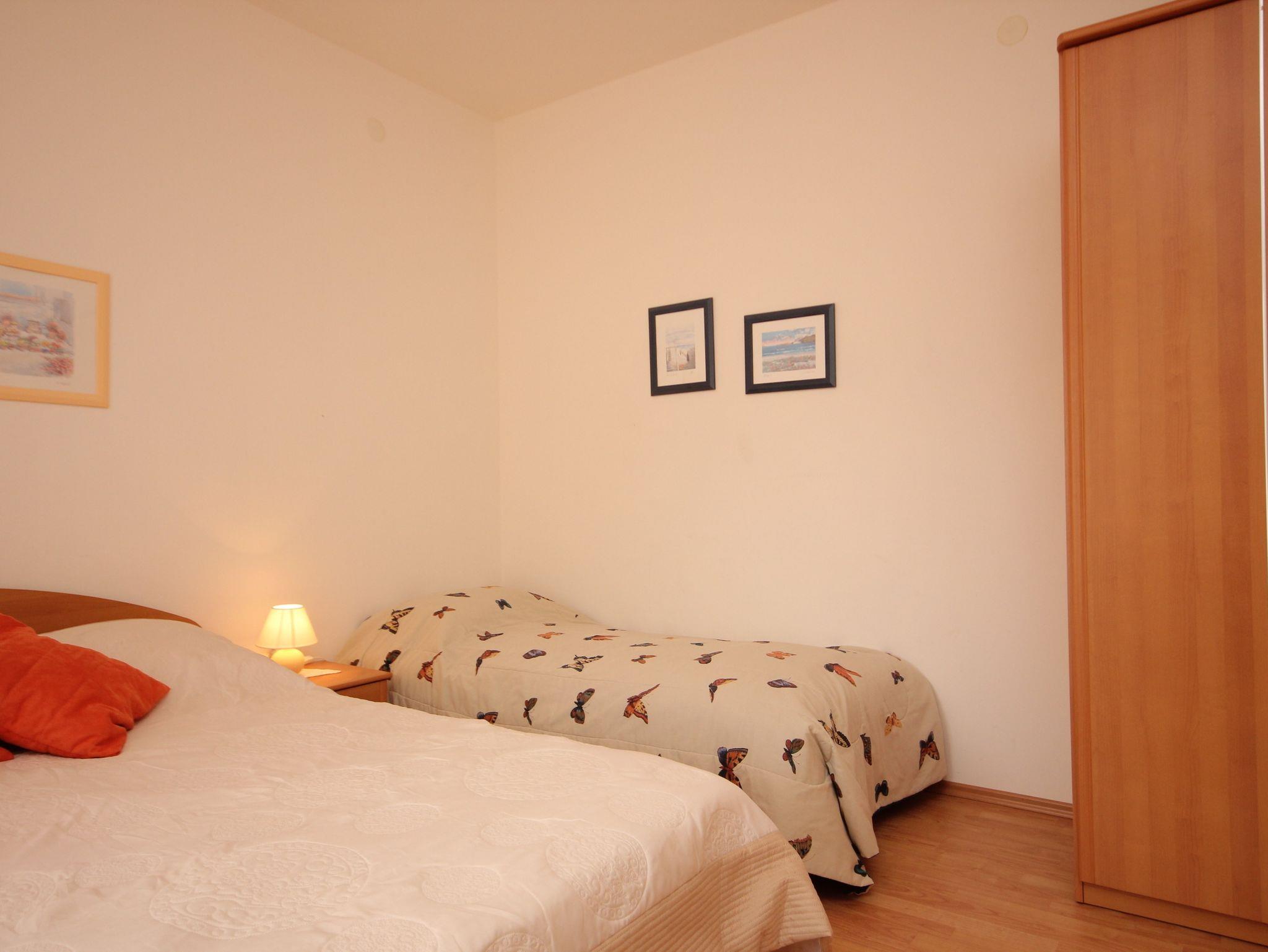 Ferienwohnung bietet Platz für 3 Gäste. Die Betten sind in Schlafzimmern, die es 1 gibt, und in Wohnzimmer, innerhalb einer Gesamtfläche von 30m2, angeordnet. Die Gäste haben eine eigene Terrasse zur Verfügung, auf der sie in warmen Sommernächten genießen können. Es ist erlaubt, Speisen auf dem Gemeinschafts-Grill vorzubereiten. IM PREIS INBEGRIFFEN: Kurtaxe, Endreinigung, Klimatisierung, Parkplatz, Internet, Kinderbett. VERBINDLICHE ZUSÄTZLICHE KOSTEN: Aufzahlung für Kurzaufenthalte (prozentualer Zuschlag pro Nächtigungsanzahl: 30% - 1, 20% - 2, 10% - 3). Die Verfügbarkeit zusätzlicher Dienstleistungen in Ihrem reservierten Termin und die Preise derselben (falls nicht aufgeführt) müssen im Voraus überprüft werden. Zusätzliche Dienstleistungen die in der Zahlungsaufforderung nicht aufgeführt sind werden direkt beim Vermieter bezahlt, angenommen der Gast nutzt auch diese.