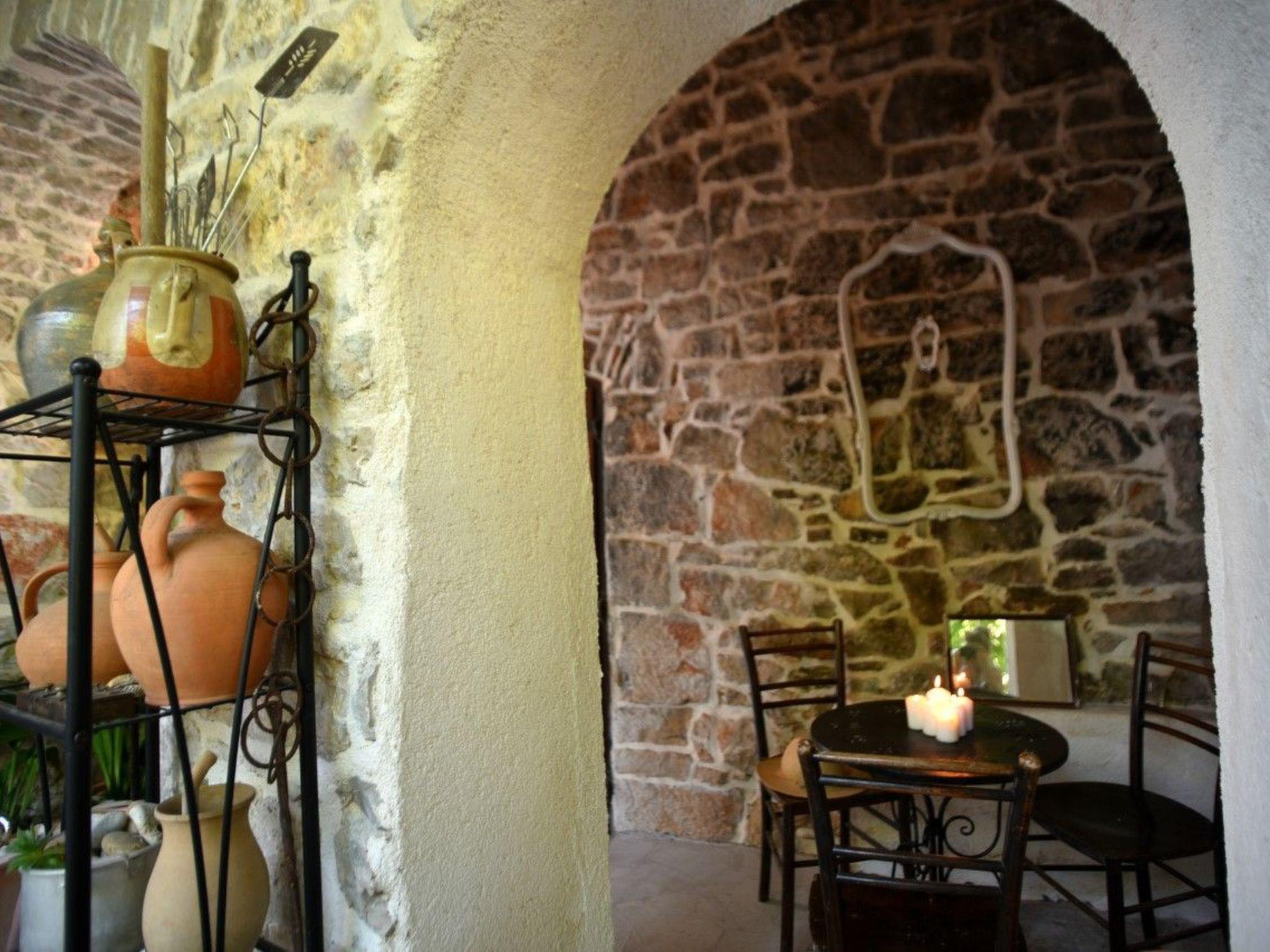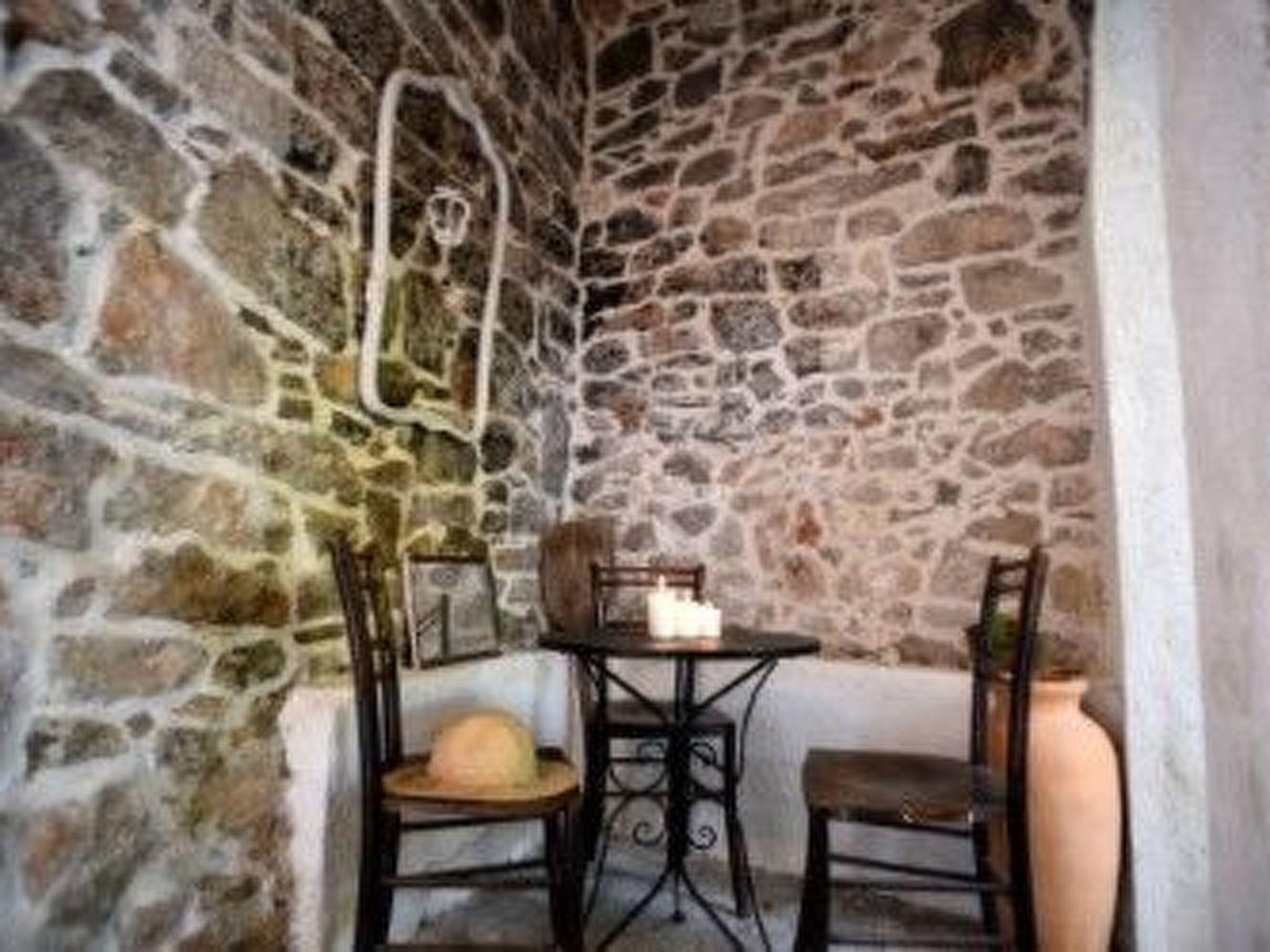 Das Haus hat eine Wohnfläche von 70 m² und kann fünf Personen beherbergen. Es besteht aus einer geräumigen Wohnküche mit Sitzecke, Essbereich und Küche, zwei Schlafzimmern und einem Badezimmer. Die Küche ist voll ausgestattet mit allen modernen Geräten. Das Badezimmer verfügt über eine Dusche, ein WC und eine Waschmaschine. Die beiden Schlafzimmer haben zwei Doppelbetten (160 x 200cm und 140 x 200cm) und ein Einzelbett (120 x 200cm). Die Wohnküche und eines der Schlafzimmer sind klimatisiert. Es besteht auch die Möglichkeit eines Internetanschlusses.