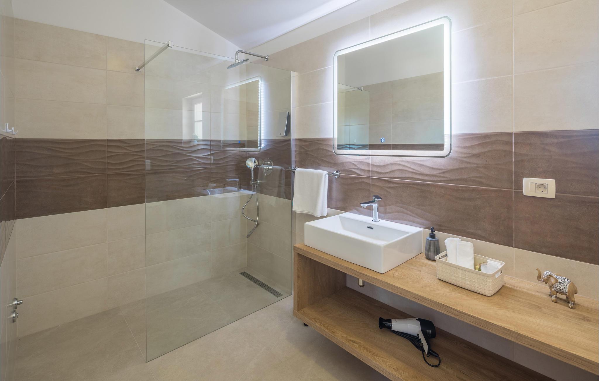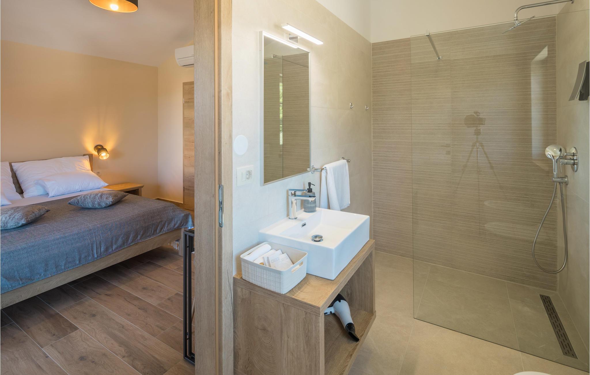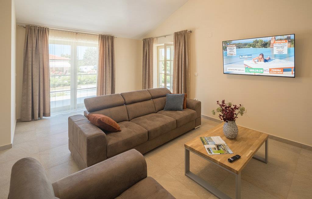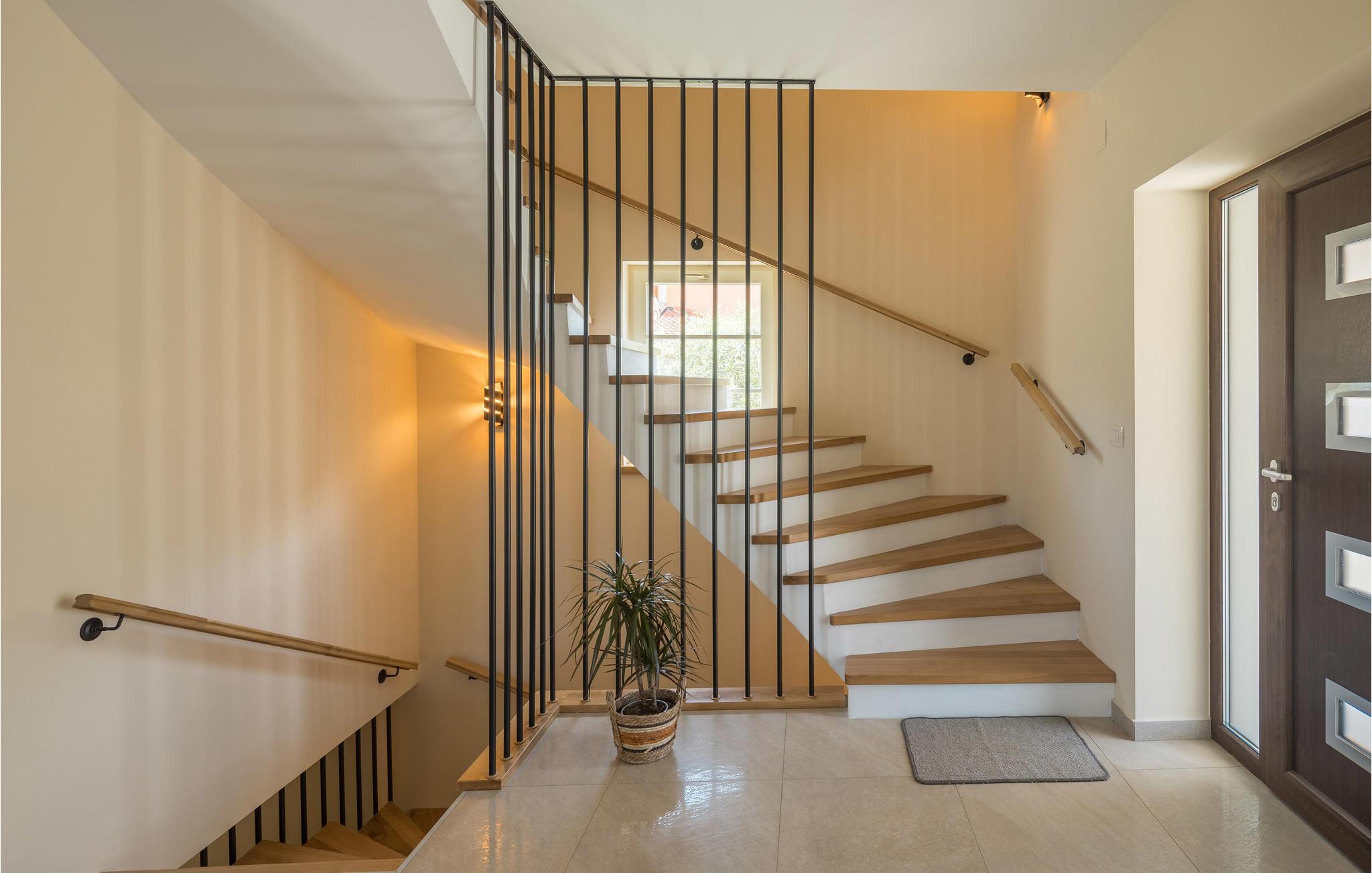 Diese schöne Unterkunft ist nicht nur optisch ansprechend, sondern begeistert auch durch Qualität und Funktionalität. Es liegt im Inneren von Istrien, aber nur 2,5 km vom Meer entfernt, umgeben von einem sorgfältig angelegten Garten. Das Grundstück ist mit seinen 1000 m2 sehr geräumig und bietet Ihnen viel Ruhe und Privatsphäre. Im Erdgeschoss können Sie sich wunderbar vergnügen. Egal ob Entspannung in der Sauna oder vor dem Fernseher. Hier kommen Sie voll auf Ihre Kosten. Auch ein Aktivitätsraum mit Spielen, Billardtisch und einer Waschküche steht Ihnen zur Verfügung.