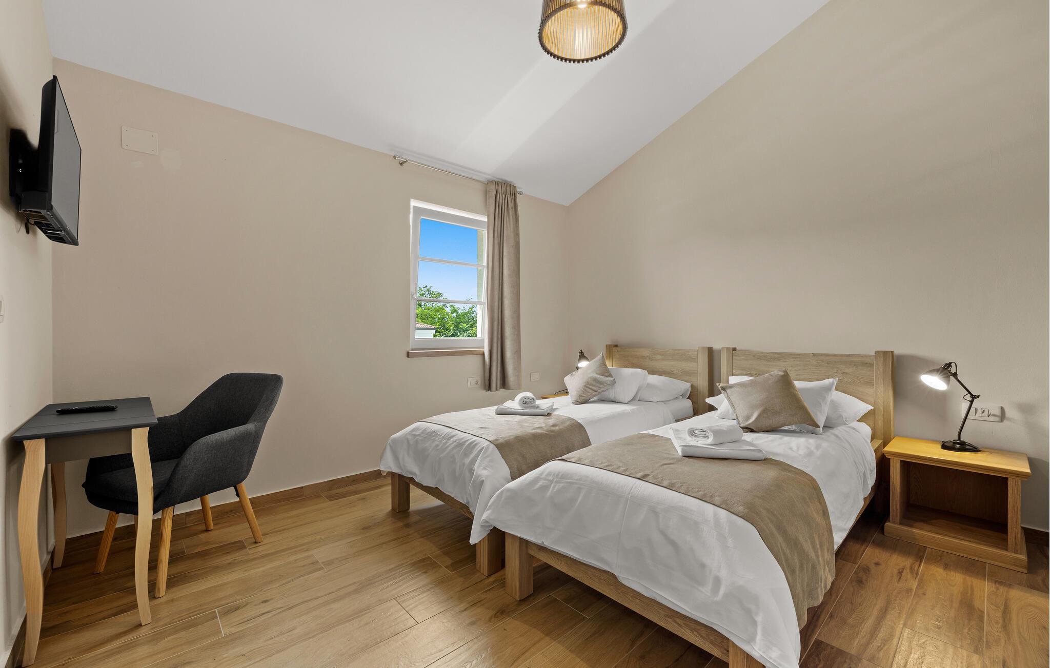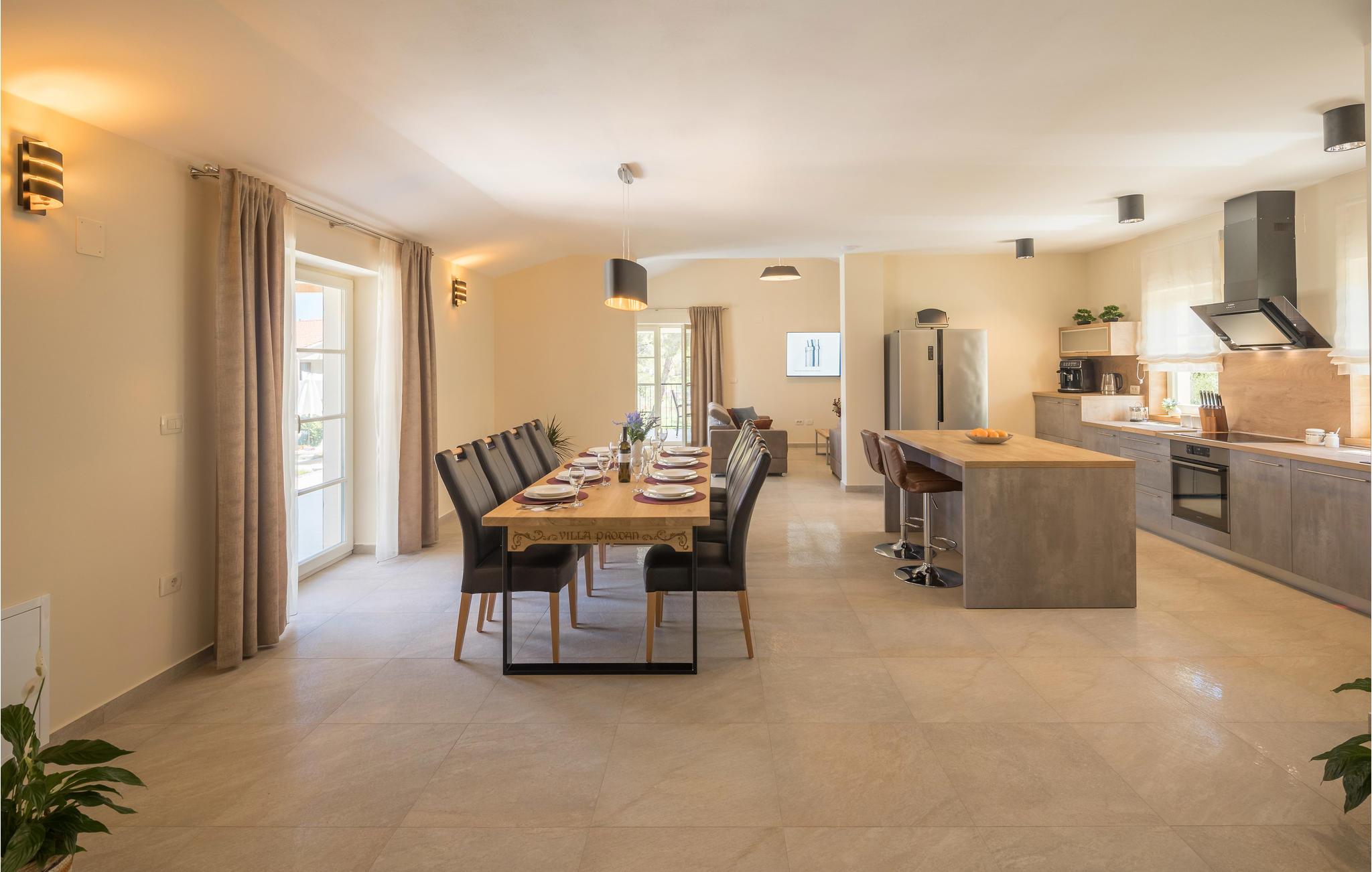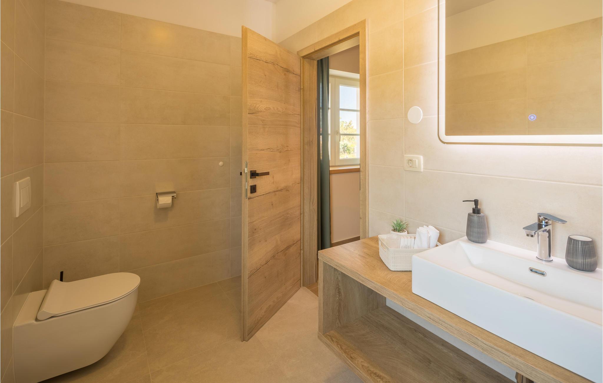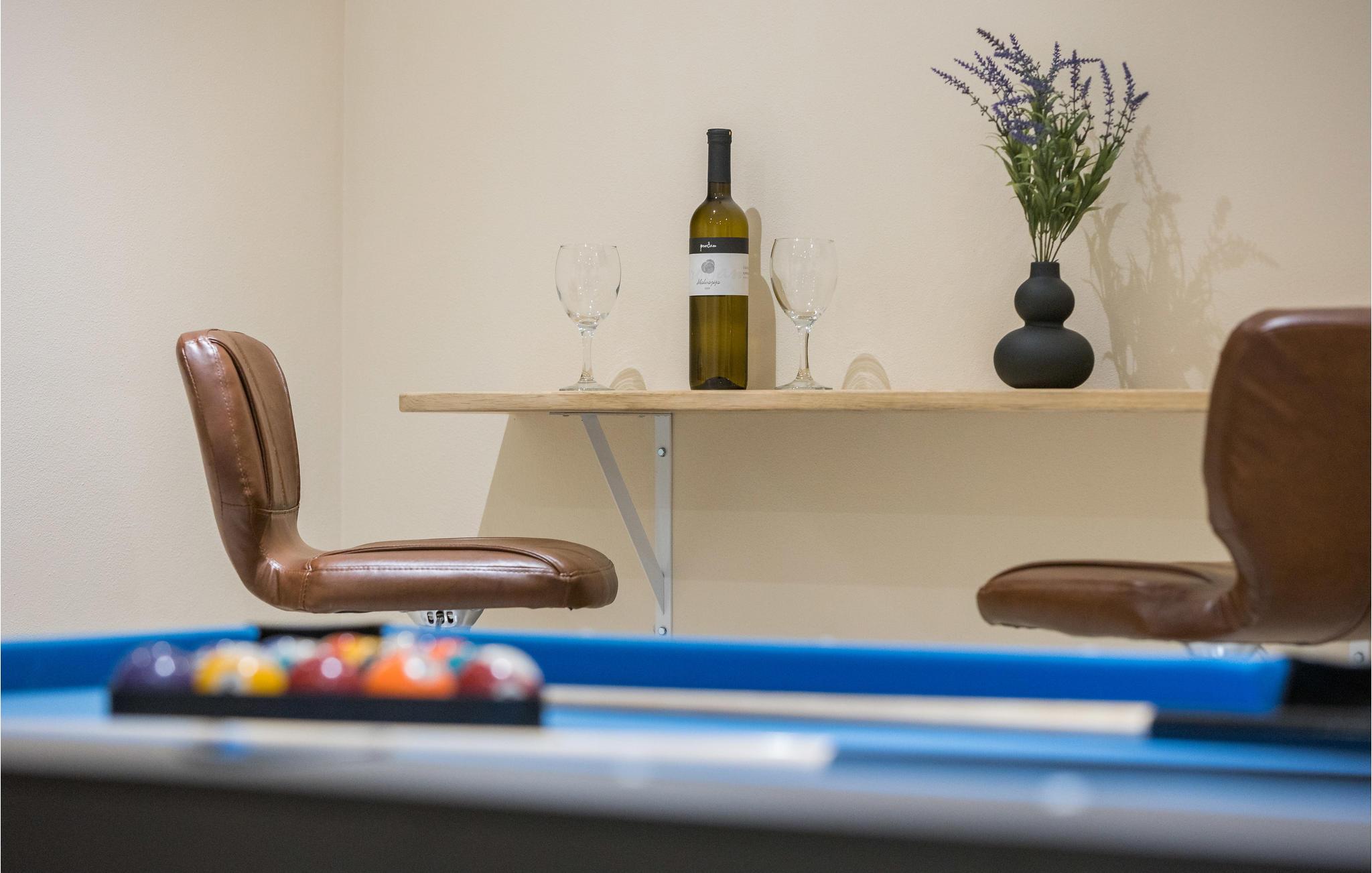 Diese schöne Unterkunft ist nicht nur optisch ansprechend, sondern begeistert auch durch Qualität und Funktionalität. Es liegt im Inneren von Istrien, aber nur 2,5 km vom Meer entfernt, umgeben von einem sorgfältig angelegten Garten. Das Grundstück ist mit seinen 1000 m2 sehr geräumig und bietet Ihnen viel Ruhe und Privatsphäre. Im Erdgeschoss können Sie sich wunderbar vergnügen. Egal ob Entspannung in der Sauna oder vor dem Fernseher. Hier kommen Sie voll auf Ihre Kosten. Auch ein Aktivitätsraum mit Spielen, Billardtisch und einer Waschküche steht Ihnen zur Verfügung.
