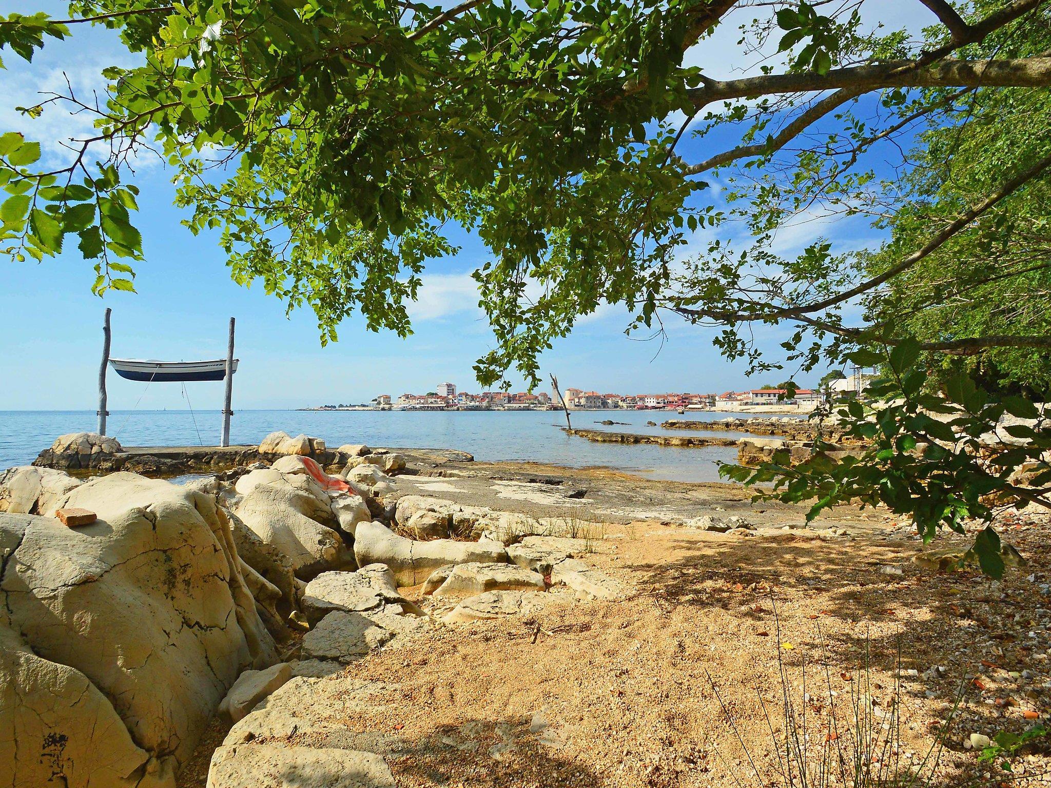 Kleines Einfamilienhaus "Aron". 400 m vom Zentrum von Umag, sonnige Lage, 50 m vom Meer, 200 m vom Strand, in einer Sackgasse. Zur Alleinbenutzung: Grundstück 200 m2, Garten Bäumen, Naturgarten. Pergola (10 m2). Im Hause: Internetzugang. Öffentliche Parkplätze. Einkaufsgeschäft, Restaurant 300 m, Bushaltestelle 1.3 km, Bahnstation 33 km, Sandstrand 300 m, Felsstrand, betonierter Strand 200 m. Golfplatz (18 Loch) 9 km, Tennis 1.5 km, Wanderwege ab Haus 200 m, Radweg 250 m, Kinderspielplatz 200 m. Der Zugang zum Nachbarhaus über das Gelände des Hauses.
