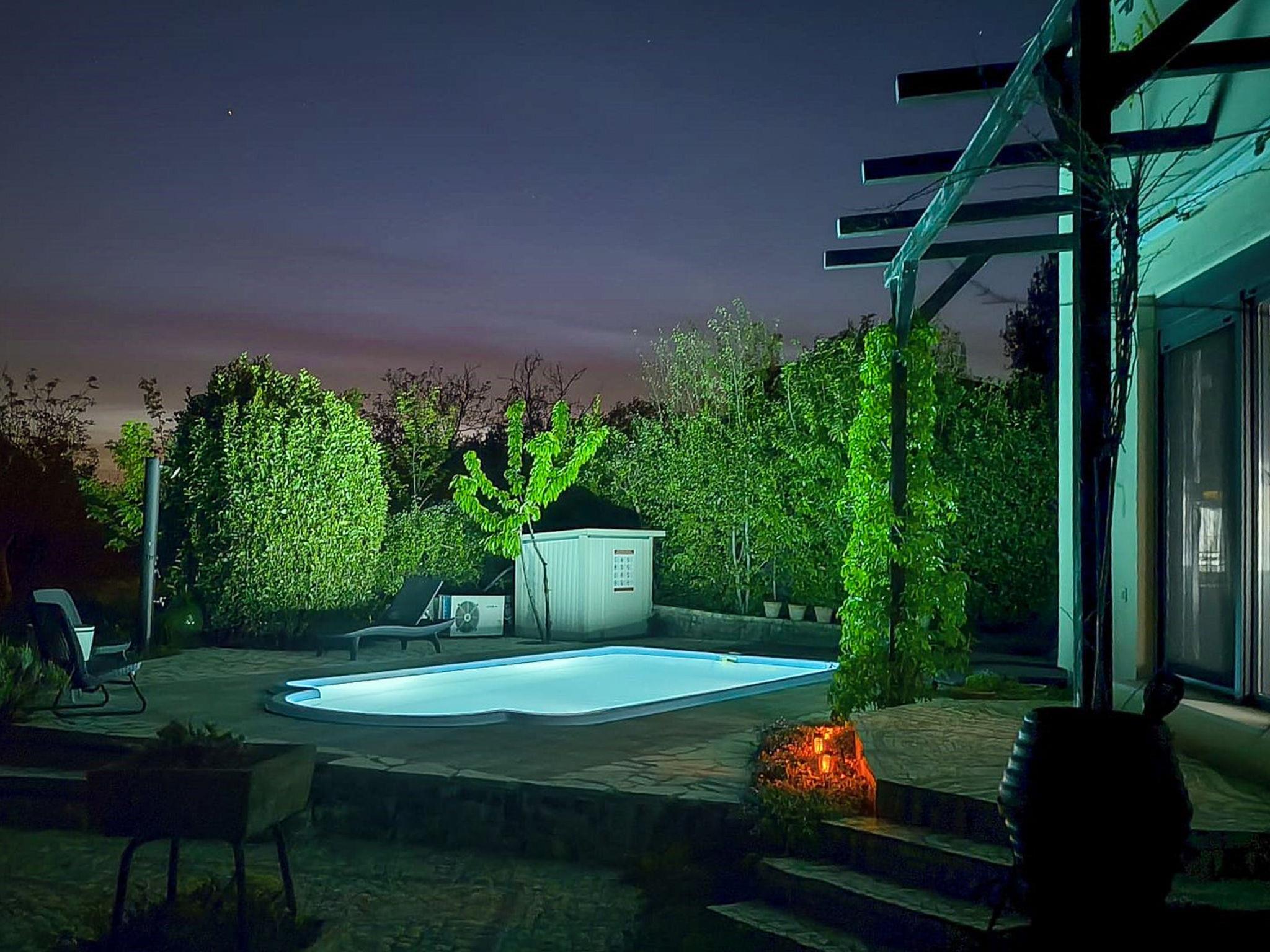 4-Zimmer-Haus 180 m2. Geschmackvoll eingerichtet: Wohn-/Esszimmer mit Sat-TV. Ausgang zum Garten, zur Terrasse, zum Schwimmbad. 1 Zimmer mit 1 franz. Bett (180 cm, Länge 200 cm), Sat-TV und Klimaanlage. Ausgang zum Garten. 1 Zimmer mit 1 franz. Bett (160 cm, Länge 200 cm), Dusche/WC, Sat-TV und Klimaanlage. Offene Küche (4 Kochplatten, Backofen, Geschirrspüler, Toaster, Wasserkocher, Mikrowelle, Tiefkühler, elektrische Kaffeemaschine). Dusche/WC, Dusche/Bidet/WC. Obergeschoss: Galerie mit Klimaanlage. Ausgang zum Balkon. 1 Zimmer mit 1 franz. Bett (160 cm, Länge 200 cm), Sat-TV und Klimaanlage. Kleiner Balkon 8 m2, Terrasse 30 m2. Terrassenmöbel. Panoramasicht auf die Landschaft. Zur Verfügung: Waschmaschine, Safe, Haartrockner. Internet (WLAN, gratis). Bitte beachten: Nichtraucher-Haus. Maximal 2 Haustiere/Hunde erlaubt.