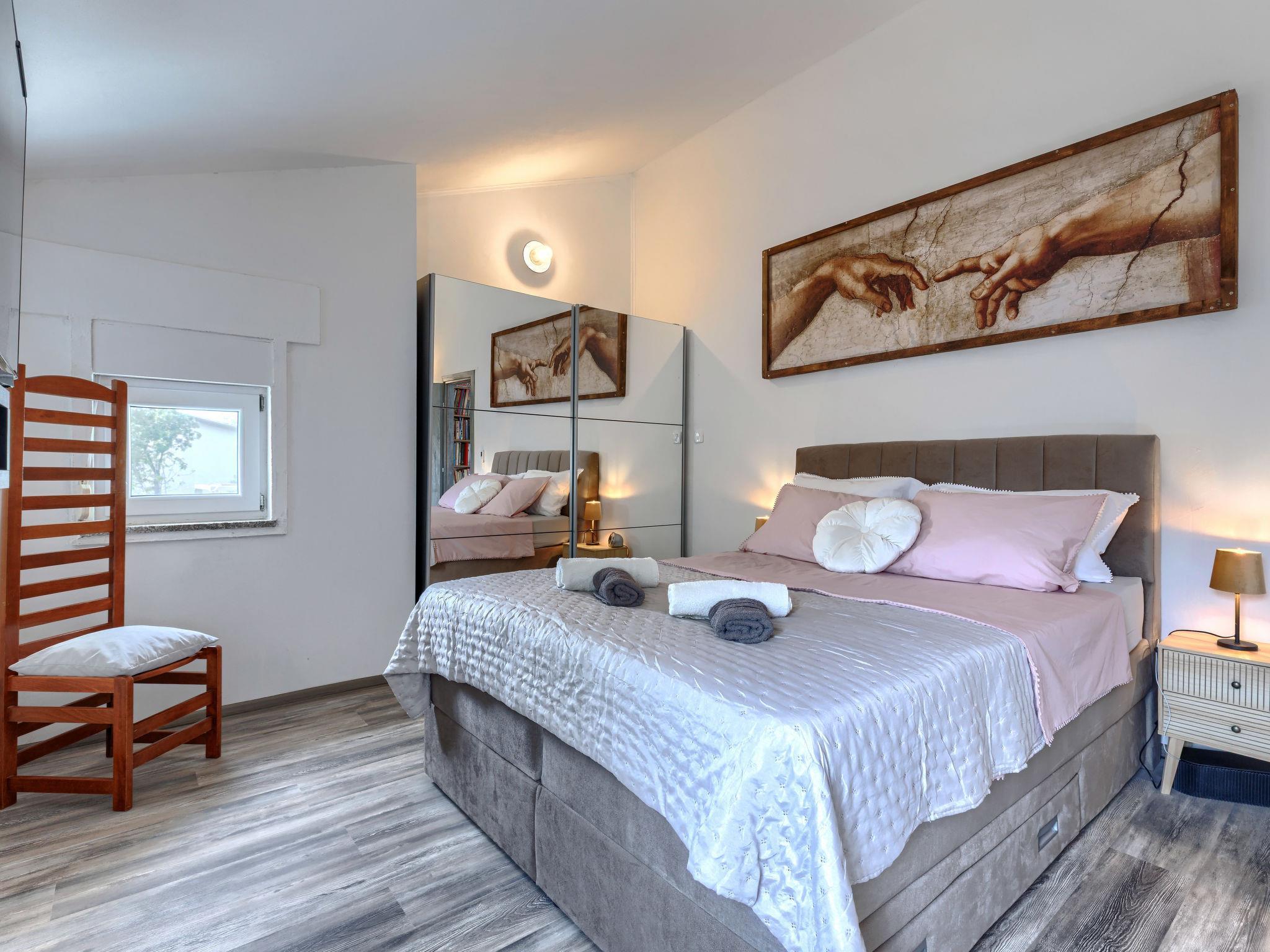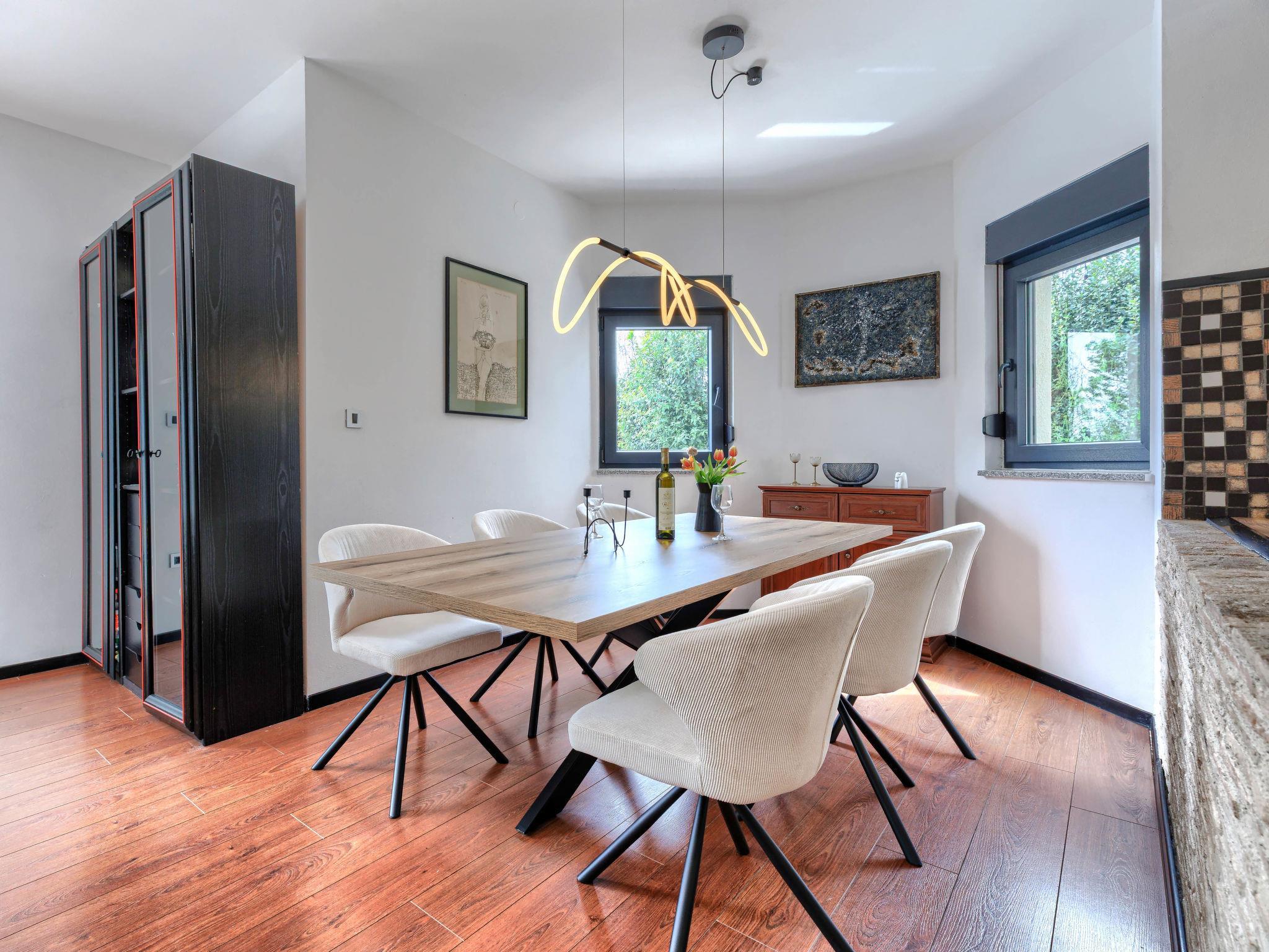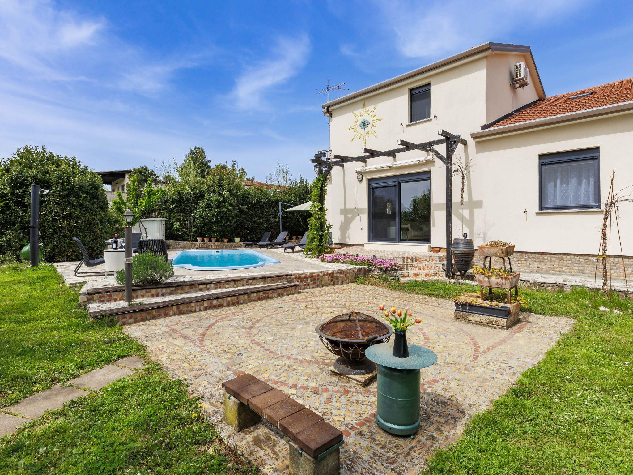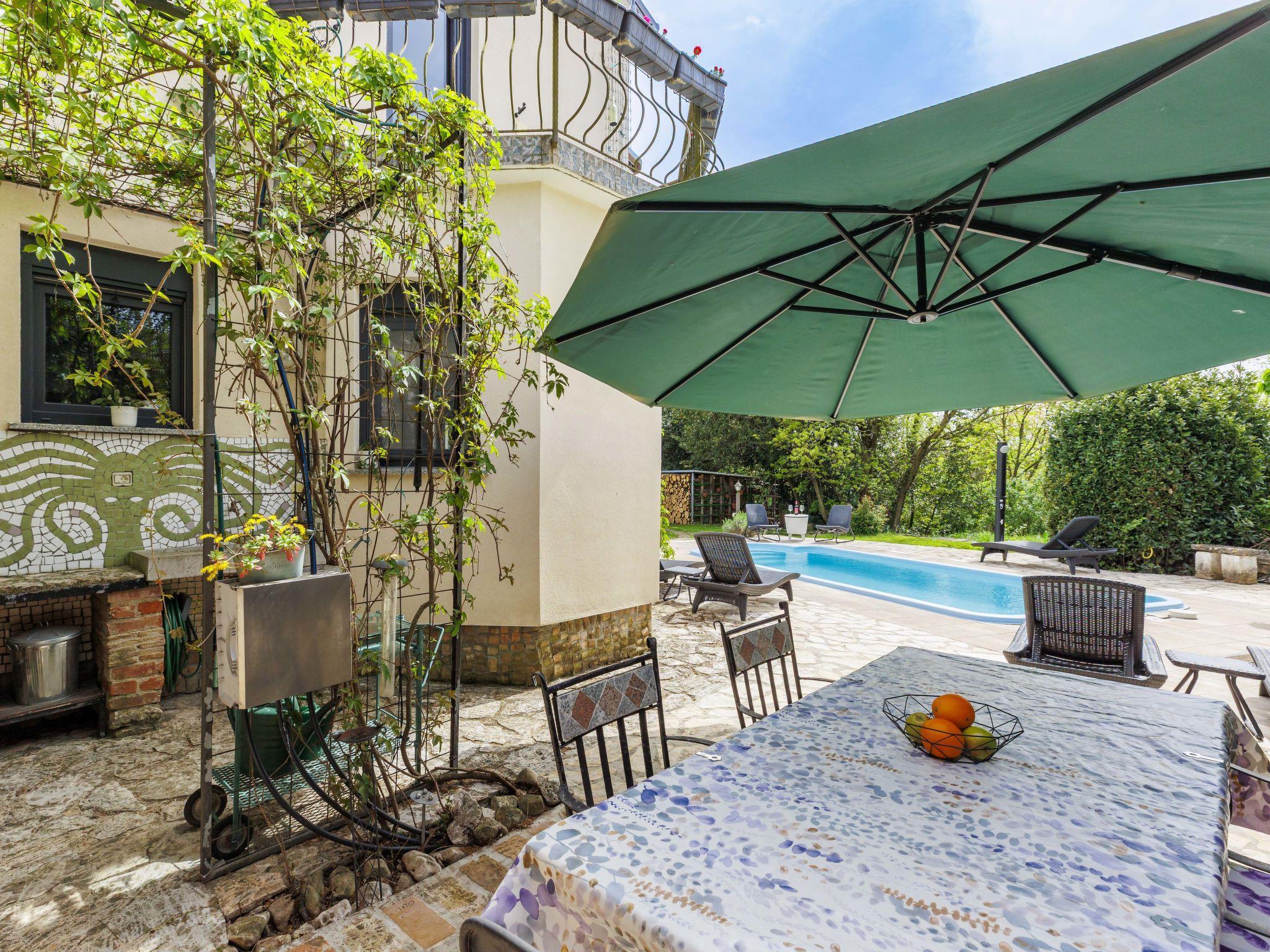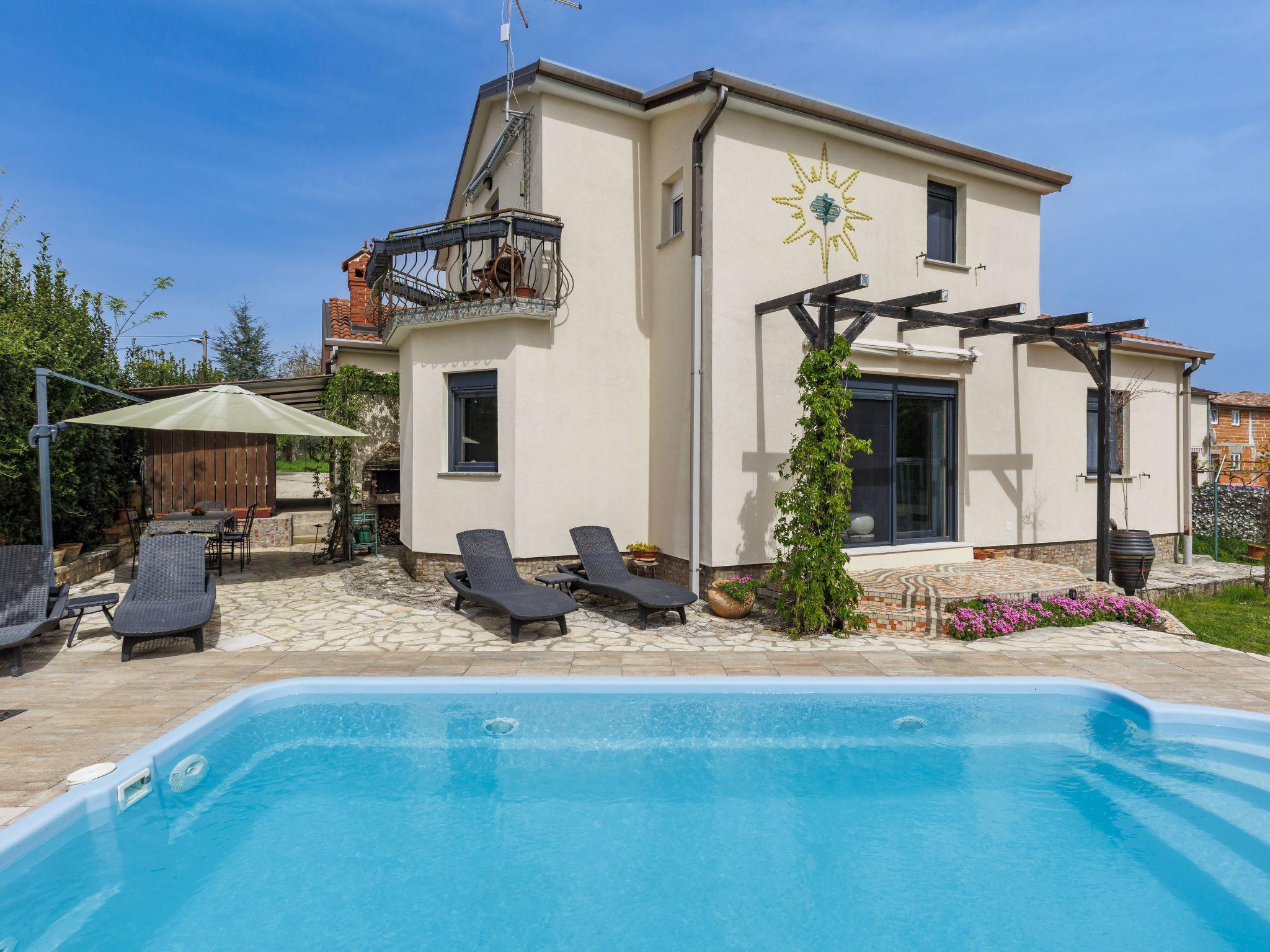 Schönes Haus "Acquila", auf 2 Stockwerken im Jahre 2025, umgeben von Bäumen. Im Weiler Lokvini, 4.5 km vom Zentrum von Umag, ruhige Lage, 4.5 km vom Meer, 4.5 km vom Strand. Zur Alleinbenutzung: Grundstück 600 m2, Garten, Schwimmbad (24 m2, 155 cm tief, saisonale Verfügbarkeit: 01.Mai. - 15.Okt.) mit Innentreppe. Aussendusche, Sprudelbad, Terrasse (30 m2), Gartenmöbel, Grill, Poolpflege durch den Besitzer/Gärtner. Im Hause: Internetzugang. Parkplatz (für 2 Autos) beim Haus auf dem Grundstück. Einkaufsgeschäft 4 km, Supermarkt 4 km, Restaurant 1 km, Bushaltestelle 4.5 km, Bahnstation 27 km, Kieselstrand 4.5 km. Golfplatz (18 Loch) 9.5 km, Tennis 4.5 km, Radweg 50 m. Nahe gelegene Sehenswürdigkeiten: Aquapark 15 km. Der Besitzer akzeptiert keine Gruppen. Der Besitzer akzeptiert keine Jugendgruppen.
