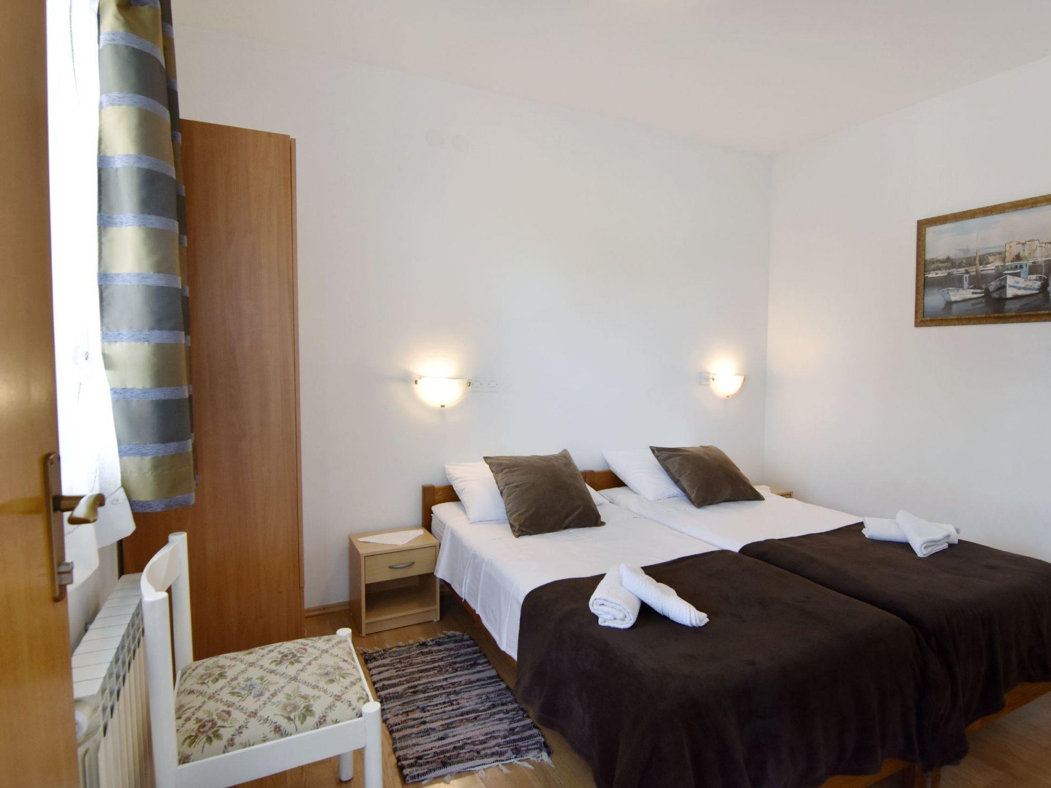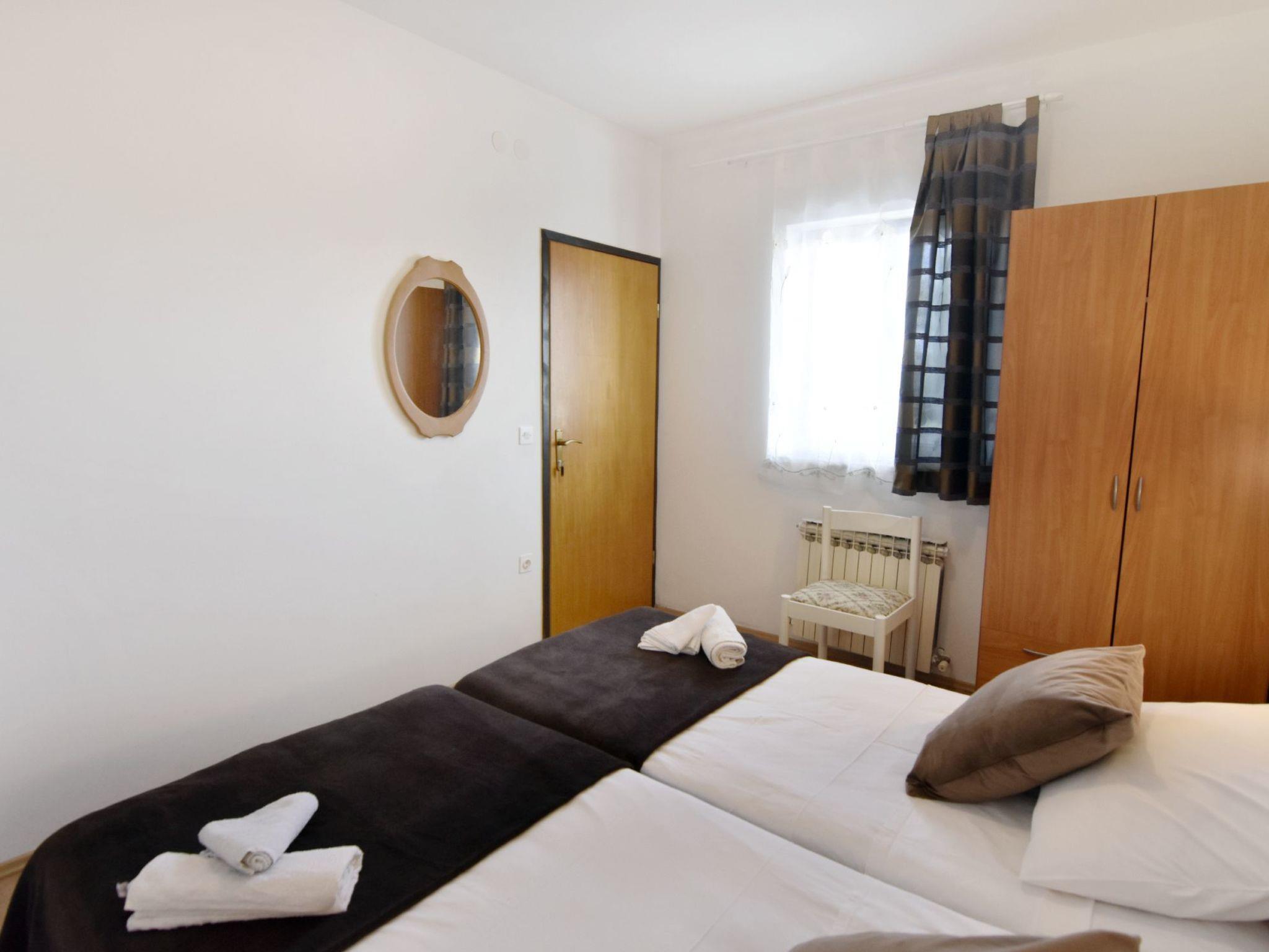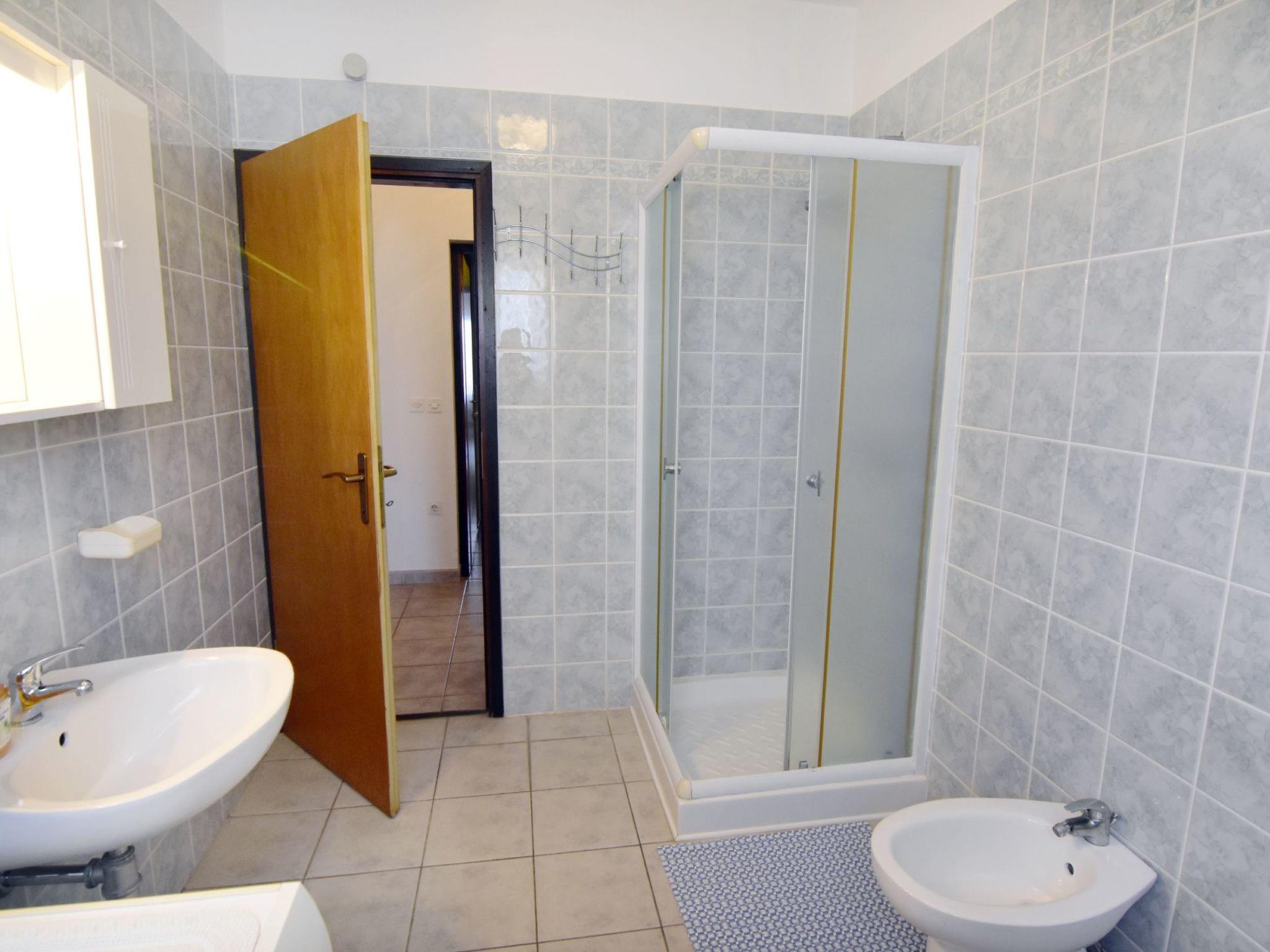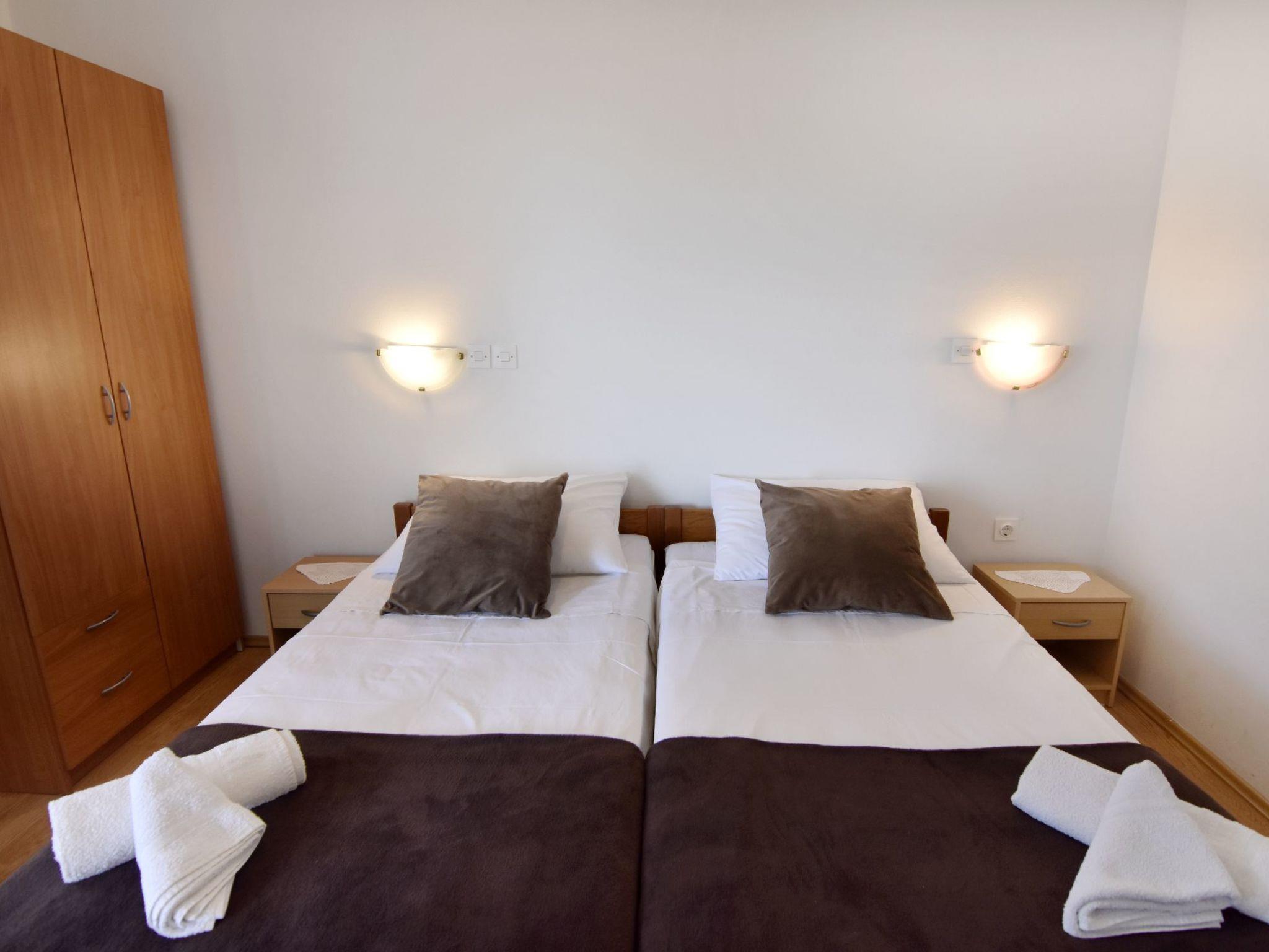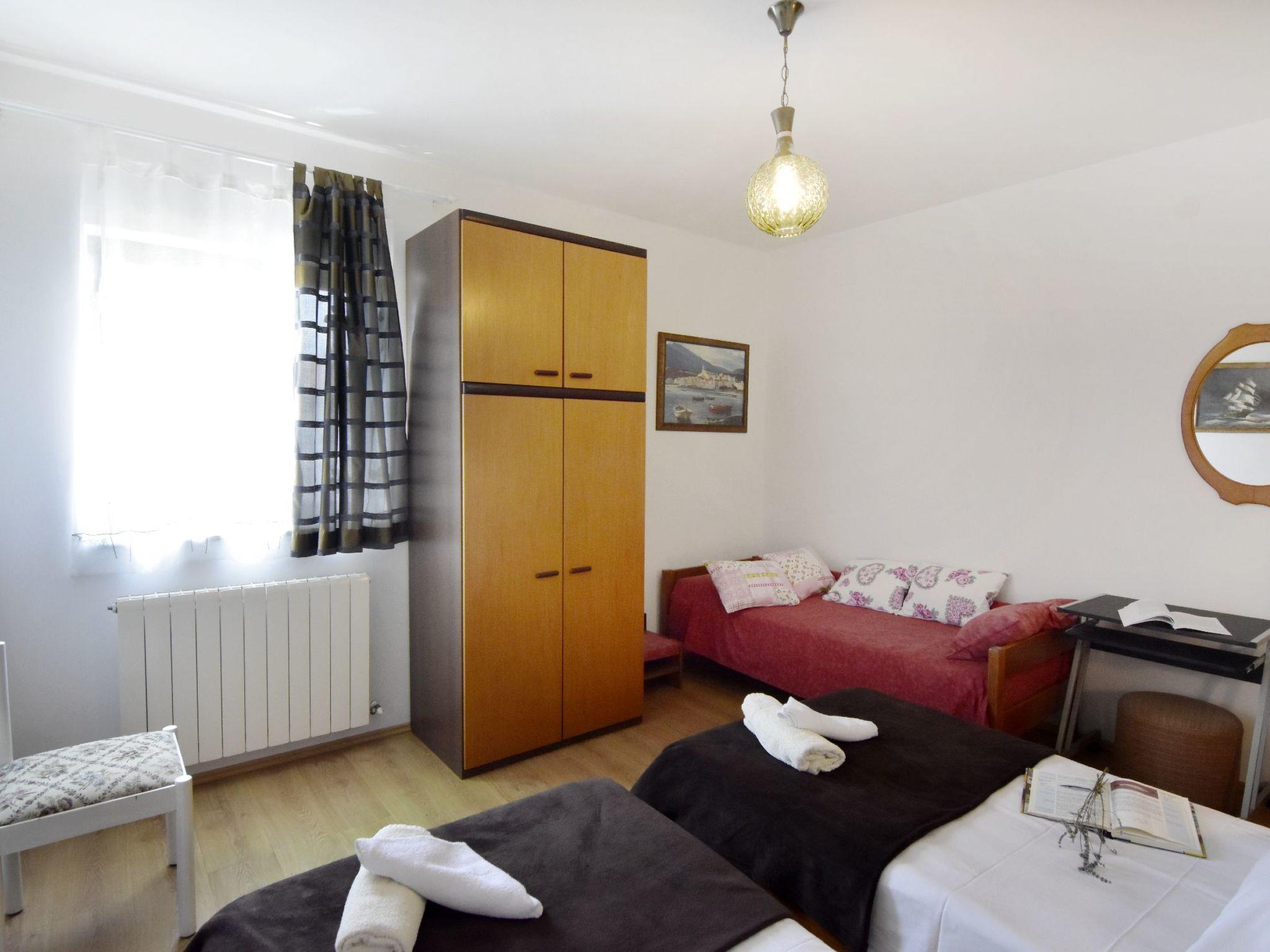 Innen bietet die Wohnung eine schlichte und komfortable Einrichtung mit drei einladenden Schlafzimmern, die für erholsamen Schlaf sorgen. Das erste Schlafzimmer ist mit einem Doppel- und einem Einzelbett ausgestattet, das zweite bietet drei Einzelbetten, und im letzten Zimmer finden sich zwei weitere Einzelbetten, wobei die Bettwäsche inbegriffen ist. Zusätzlich verfügt die Wohnung über zwei Badezimmer, einschließlich moderner Annehmlichkeiten wie Duschkabinen, Waschmaschine und Haartrockner, wobei für jede Person zwei Handtücher vorhanden sind.