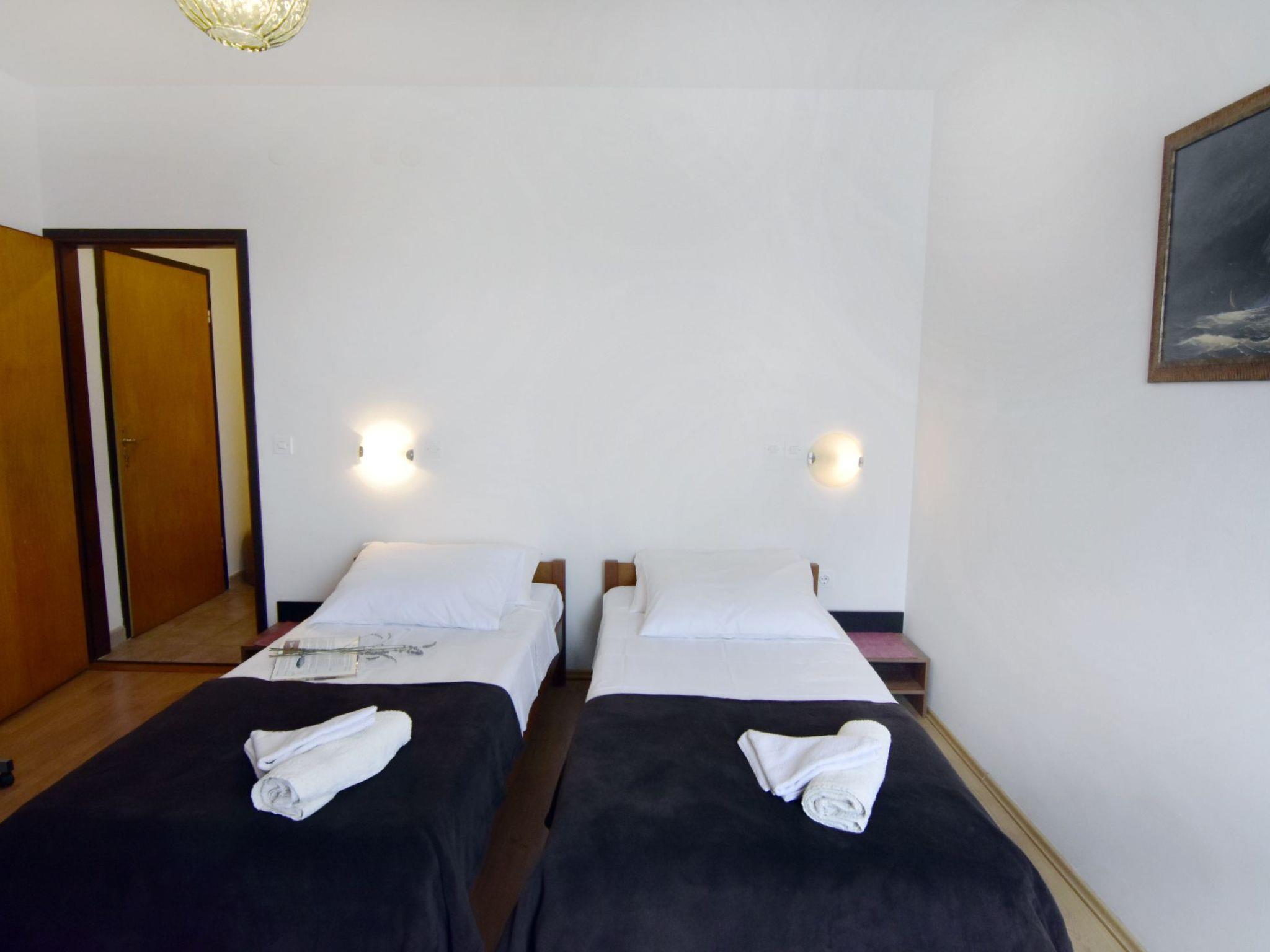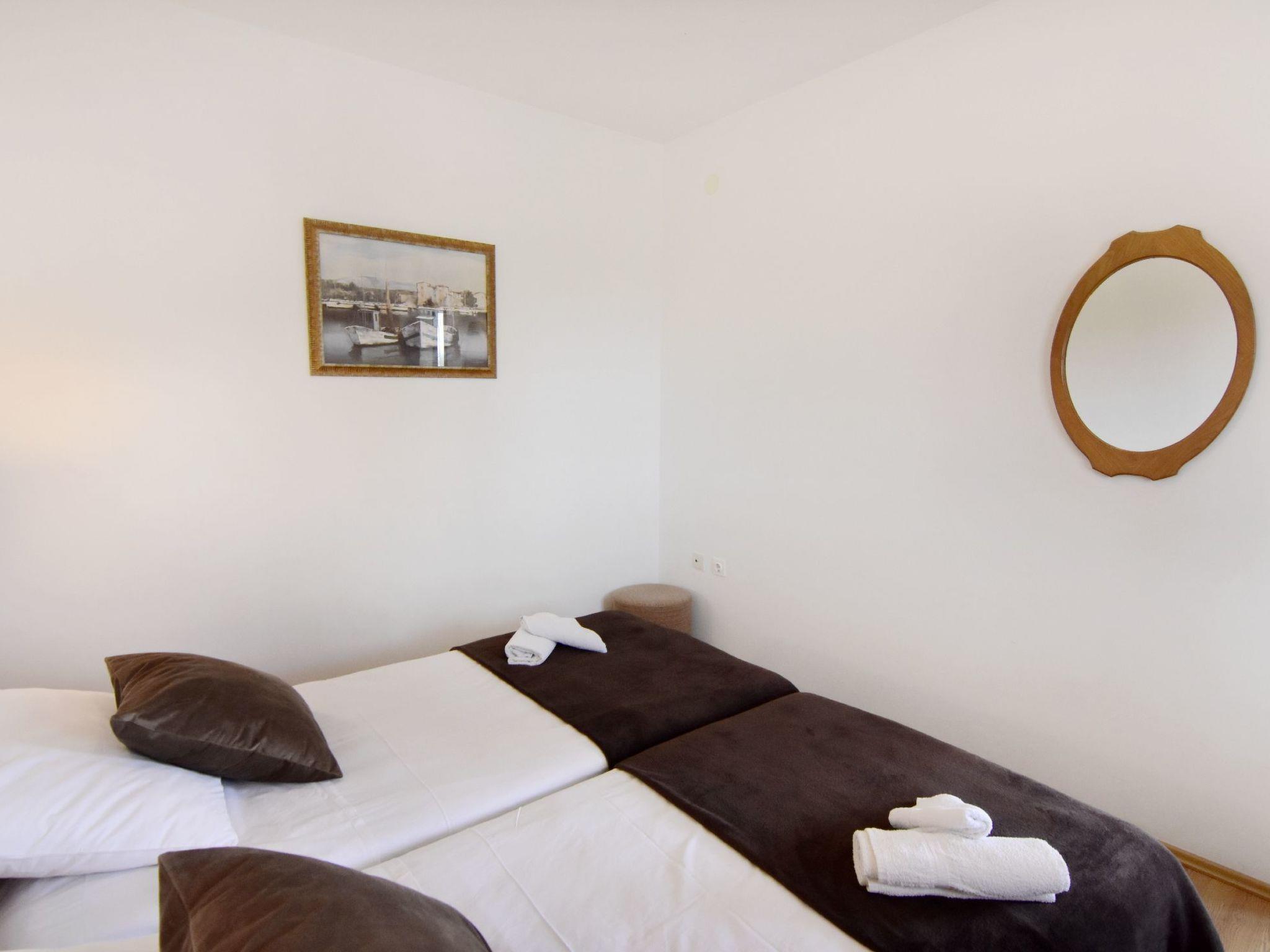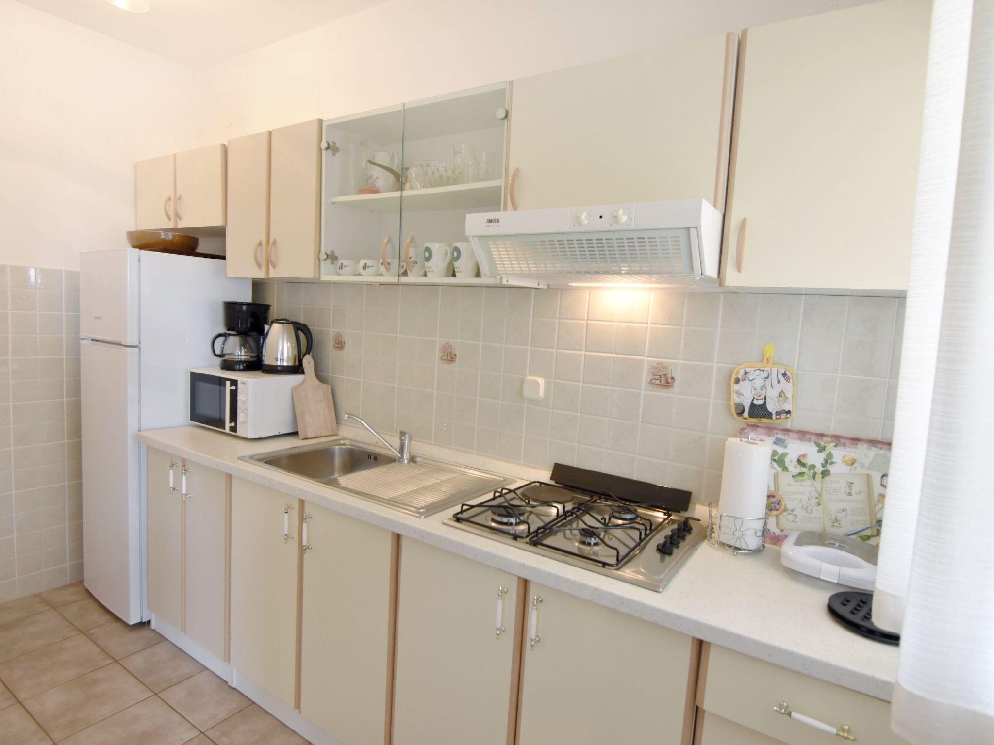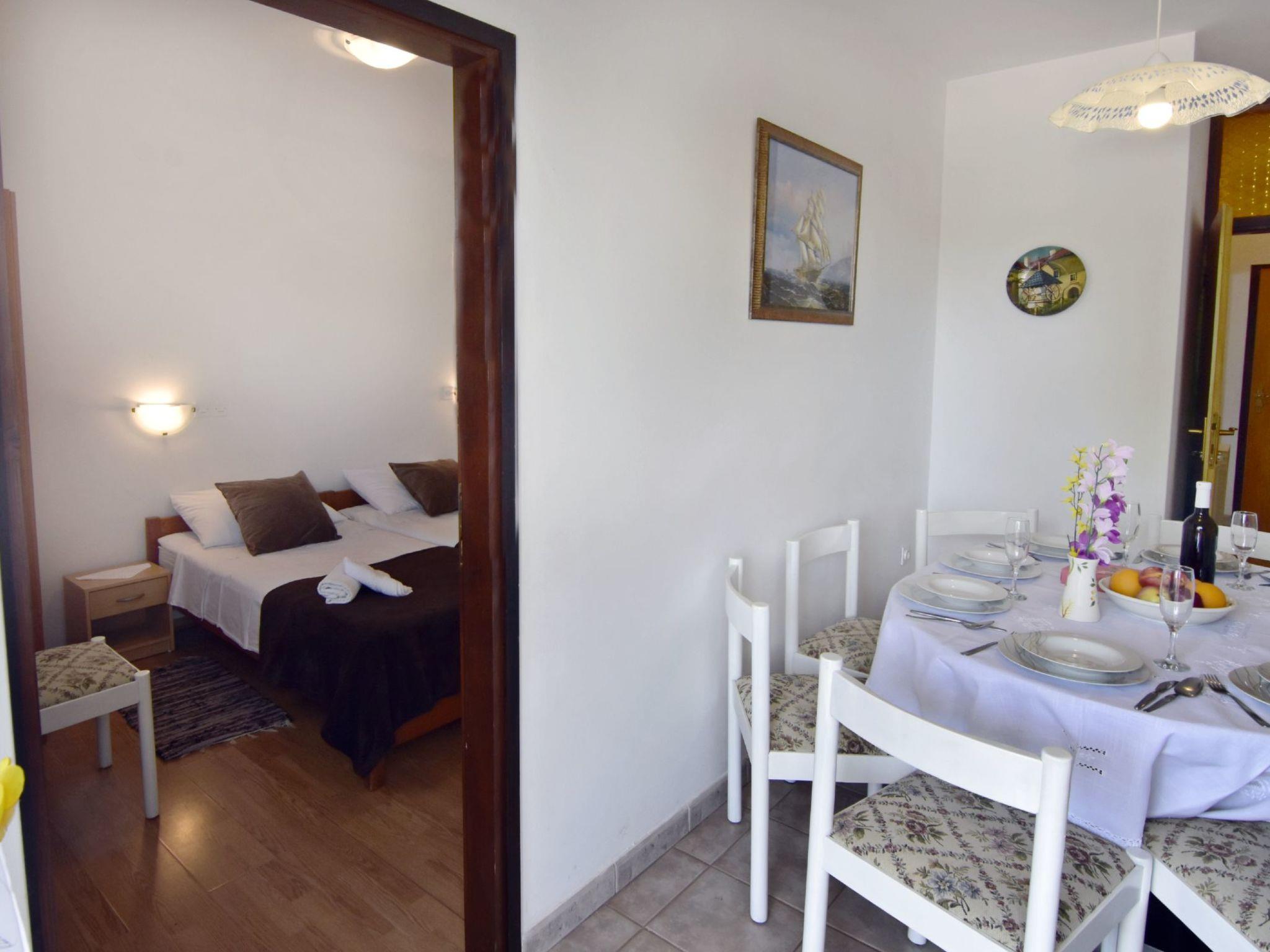 Innen bietet die Wohnung eine schlichte und komfortable Einrichtung mit drei einladenden Schlafzimmern, die für erholsamen Schlaf sorgen. Das erste Schlafzimmer ist mit einem Doppel- und einem Einzelbett ausgestattet, das zweite bietet drei Einzelbetten, und im letzten Zimmer finden sich zwei weitere Einzelbetten, wobei die Bettwäsche inbegriffen ist. Zusätzlich verfügt die Wohnung über zwei Badezimmer, einschließlich moderner Annehmlichkeiten wie Duschkabinen, Waschmaschine und Haartrockner, wobei für jede Person zwei Handtücher vorhanden sind.