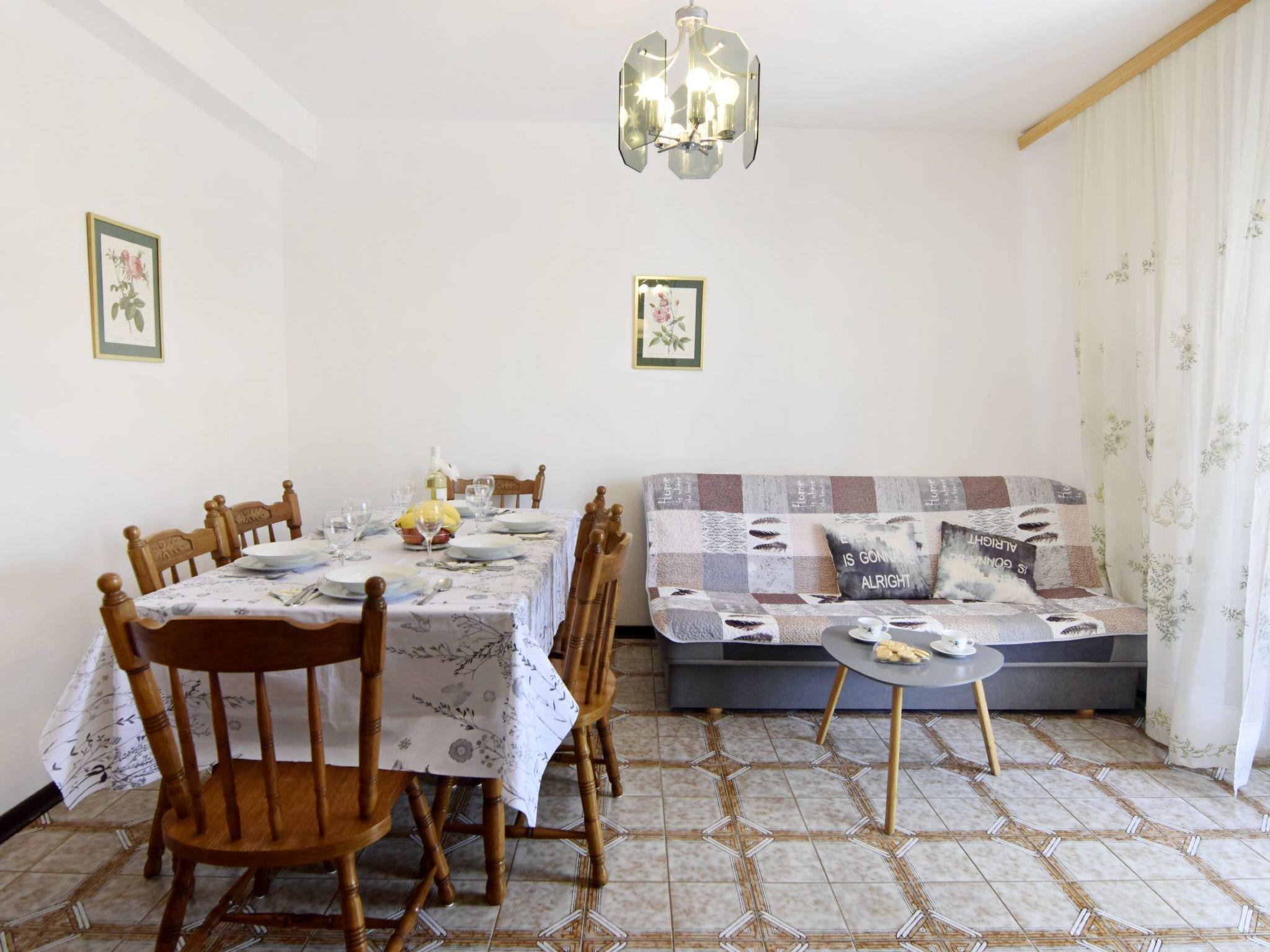 Im Inneren erwartet Sie ein komfortabler und gut ausgestatteter Wohnbereich. Die Wohnung bietet drei einladende Schlafzimmer, einen Essbereich mit angrenzender Küche. Vom Essbereich Ausgang auf eine gemütliche Terrasse. Ein Badezimmer mit Badewanne, Toilette und Waschbecken mit Spiegel. Die Küche ist voll ausgestattet mit Elektroherd, Kühlschrank, Mikrowelle, Kaffeemaschine und allem notwendigen Geschirr. Der Wohnbereich verfügt über einen Esstisch, ein Schlafsofa und einen Flachbild-Sat-TV, ideal für entspannte Abende.