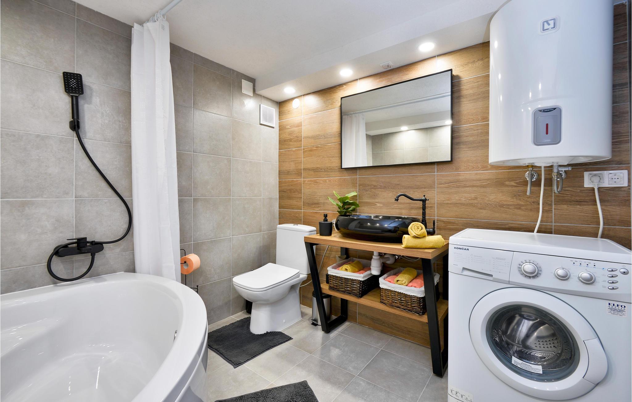 Badezimmer 8m2 (nr. 1) - WC. Warmes und kaltes Wasser. Dusche und Badewanne