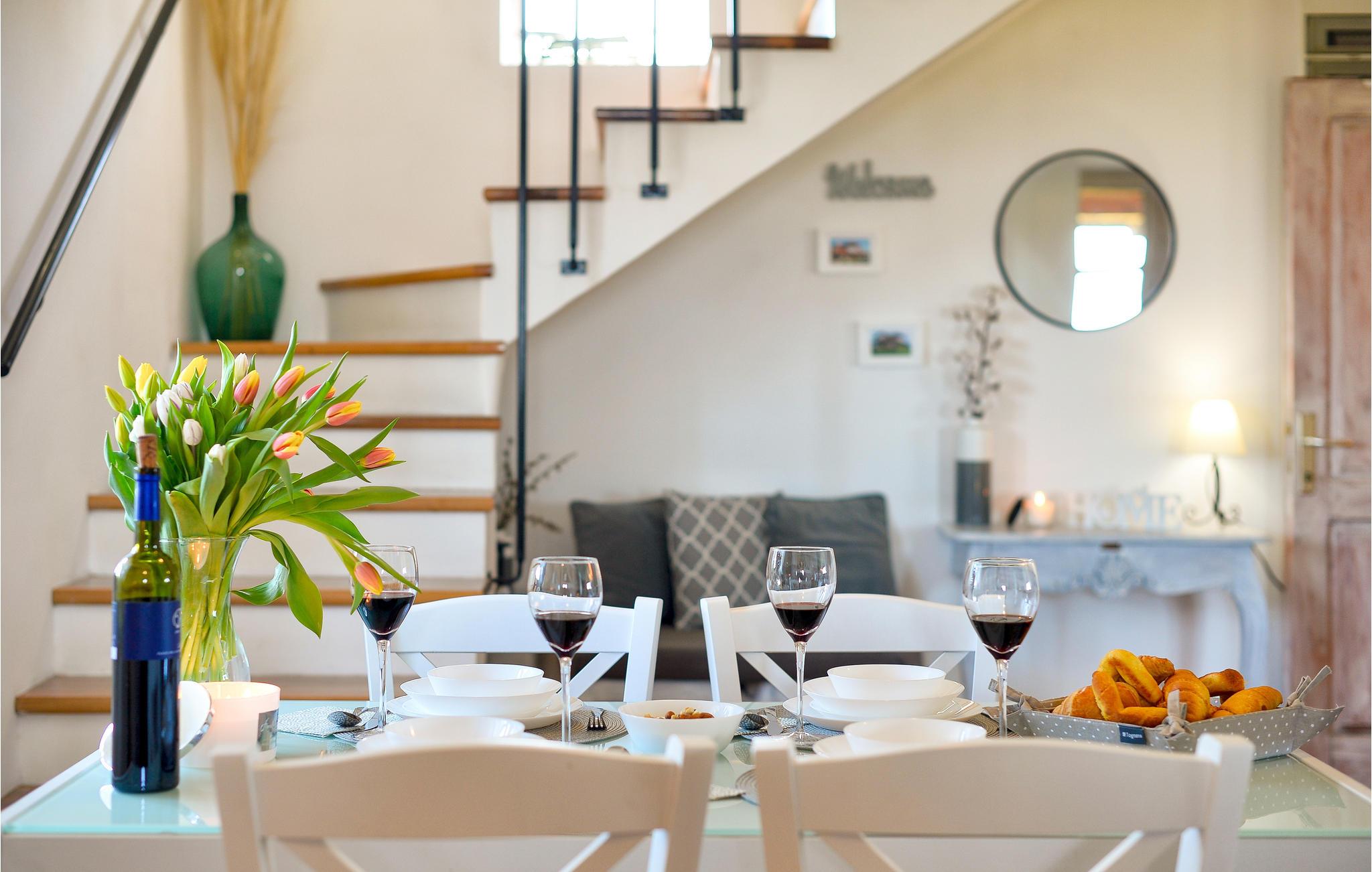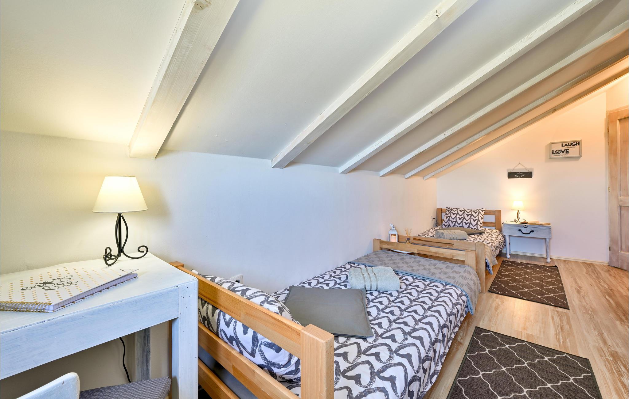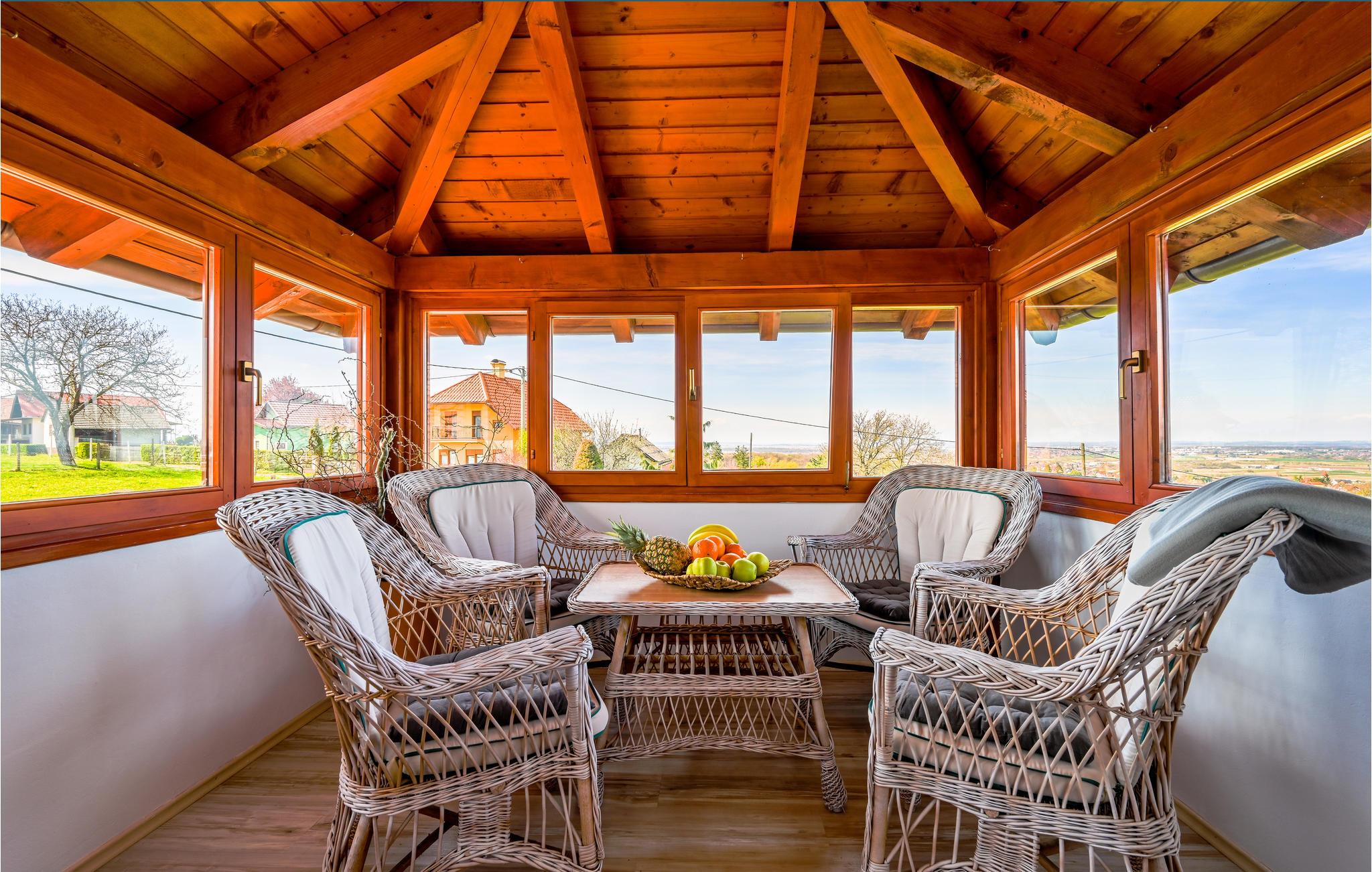 Nicht weit von Varaždin, auf einem kleinen Hügel, liegt dieses schöne Ferienhaus mit schöner Aussicht und einem schönen Garten mit Obstgarten. Verbringen Sie einen entspannten und ruhigen Urlaub in diesem schönen Haus, das für den Aufenthalt mit Kindern und Haustieren geeignet ist. Des Weiteren ist diese Unterkunft mit allem ausgestattet, was Sie für einen entspannten Aufenthalt benötigen. Im Innenraum erwartet Sie eine Mischung aus rustikalem und modernem Design, wobei vor allem beim Komfort nicht gespart wurde. Hier können Sie entspannte Abende beim Kamin verbringen oder auf den überdachten Balkon im ersten Stock zum Kartenspielen oder Frühstücken, während Sie Ihren Blick über die Landschaft schweifen lassen. Im Erdgeschoss finden Sie auch eine überdachte jedoch offene Terrasse mit Außenküche und Grill. Des Weiteren gibt es auf dem eingezäunten Grundstück auch Aktivitäten für die jungen Gäste, darunter ein Klettergerüst, ein Trampolin, Fußballtore und für die ganze Familie zusammen ein Badminton- und Volleyballnetz.