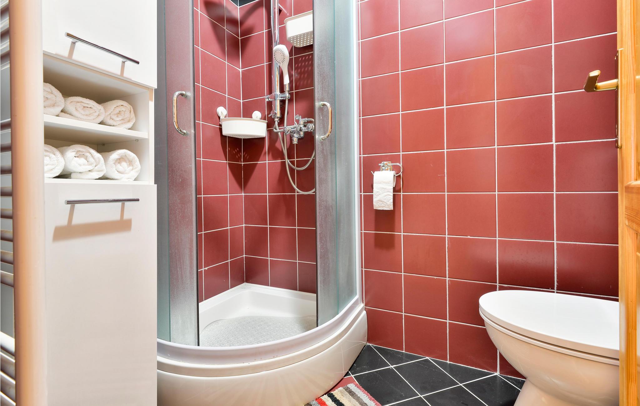 - WC mit warmem und kaltem Wasser, Dusche