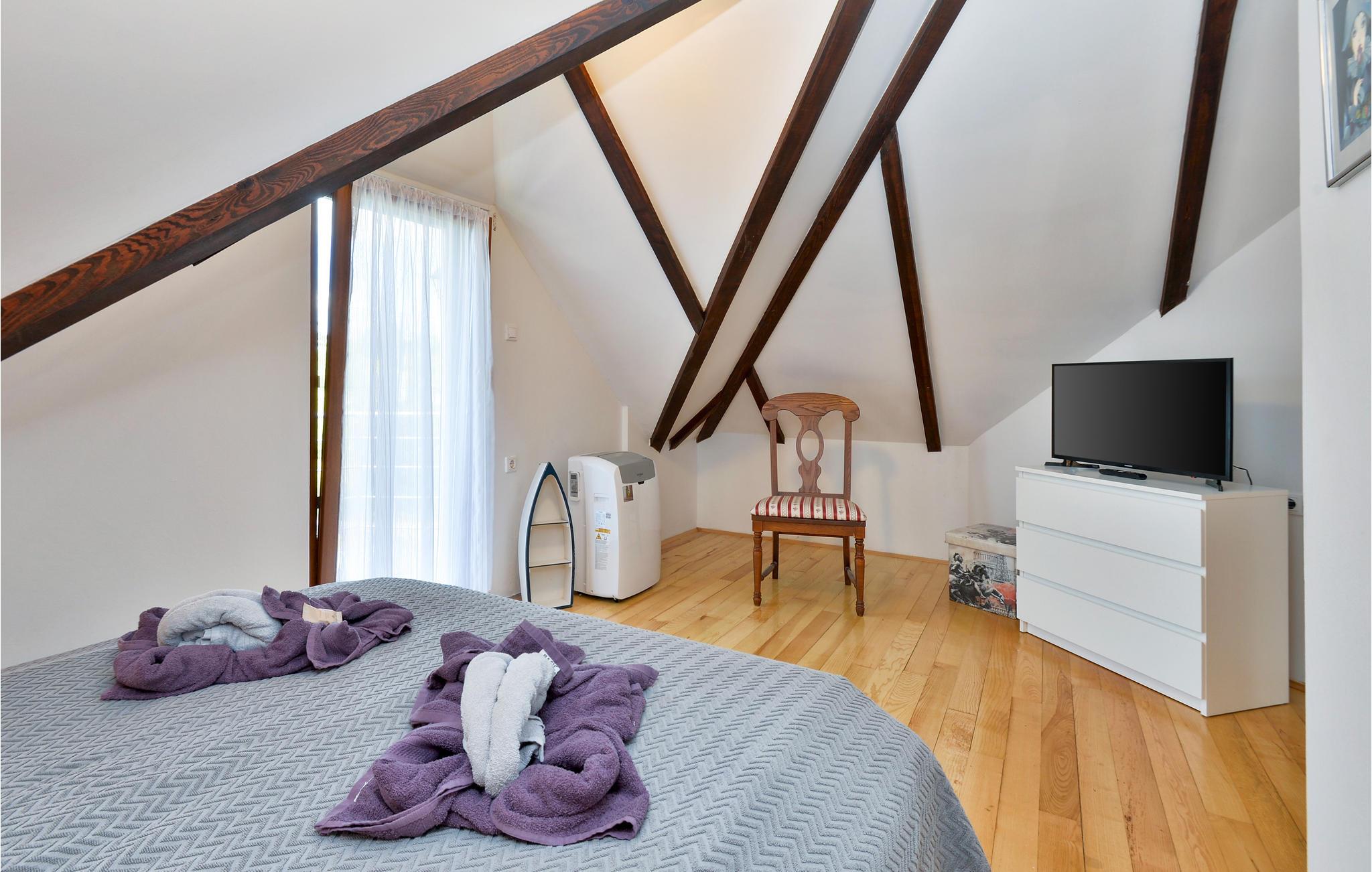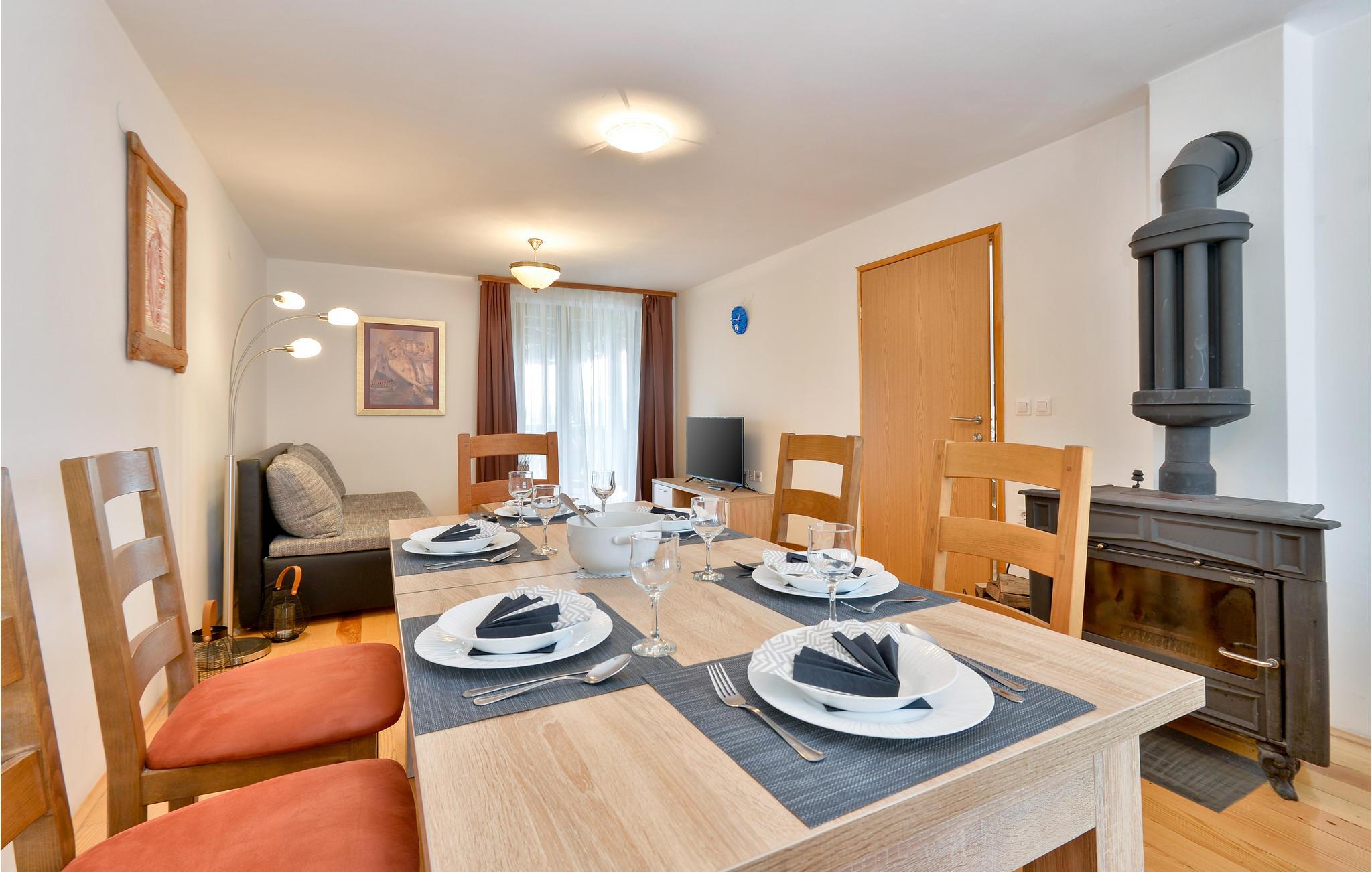Das Haus?ist?wohnlich?eingerichtet und bietet seinen Gästen die richtige Ausstattung für einen gelungenen Urlaub. In 3 Schlafzimmern bietet das Haus Platz für?8 Personen. Machen Sie es sich hier zu jeder Jahreszeit gemütlich. Dank Klimaanlage sind die Temperaturen hier auch in heißen Sommern angenehm. Abends können Sie es sich gemeinsam am Kaminofen gemütlich machen und den Tag Revue passieren lassen.