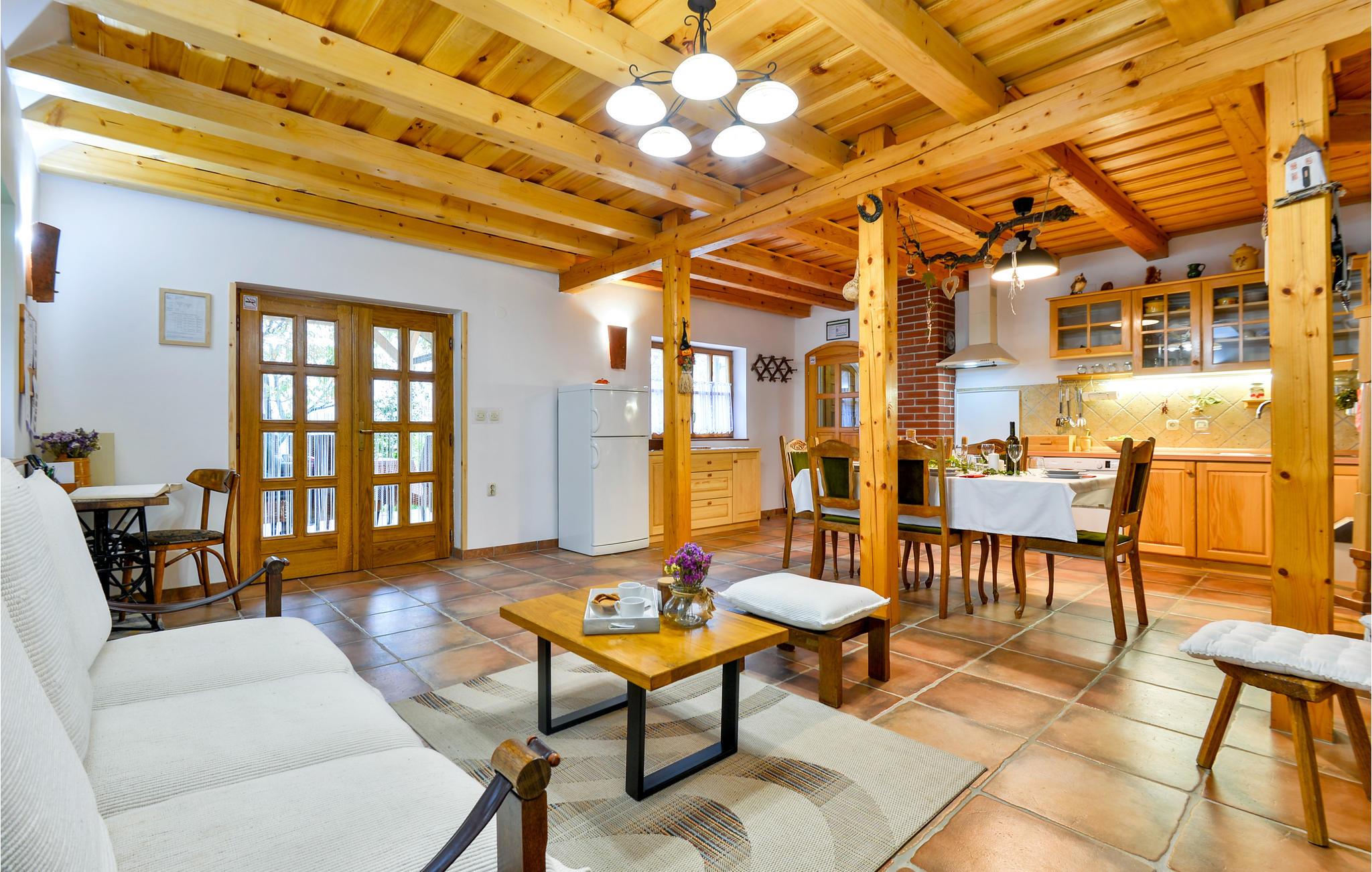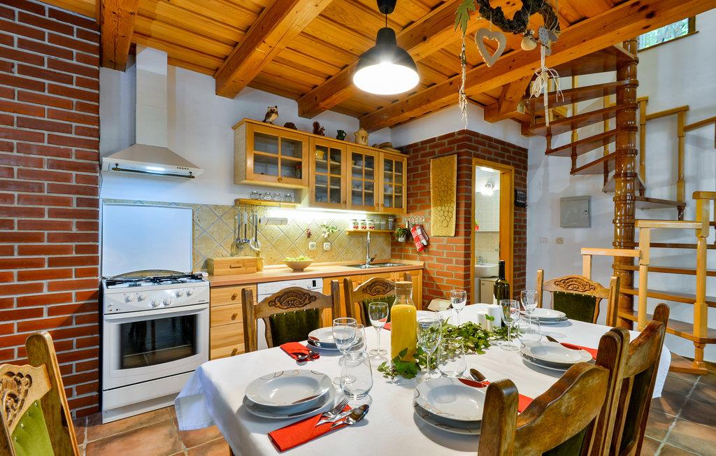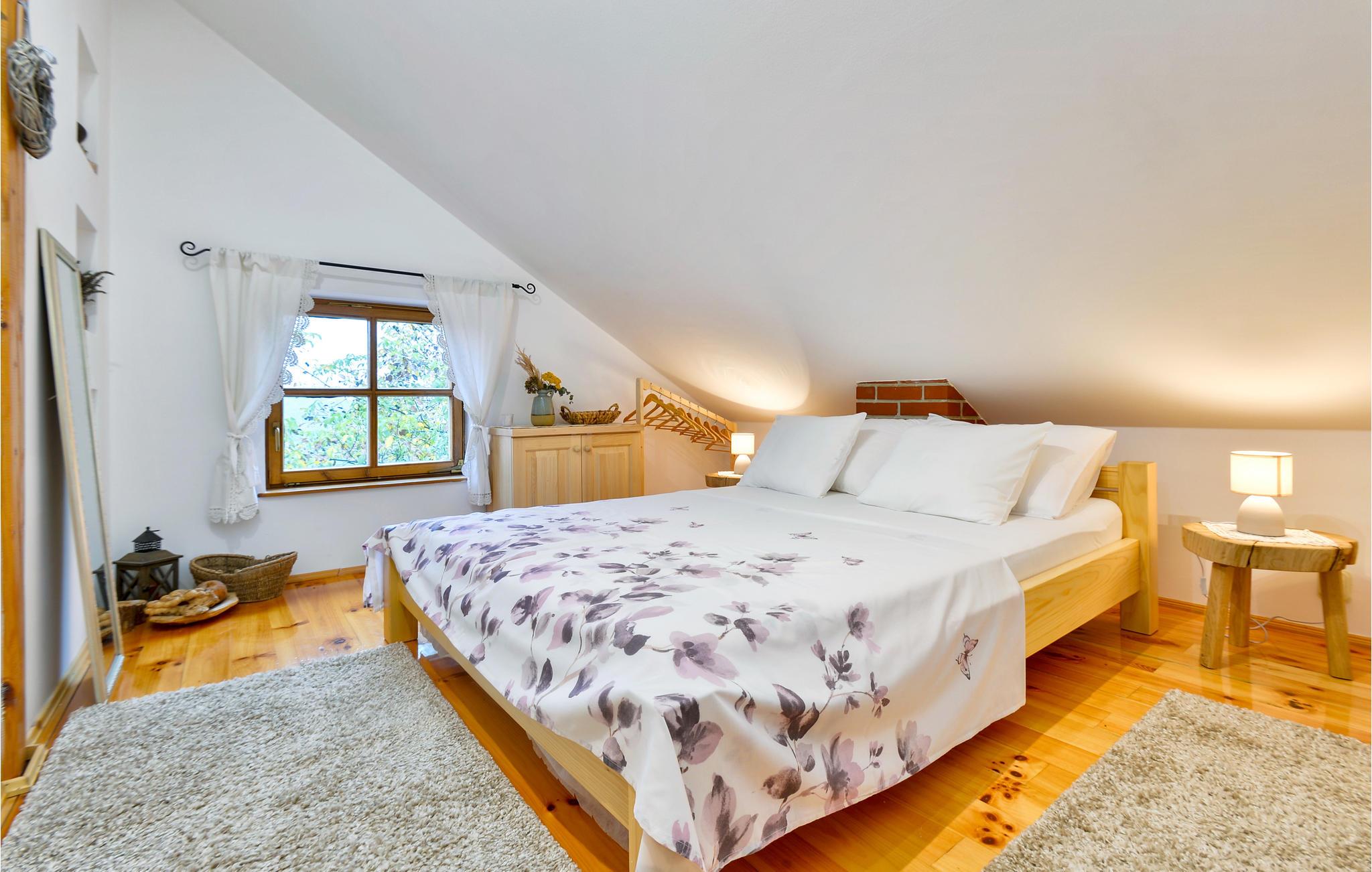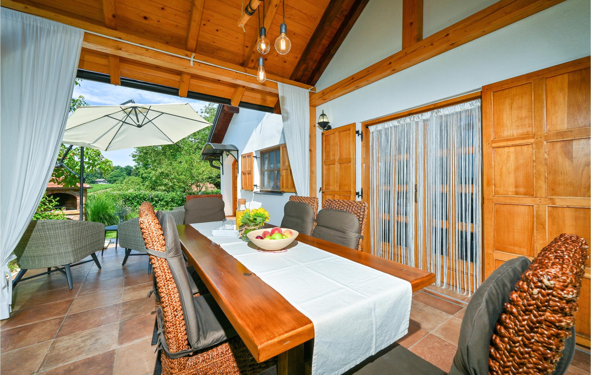 Hier erwartet Sie ein ideales Ferienhaus für Erholung und Flucht vom Alltag, umgeben von Grün und Feldern und schönen Weinbergen und Obstgärten. Das Haus ist mit allem ausgestattet, was Sie für einen unbeschwerten Urlaub benötigen. Die Wohnfläche verteilt sich auf zwei Schlafzimmer, ein Badezimmer, einen offenen Spitzboden und einen Wohnraum mit Küche. Dank eines Aktivitätsraumes wird es garantiert nicht langweilig.