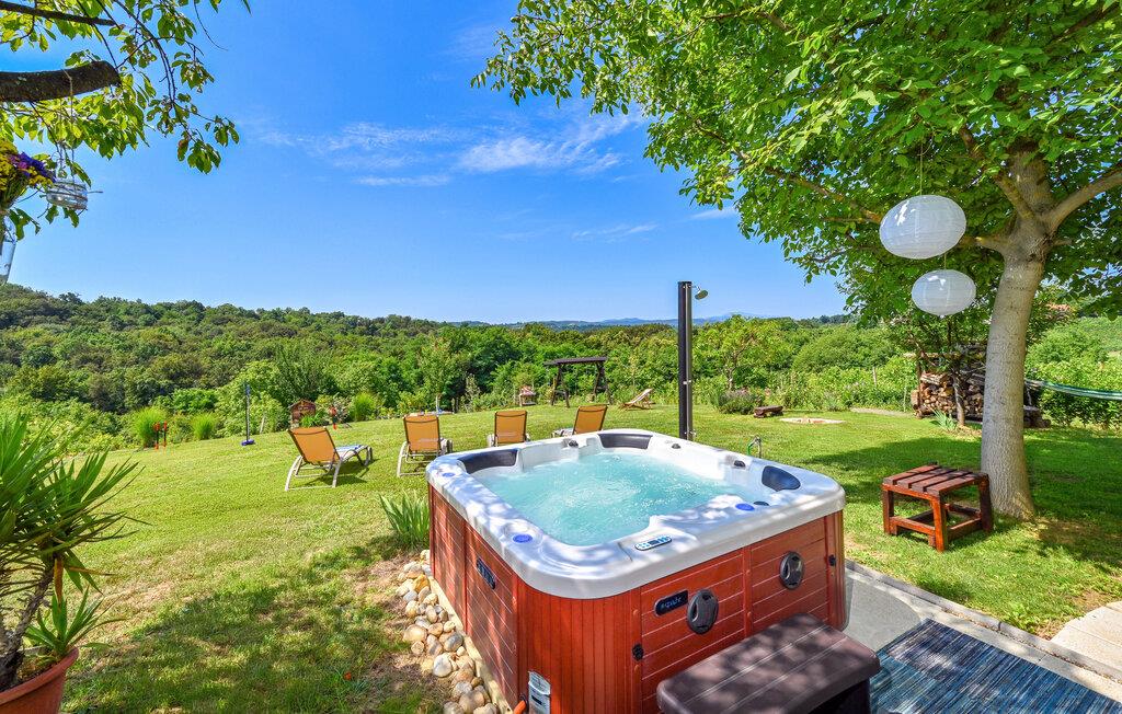 Erleben Sie Momente der Entspannung im Whirlpool im Freien mit Blick auf die wunderschönen grünen Hügel. Die offene Terrasse lädt zum Lesen, gemeinsamen Mahlzeiten oder Sonnenbaden ein.