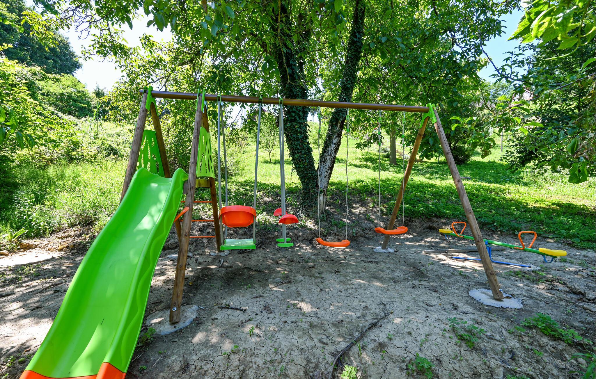 Im weitläufigen Garten finden Sie einen erfrischenden Außenpool und einen Spielplatz für Ihre Kinder. Entspannen Sie sich am Pool und genießen Sie die Ruhe und Abgeschiedenheit. Bereiten Sie Gourmet-Köstlichkeiten auf dem Grill zu und genießen Sie Mahlzeiten an der frischen Luft.