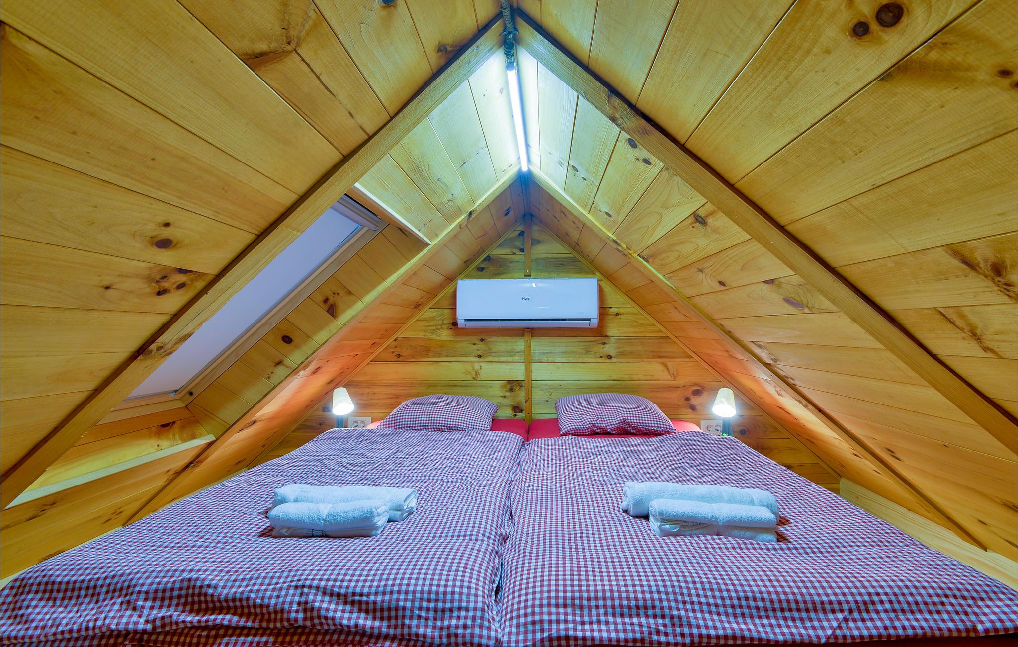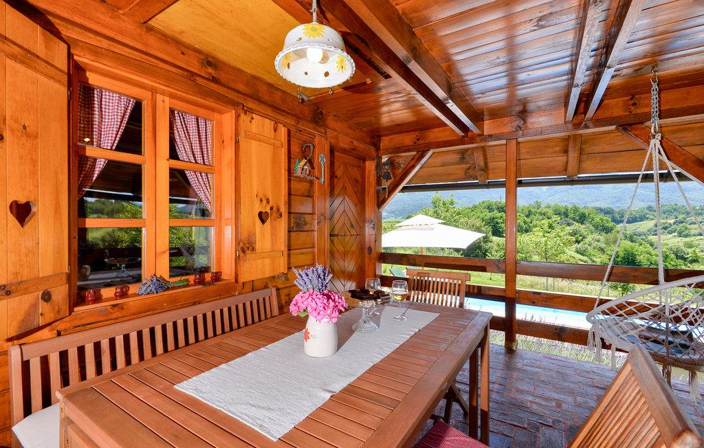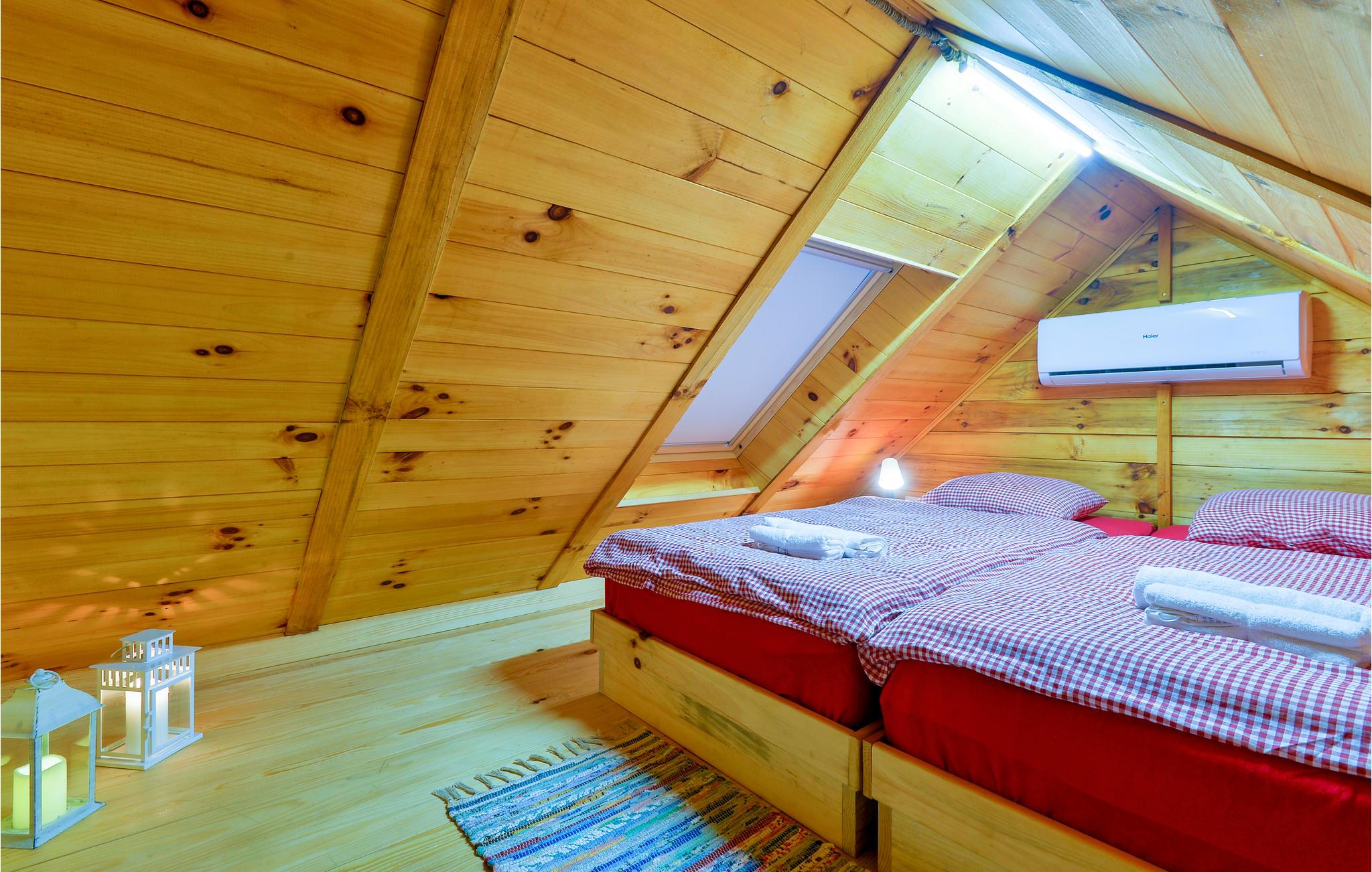 Dieses charmante Ferienhaus in der Nähe von Lepoglav ist von einem weitläufigen, grünen Grundstück umgeben und bietet seinen Gästen ein Gefühl der Ruhe abseits des geschäftigen Stadtlebens. Am Ende des Grundstücks befindet sich ein kleiner Teich, in dem Sie nach Absprache mit dem Eigentümer eine der drei darin gezüchteten Fischarten (Karpfen, Amur und Tolstolobik) angeln können. Das Holzhaus besteht im Erdgeschoss aus Wohnküche und Bad, während im Dachgeschoss zwei Schlafzimmer sind. Das erste Schlafzimmer ist ein Durchgangsraum und die Mindestdeckenhöhe der Dachschrägen beträgt ca. 10 cm. Genießen Sie das Beisammensein auf der überdachten Terrasse mit Blick auf das umliegende Grün. Neben dem Haus steht Ihnen ein Pool zur Verfügung, der umweltschonend mit Elektrolyse behandelt wurde, und im Obstgarten können sie die Früchte der Saison probieren.
