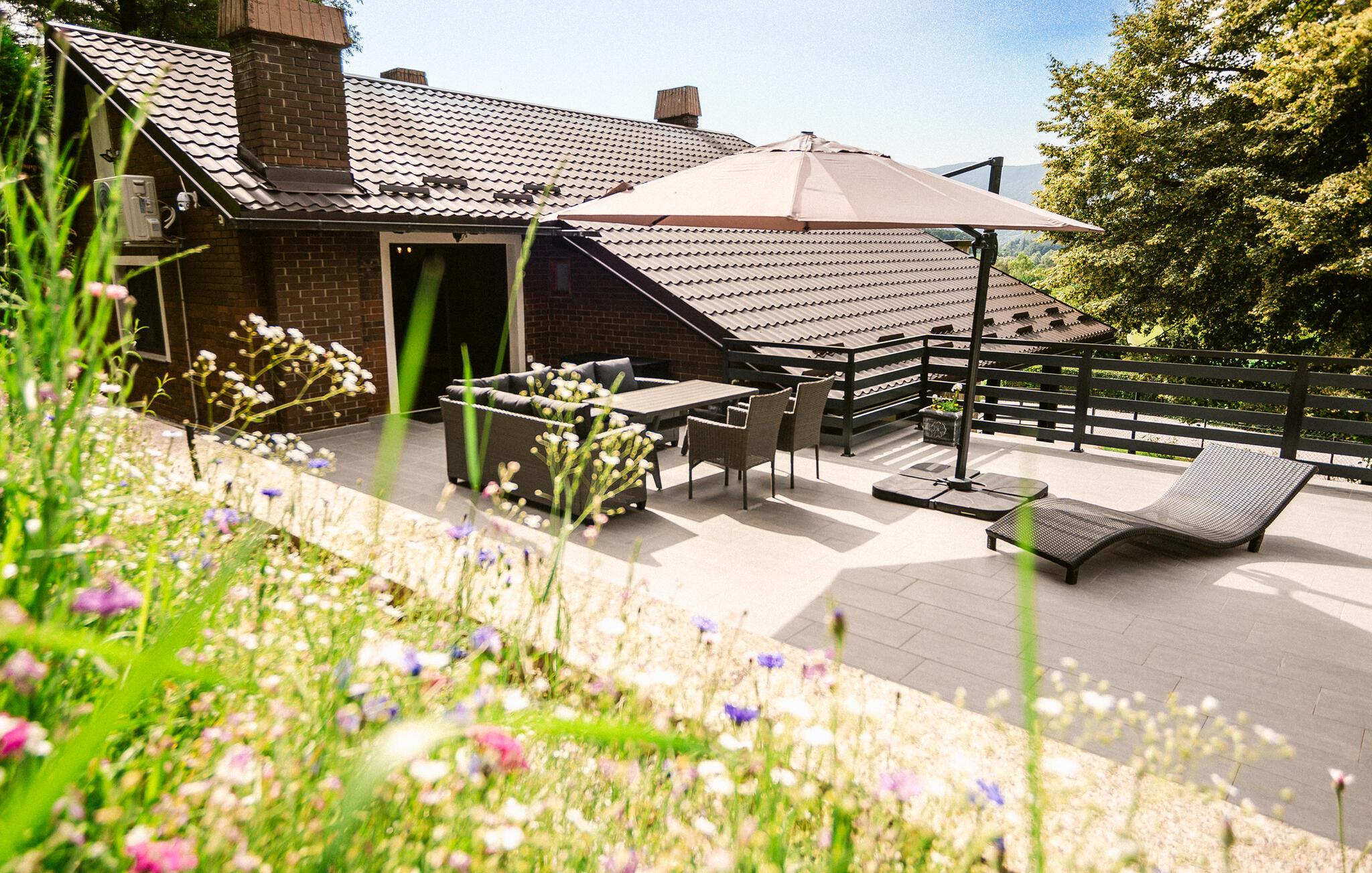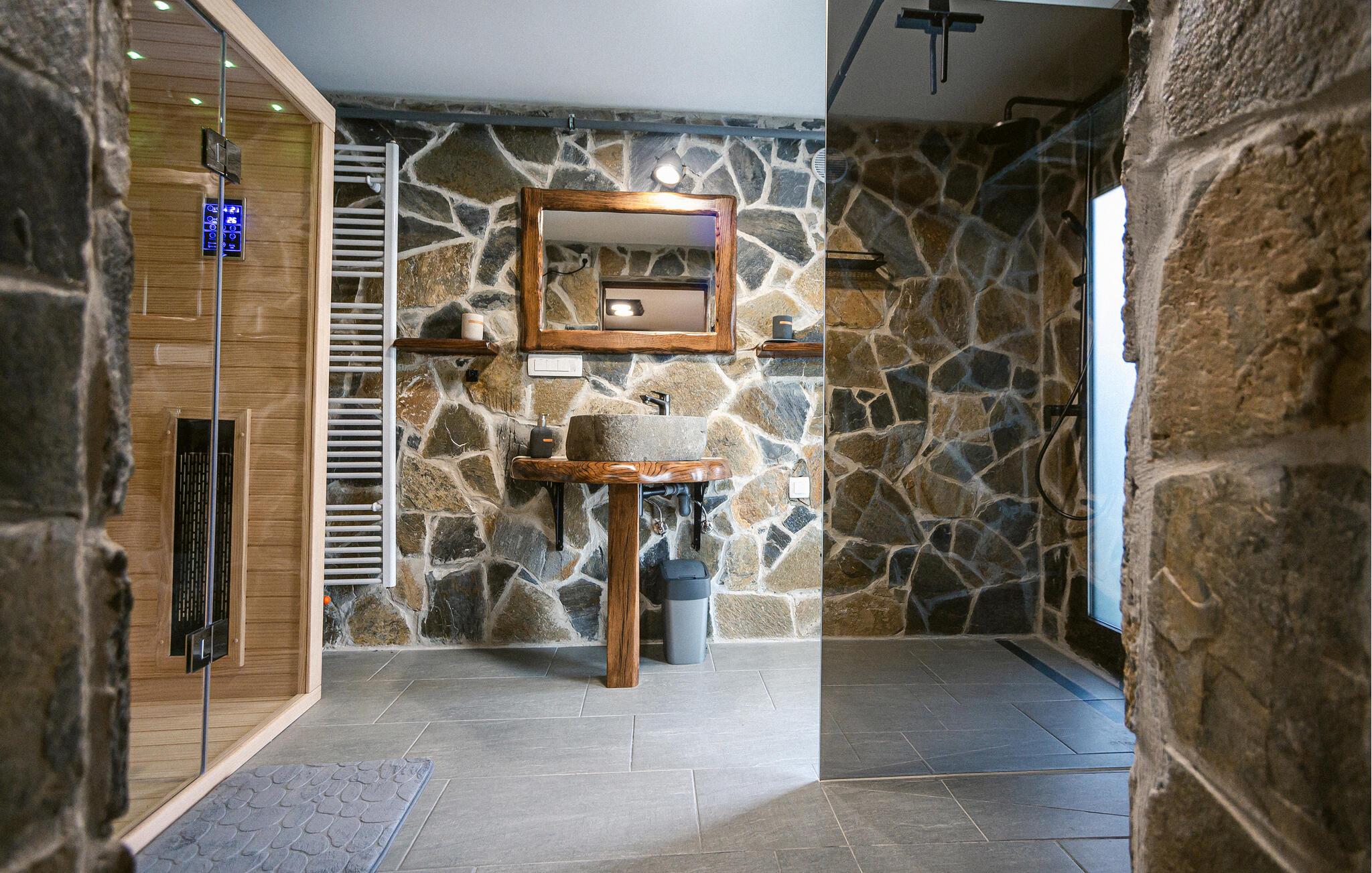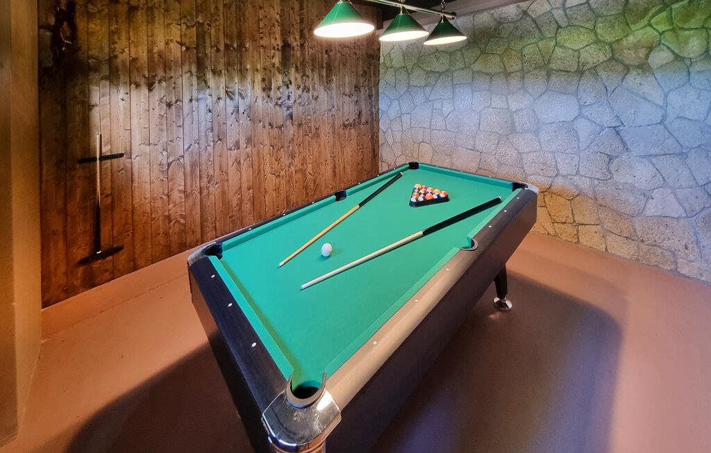 Ihr Ferienhaus bietet Platz für eine große Familie. Es empfängt Sie in ruhiger Lage und ist der ideale Ort, um der Hektik des Alltags zu entfliehen und in komfortablem, neo-rustikalen Ambiente die Natur zu genießen. Nach Ihren Unternehmungen haben Sie hier zahlreiche Möglichkeiten, schöne Abende zu genießen. Spielen Sie eine Partie Billard, entspannen Sie im Whirlpool und lassen Sie den Blick weit über die Landschaft schweifen, oder kosten Sie die tolle Aussicht in der einladenden Sitzgruppe aus, während im Kamin die Flammen prasseln.