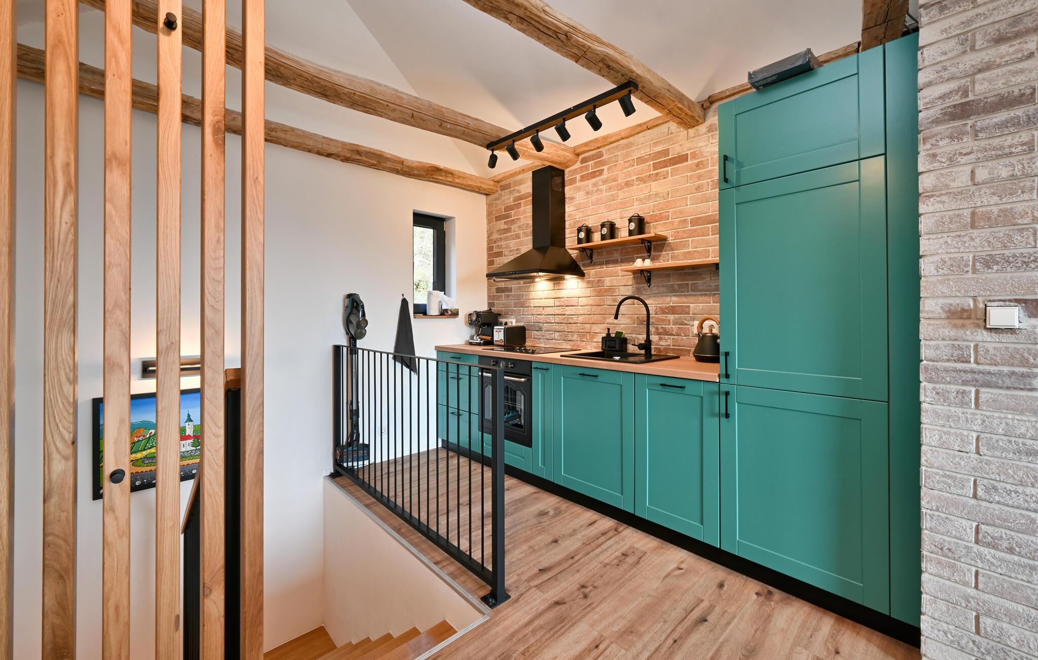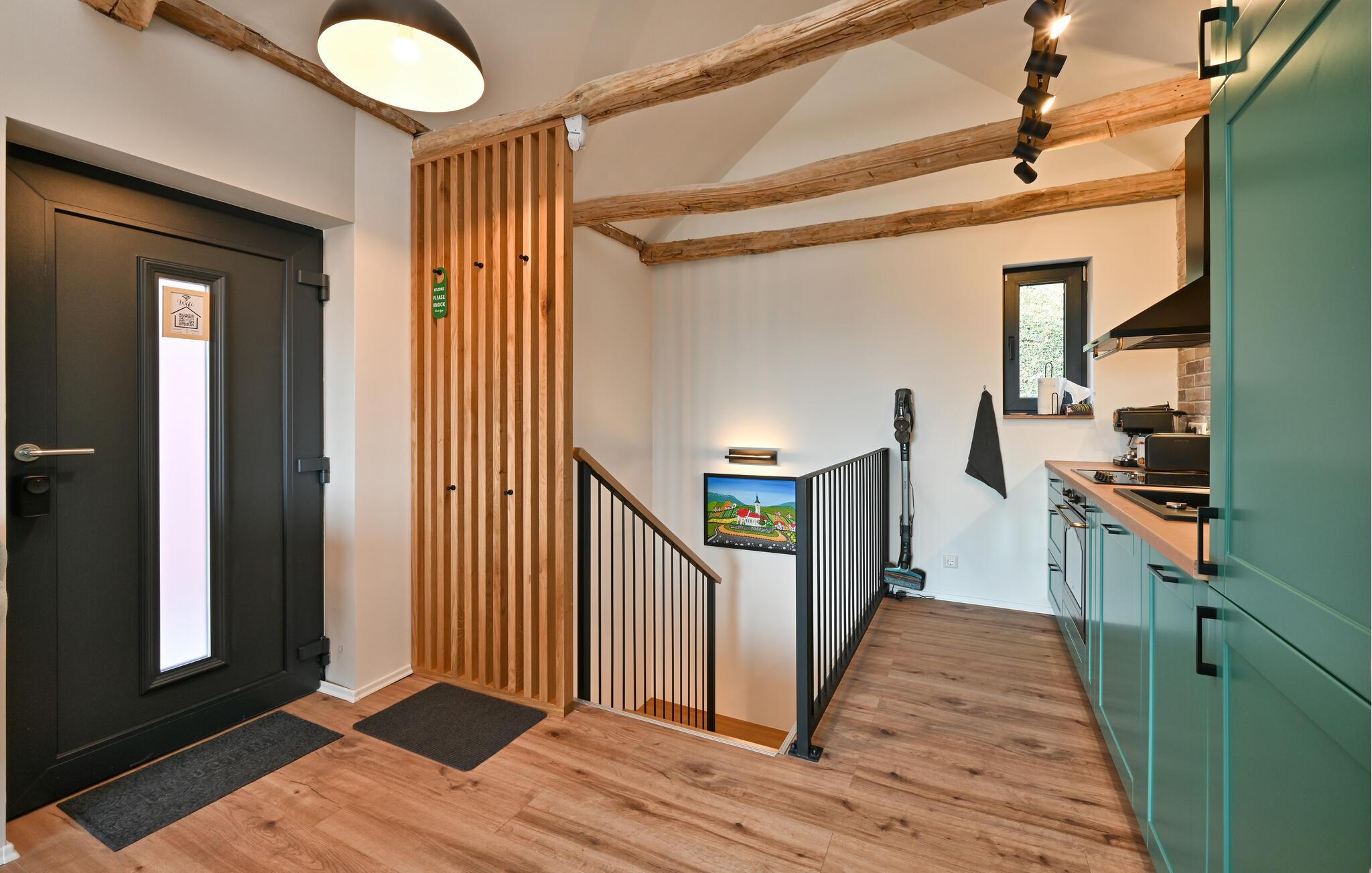 Spüren Sie die Behaglichkeit durch warme Holzböden, geschmackvolles Mobiliar und gepflegte Backsteinwände. Freuen Sie sich auf gemeinsame Kochabende in der farbenfrohen Küche und machen Sie es sich für gemeinsame Spieleabende oder eine spannende Serie auf dem komfortablen Sofa bequem, während rustikale Deckenbalken und eine stilvolle Beleuchtung eine besondere Wohlfühlatmosphäre schaffen.